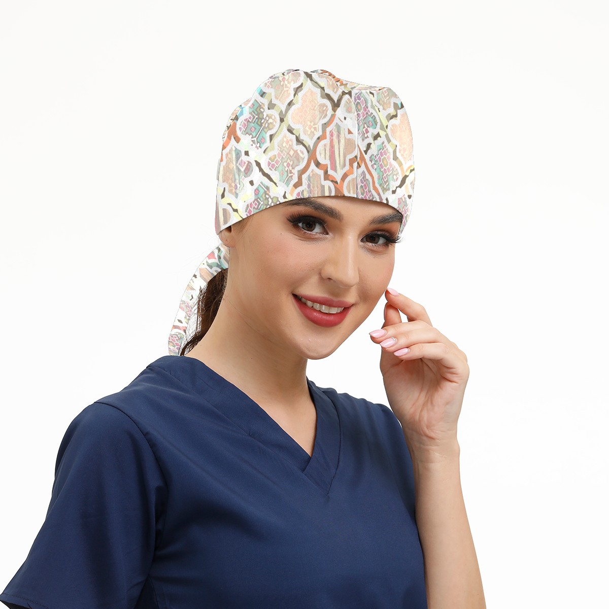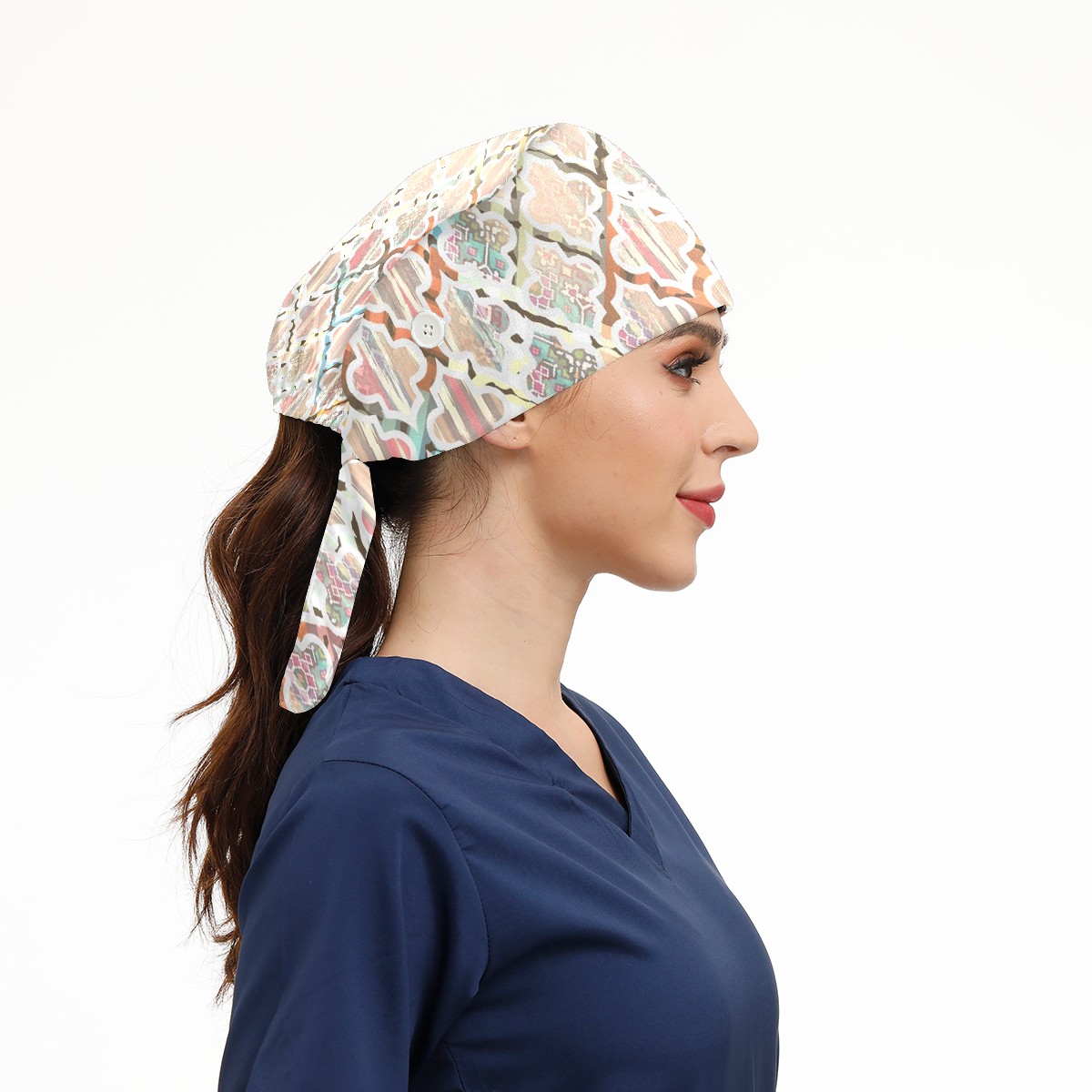 Working Caps with Button & Sweatband Satin Lined Cotton Adjustable Nurse Hats Elastic Band Scrub Cap Surgeon Hat Trendy Floral Design