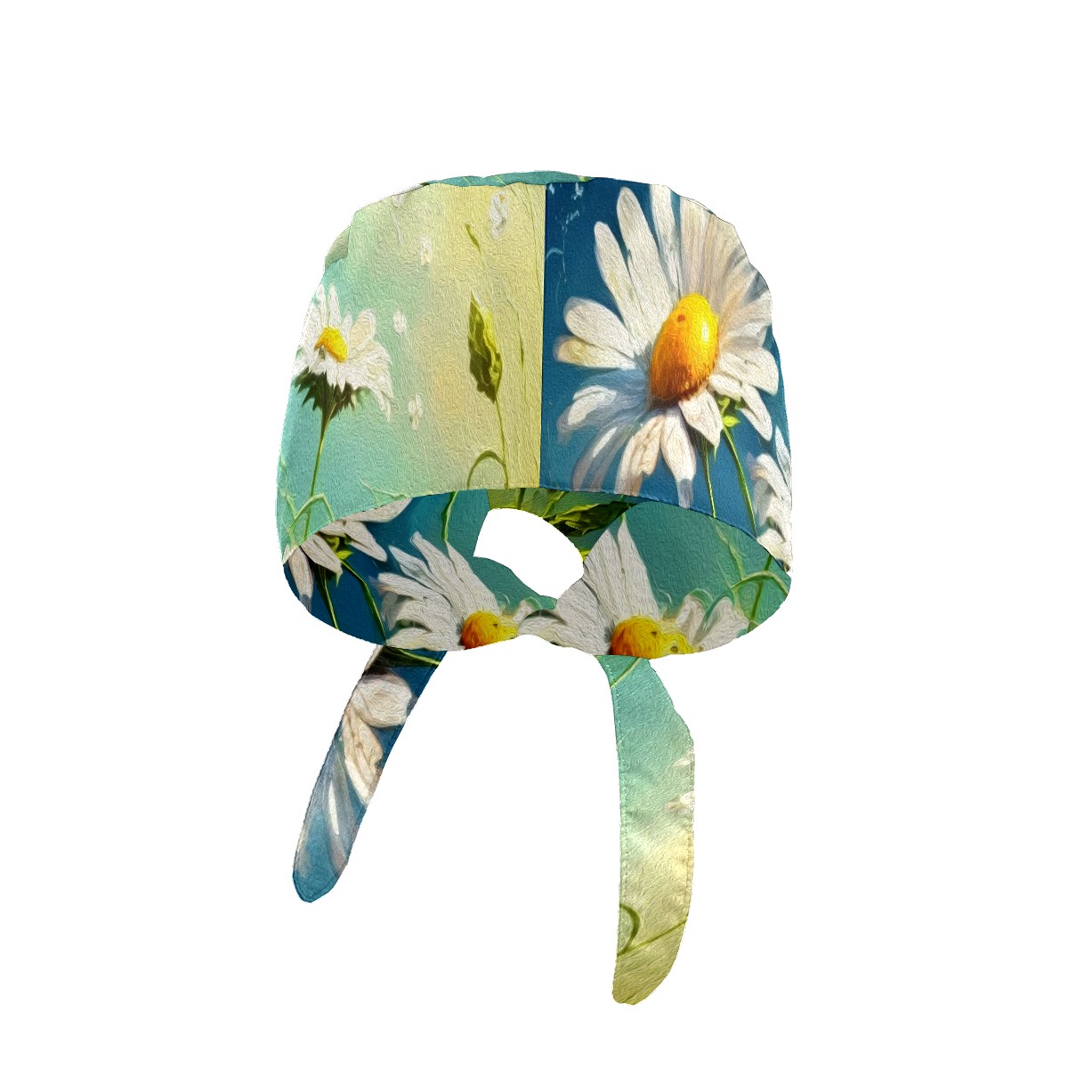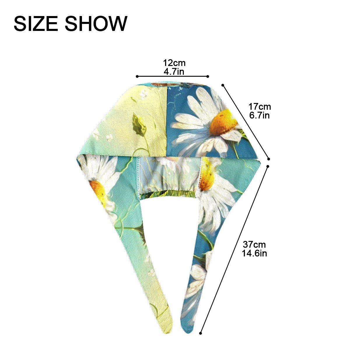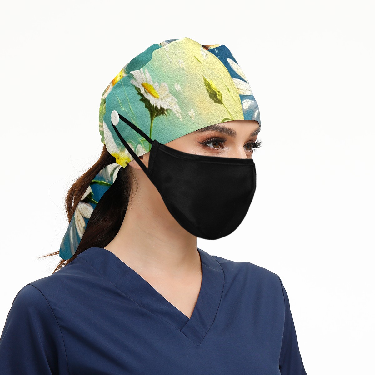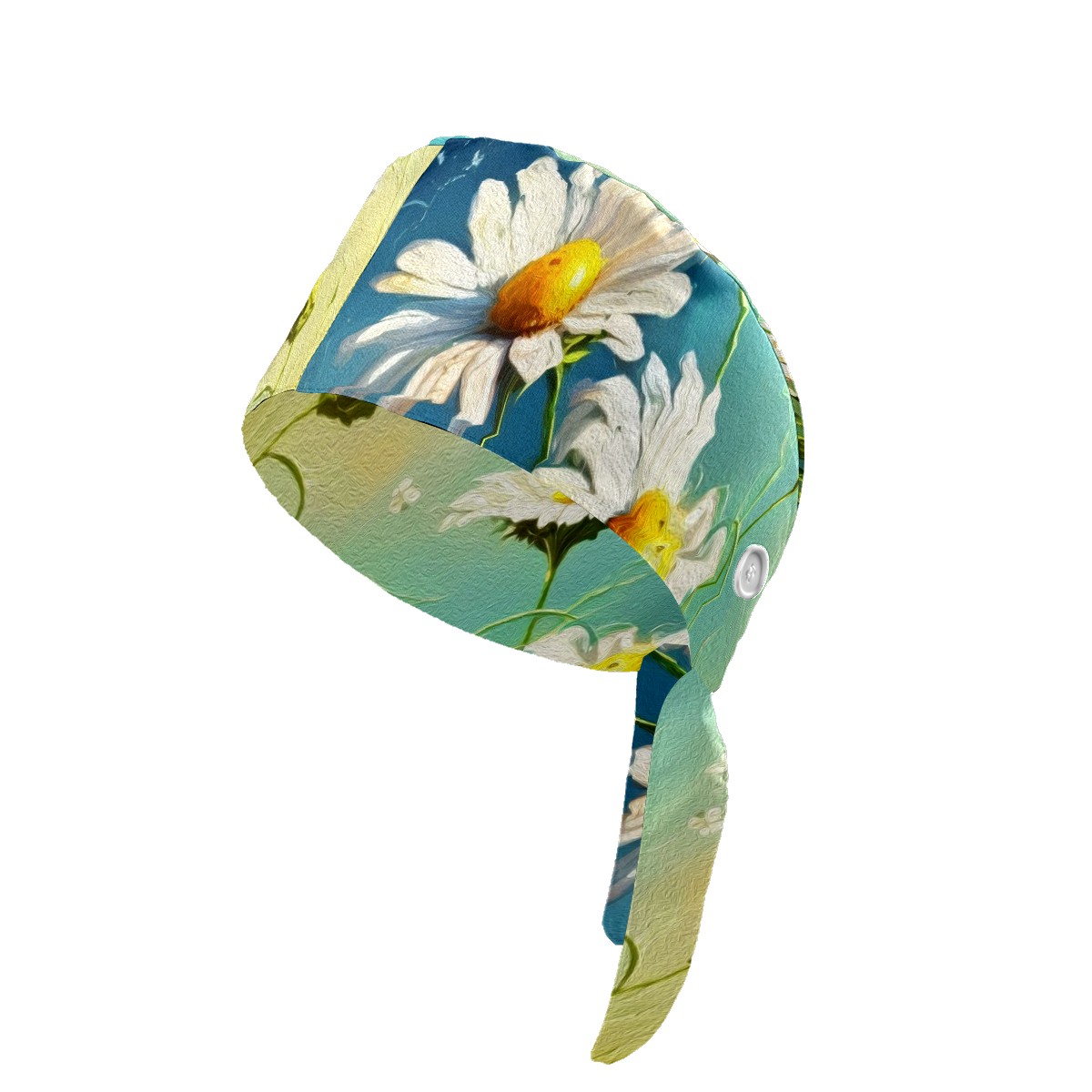 Working Caps with Button & Sweatband Satin Lined Cotton Adjustable Nurse Hats Elastic Band Scrub Cap Surgeon Hat Summer Daisy Butterfly Painting
