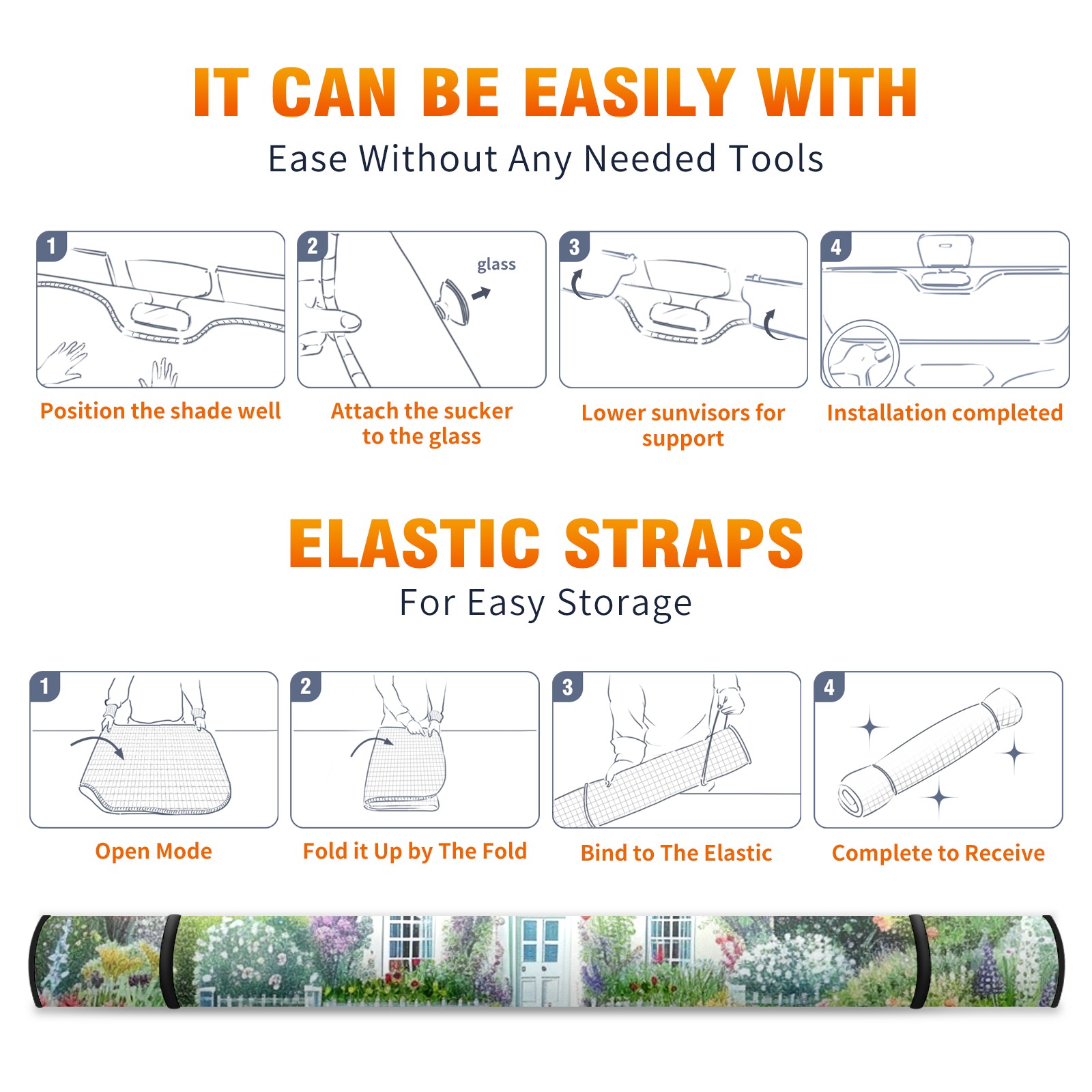 Diameter /Size 63"L x 33.5"W</b><br> Made from excellent materials which makes it sturdy and protects the car from the sun. Easy to use and pack. Makes the interior of the car cooler.You can easily stash the sunshade in the storage bag or store long term.It open and closes easy. Also the leather storage bag is durable and easy to put the umbrella back into.This windshield sunshade provides complete coverage and keeps your car interior cool under direct sun. It is easy to open and position under the windshield and around the rear-view mirror. Makes Your Car Easy To Identify, Perfect For Finding Your Car In Crowded Parking Lots And Garages.Great Choice: It Is A Great Gift For Dad, Boyfriend, Brother, Brother And Uncle, Friends, Classmates, Family And So On.<br> Notice:</b><br> Due To Difference Computer Monitors, The Color Maybe Slightly Different From Picture. As Different Measurement Methods, Measurement Data Will Float Within 2%.I Hope You Understand.<br> If You Have Any Question About The Item Please Do Not Hesitate To Contact Us Immediately And We Will Give You A Satisfactory Reply Within 24 Hours.