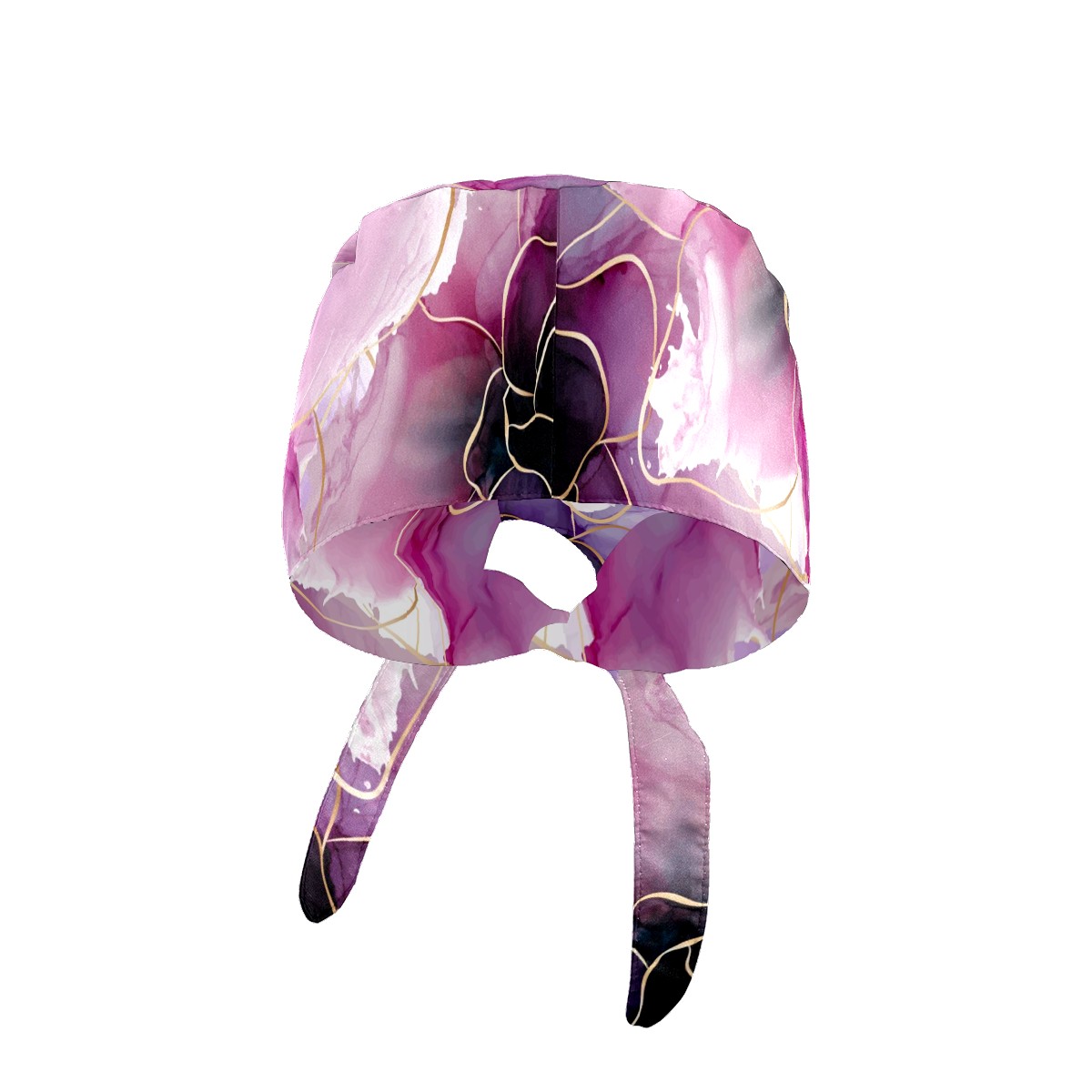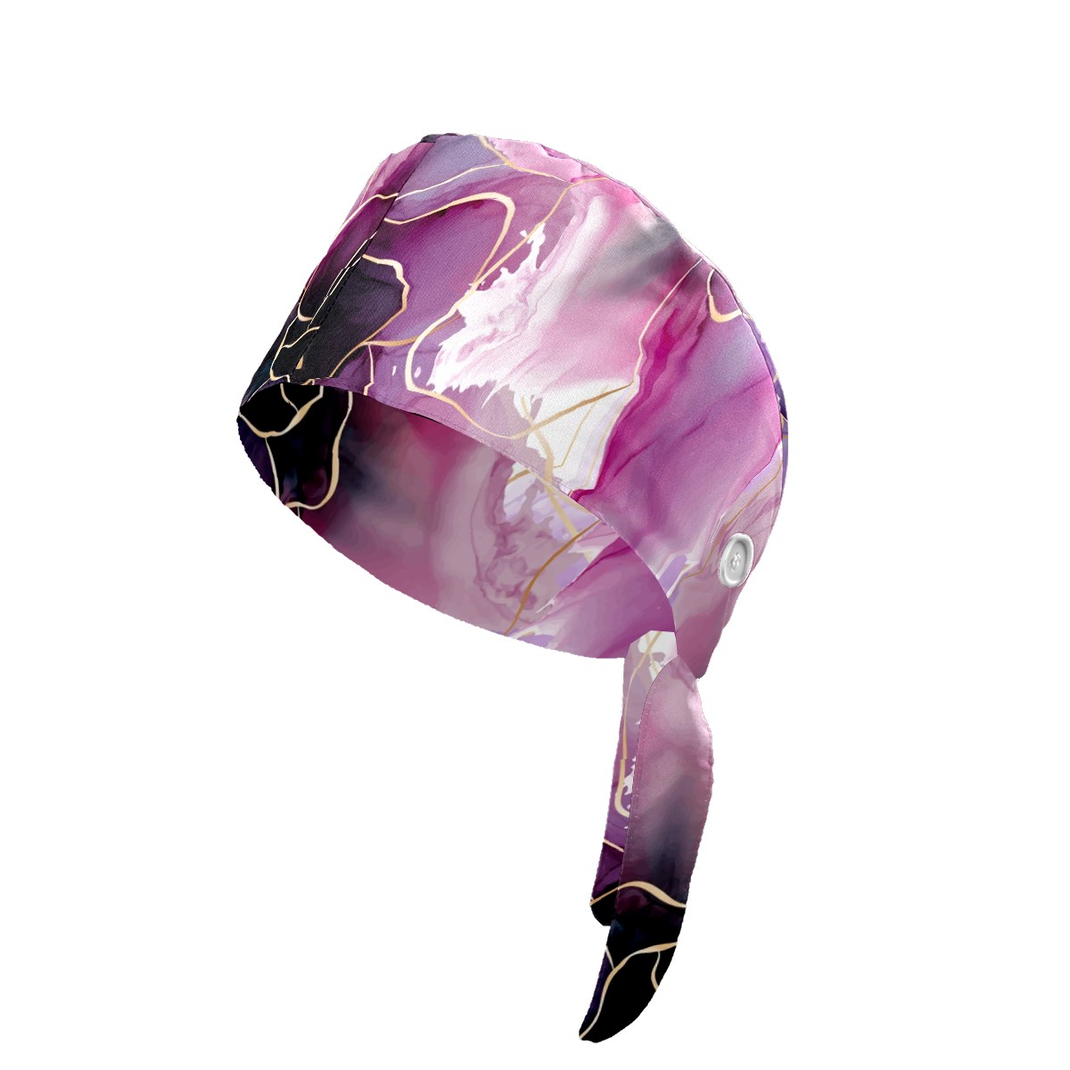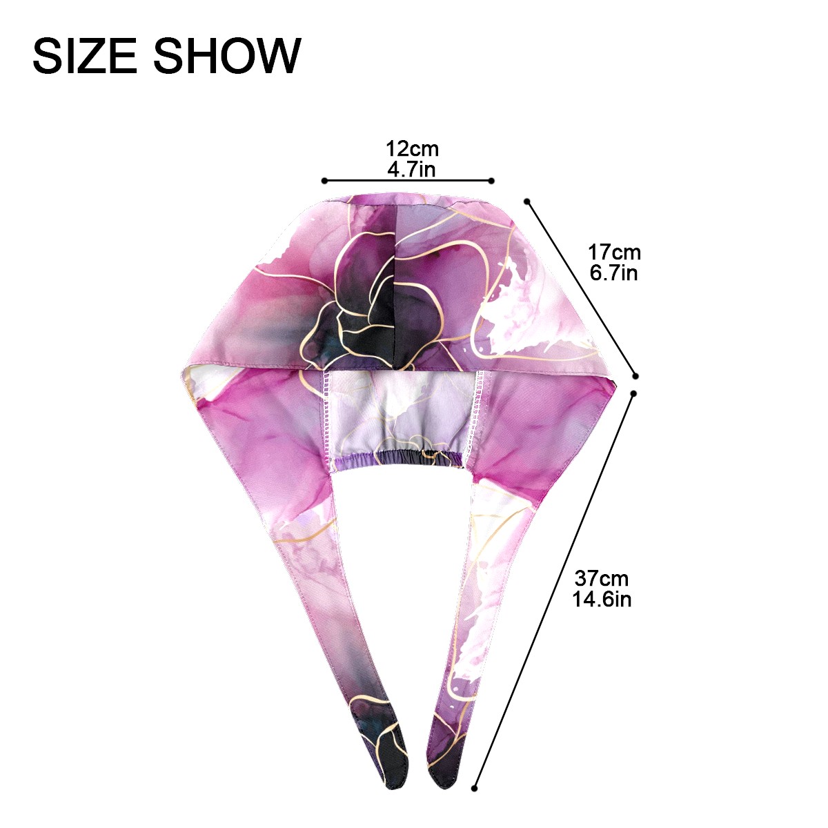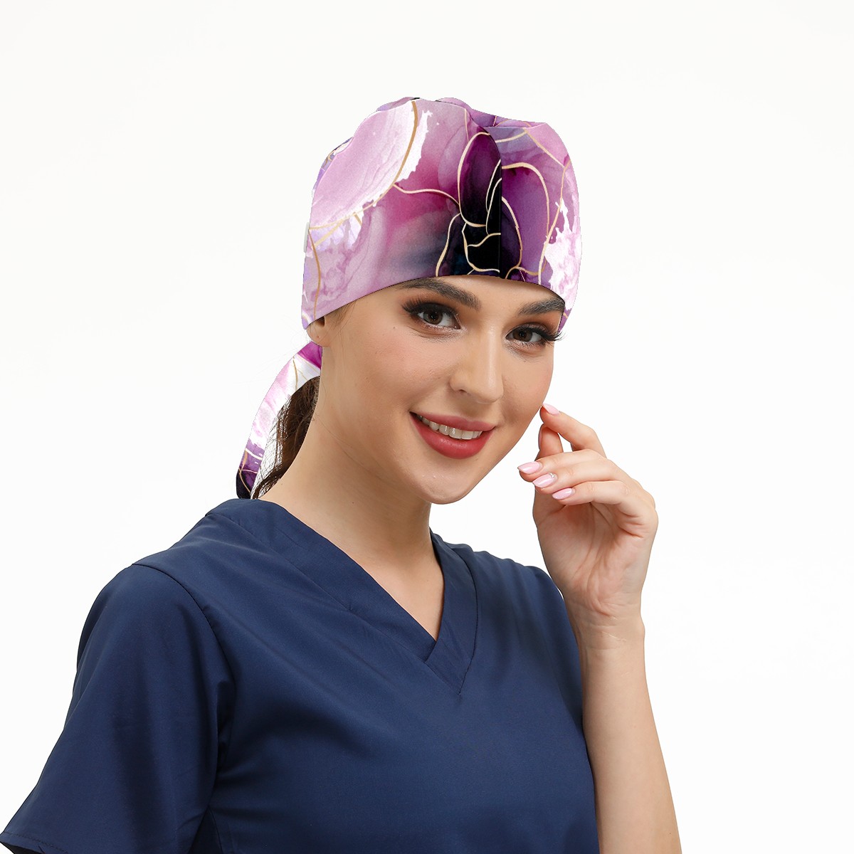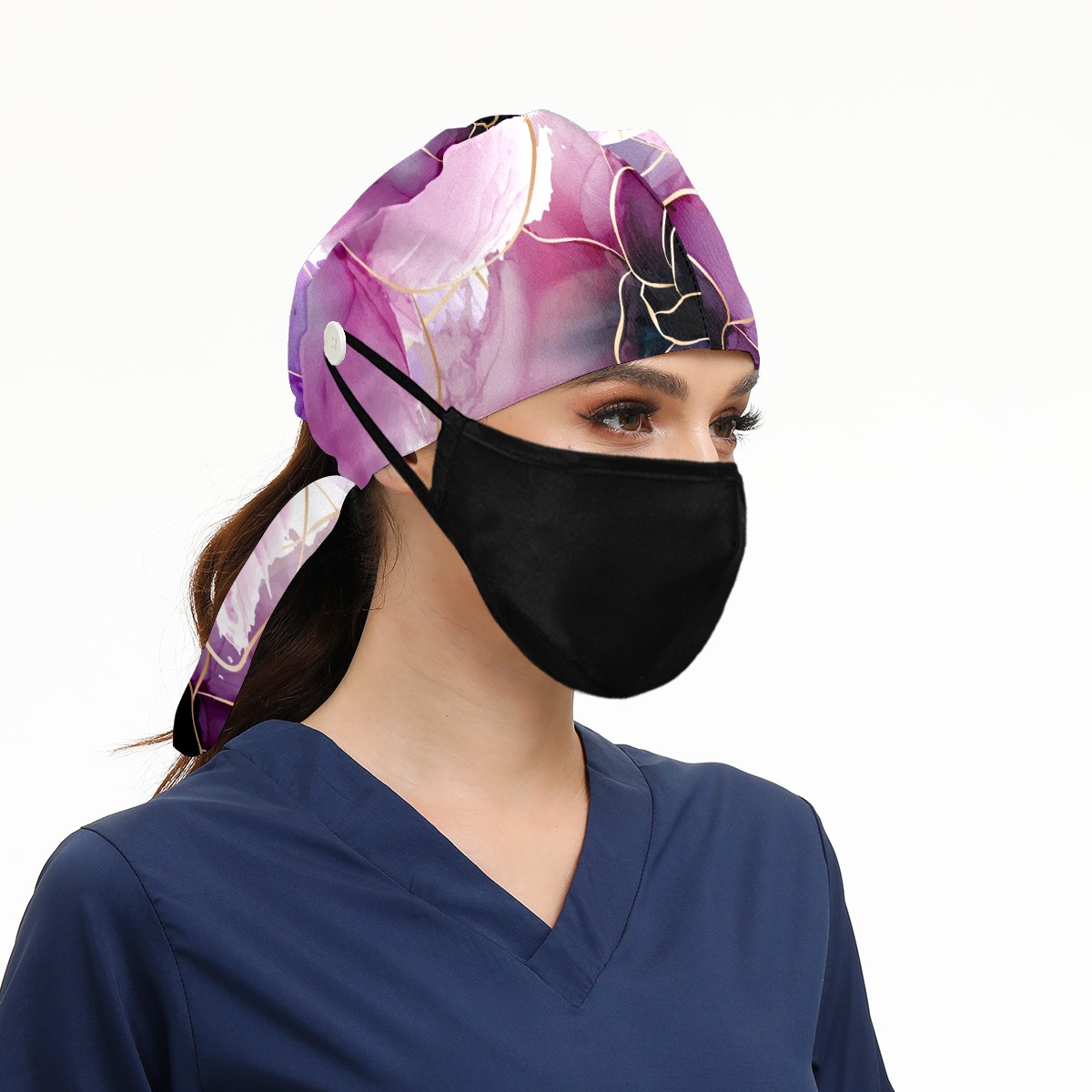 Working Caps with Button & Sweatband Satin Lined Cotton Adjustable Nurse Hats Elastic Band Scrub Cap Surgeon Hat Purple Flower Floral