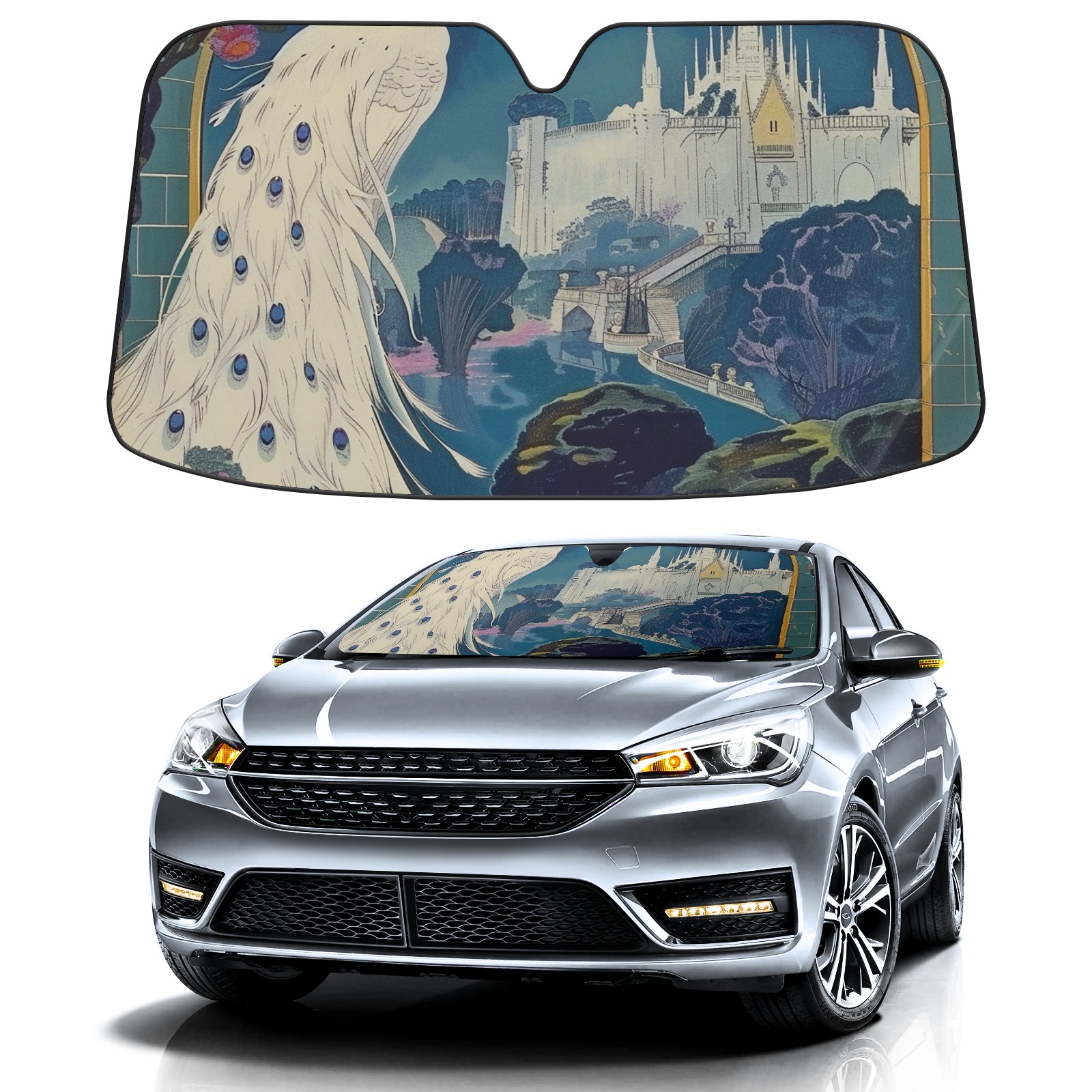 Car Windshield Sun Shade for Front Window Peacock Foldable Vehicle Windshield Car Sun Visor Covers Automotive Window Protector Car Privacy Sun Blocker
