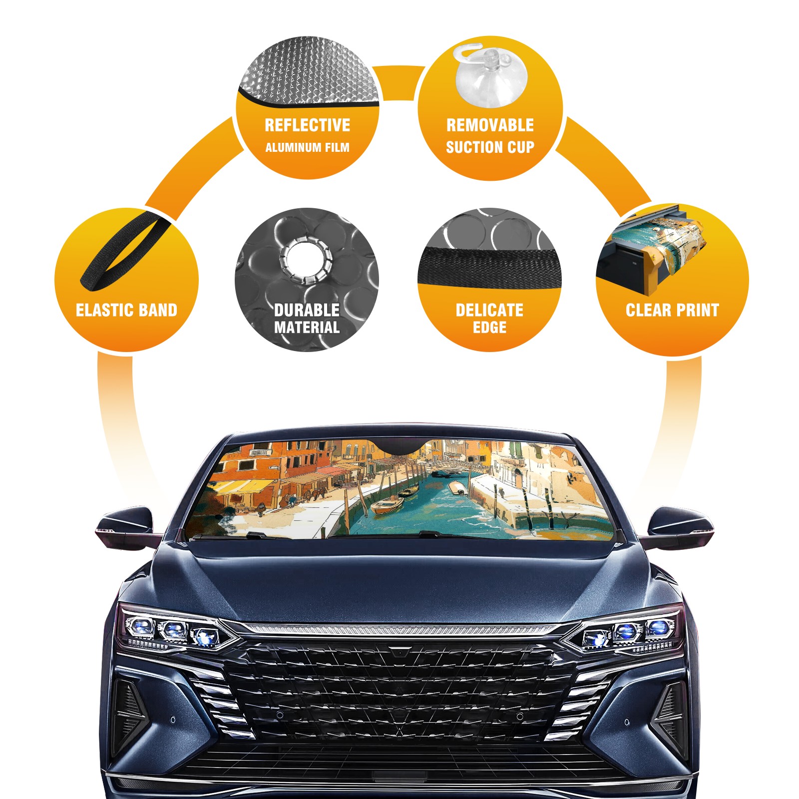Car Windshield Sun Shade for Front Window River Foldable Vehicle Windshield Car Sun Visor Covers Automotive Window Protector Car Privacy Sun Blocker