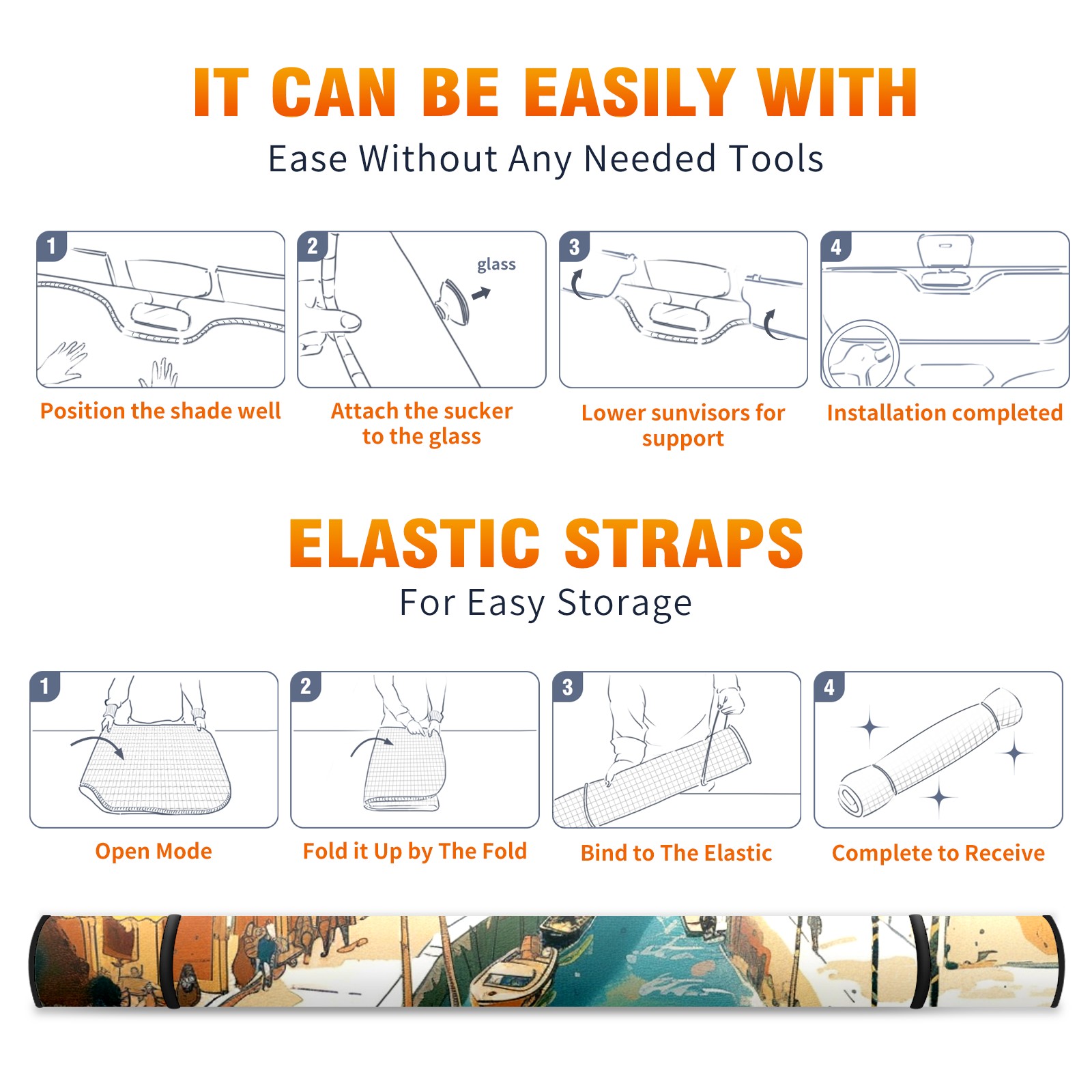 • Diameter /Size 63"L x 33.5"W</b><br> Made from excellent materials which makes it sturdy and protects the car from the sun. Easy to use and pack. Makes the interior of the car cooler.You can easily stash the sunshade in the storage bag or store long term.It open and closes easy. Also the leather storage bag is durable and easy to put the umbrella back into.This windshield sunshade provides complete coverage and keeps your car interior cool under direct sun. It is easy to open and position under the windshield and around the rear-view mirror. Makes Your Car Easy To Identify, Perfect For Finding Your Car In Crowded Parking Lots And Garages.Great Choice: It Is A Great Gift For Dad, Boyfriend, Brother, Brother And Uncle, Friends, Classmates, Family And So On.<br> Notice:</b><br> Due To Difference Computer Monitors, The Color Maybe Slightly Different From Picture. As Different Measurement Methods, Measurement Data Will Float Within 2%.I Hope You Understand.<br> If You Have Any Question About The Item Please Do Not Hesitate To Contact Us Immediately And We Will Give You A Satisfactory Reply Within 24 Hours.