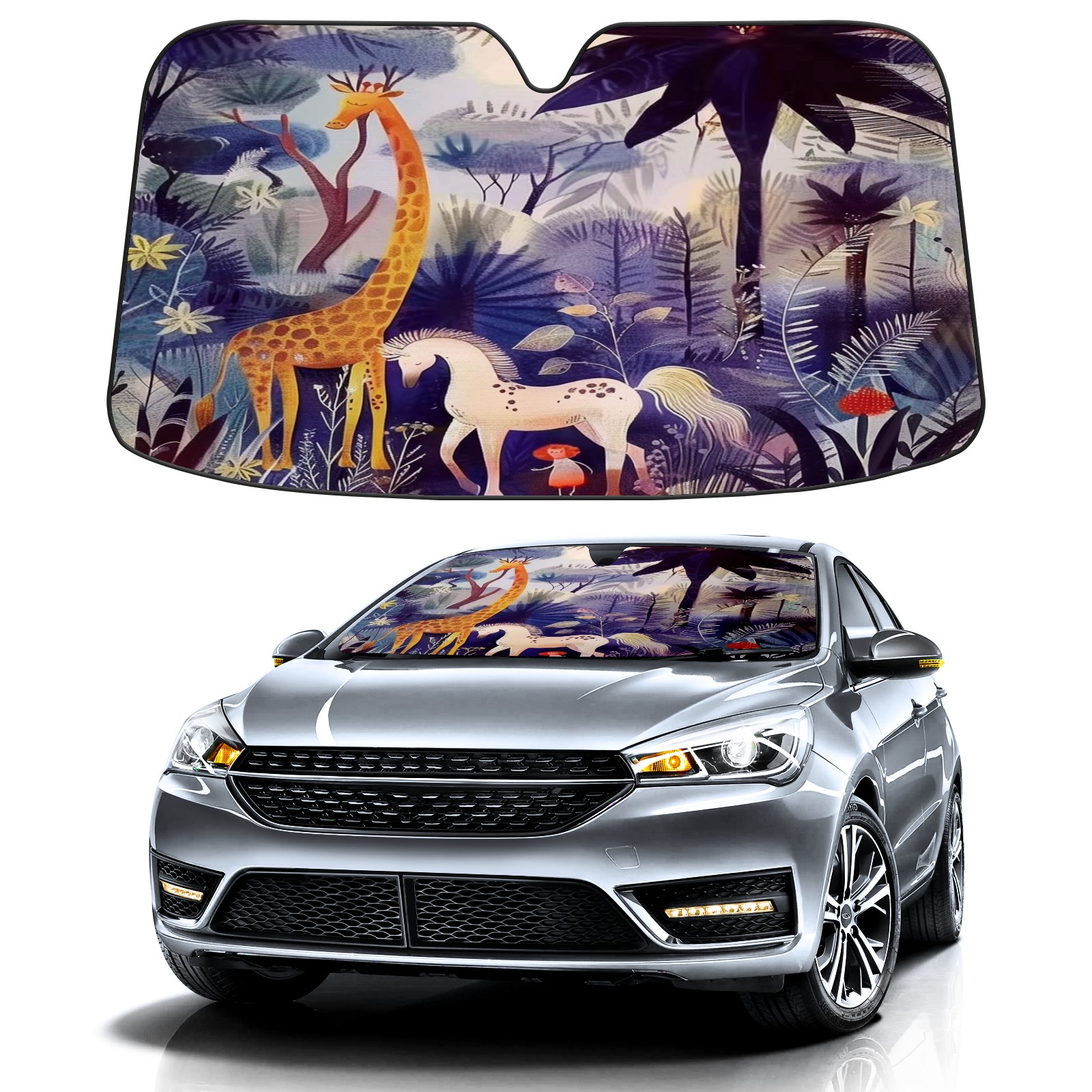 Car Windshield Sun Shade for Front Window Sika Deer Foldable Vehicle Windshield Car Sun Visor Covers Automotive Window Protector Car Privacy Sun Blocker