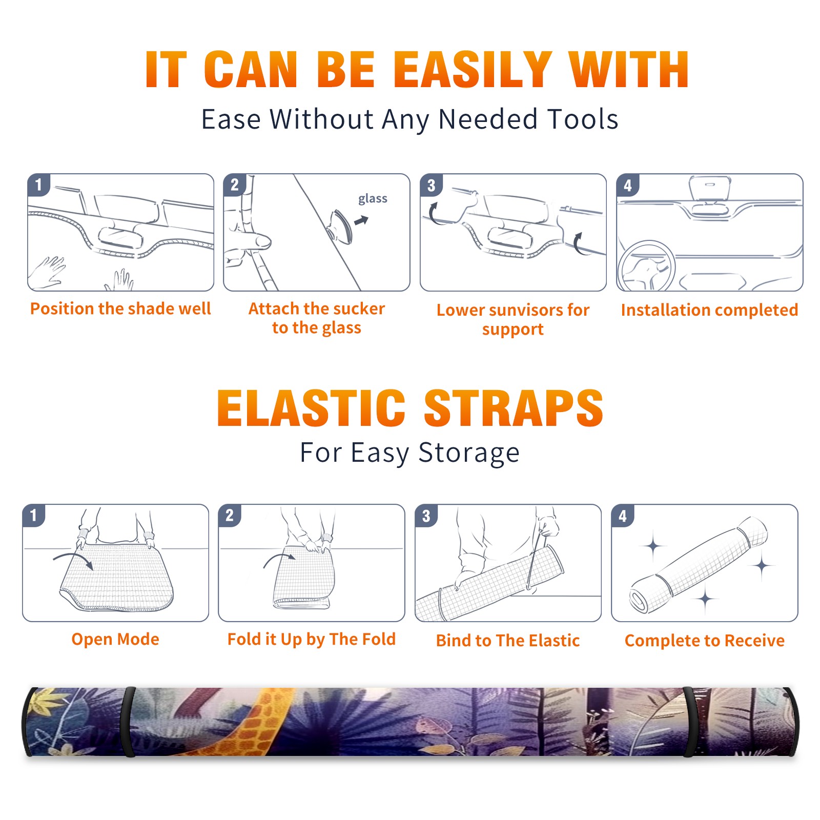 Diameter /Size 63"L x 33.5"W</b><br> Made from excellent materials which makes it sturdy and protects the car from the sun. Easy to use and pack. Makes the interior of the car cooler.You can easily stash the sunshade in the storage bag or store long term.It open and closes easy. Also the leather storage bag is durable and easy to put the umbrella back into.This windshield sunshade provides complete coverage and keeps your car interior cool under direct sun. It is easy to open and position under the windshield and around the rear-view mirror. Makes Your Car Easy To Identify, Perfect For Finding Your Car In Crowded Parking Lots And Garages.Great Choice: It Is A Great Gift For Dad, Boyfriend, Brother, Brother And Uncle, Friends, Classmates, Family And So On.<br> Notice:</b><br> Due To Difference Computer Monitors, The Color Maybe Slightly Different From Picture. As Different Measurement Methods, Measurement Data Will Float Within 2%.I Hope You Understand.<br> If You Have Any Question About The Item Please Do Not Hesitate To Contact Us Immediately And We Will Give You A Satisfactory Reply Within 24 Hours.