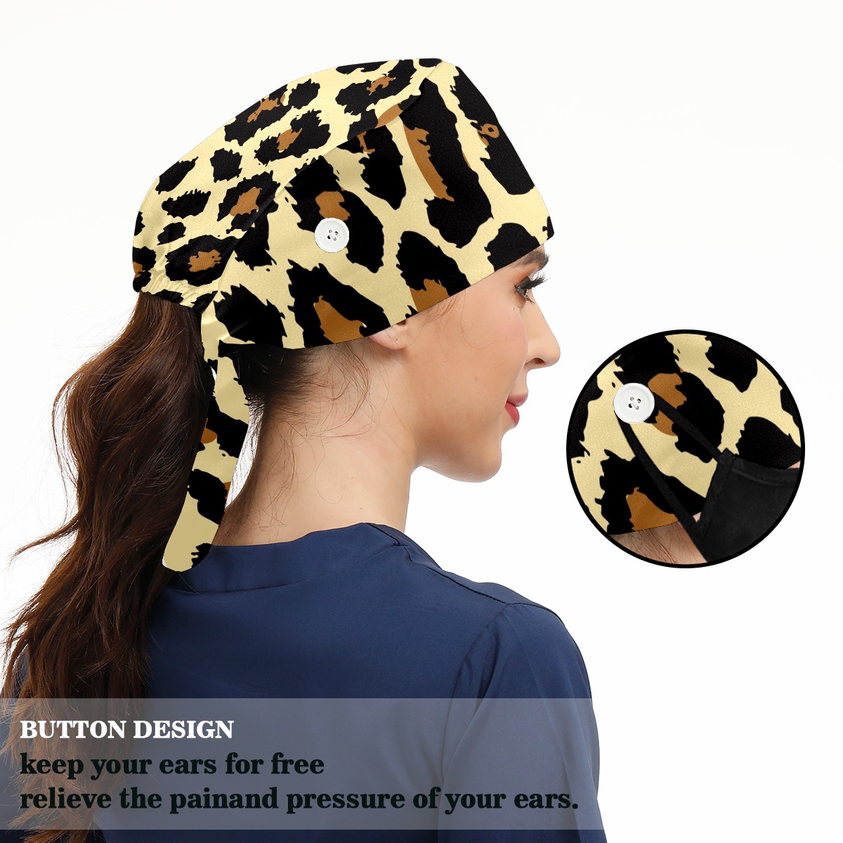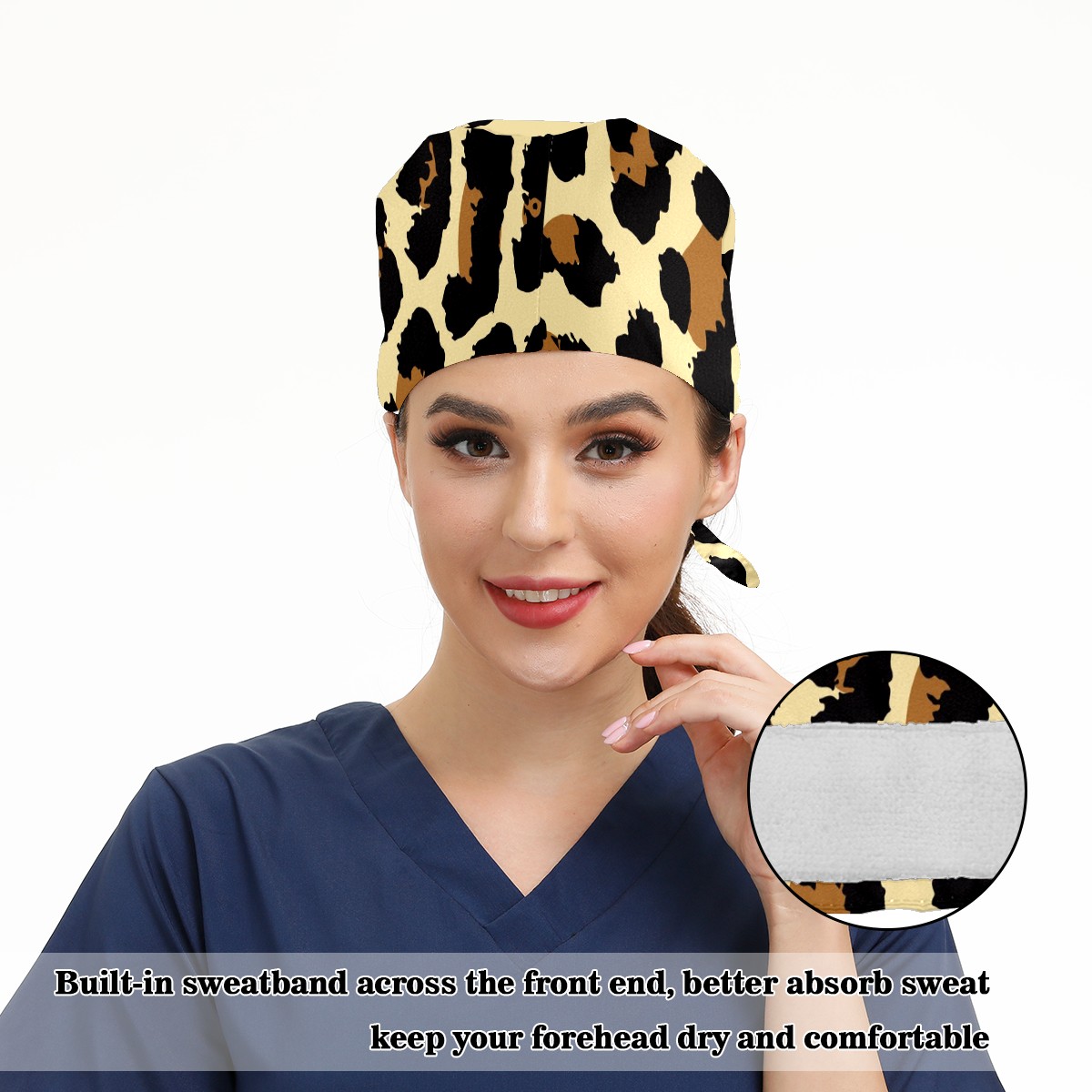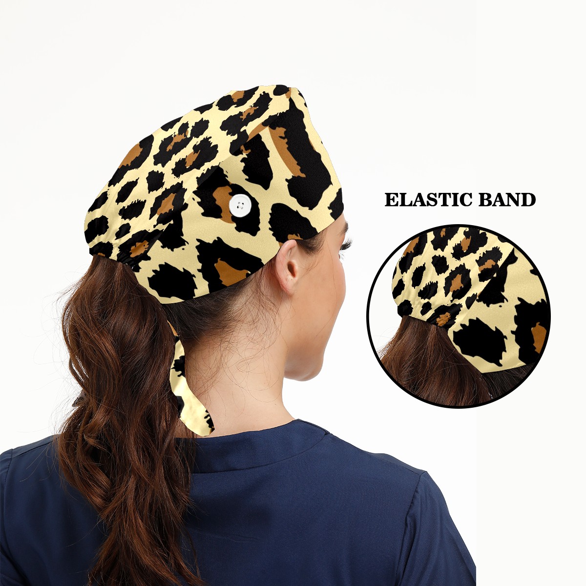 Working Caps with Button & Sweatband Satin Lined Cotton Adjustable Nurse Hats Elastic Band Scrub Cap Surgeon Hat Leopard Print Exotic