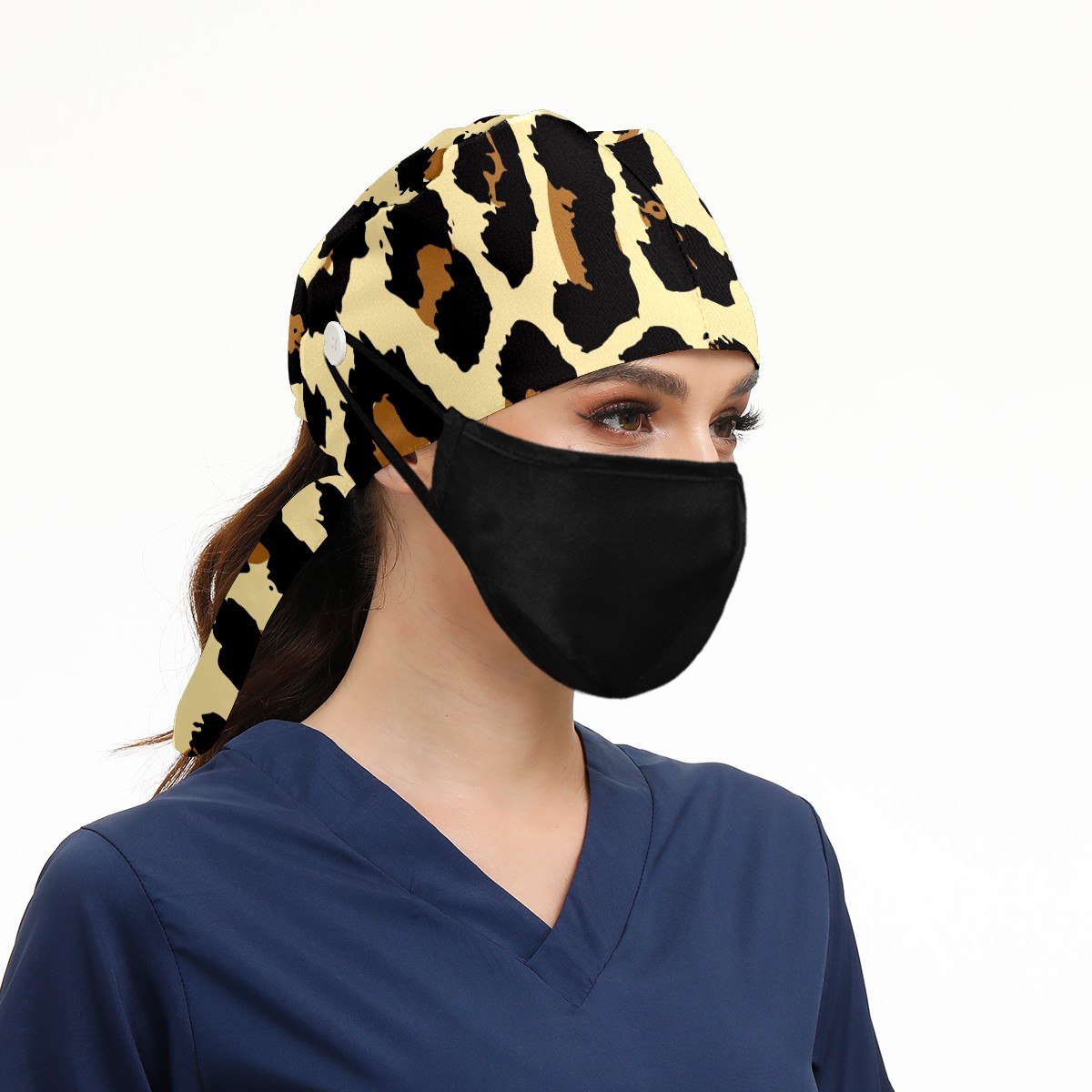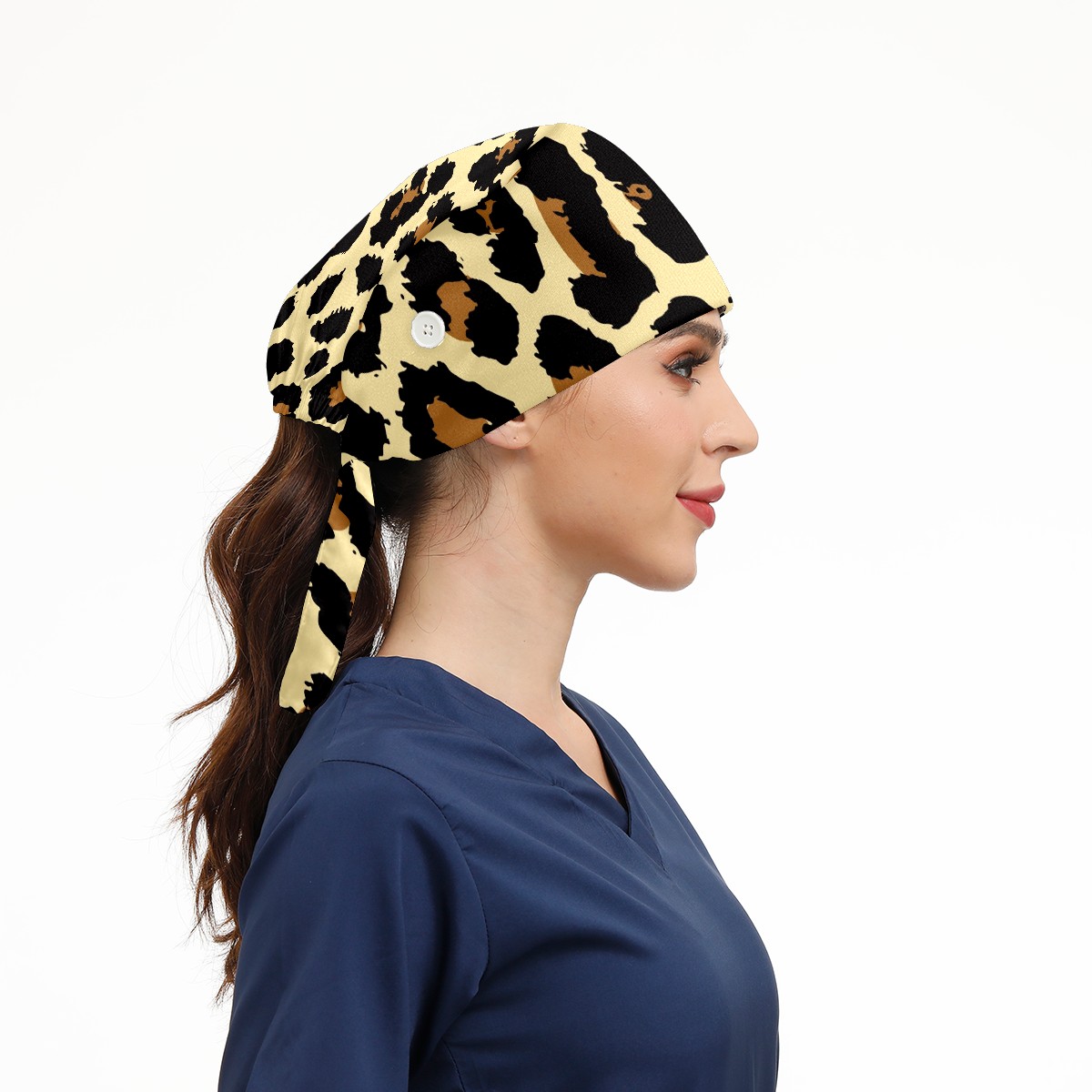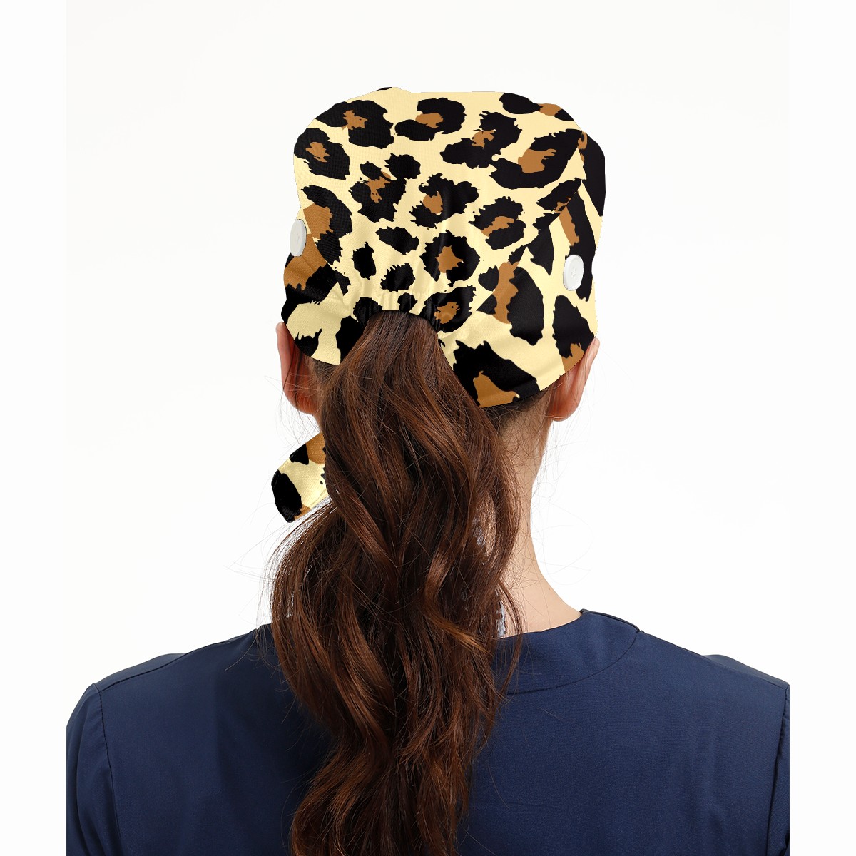 Working Caps with Button & Sweatband Satin Lined Cotton Adjustable Nurse Hats Elastic Band Scrub Cap Surgeon Hat Leopard Print Exotic