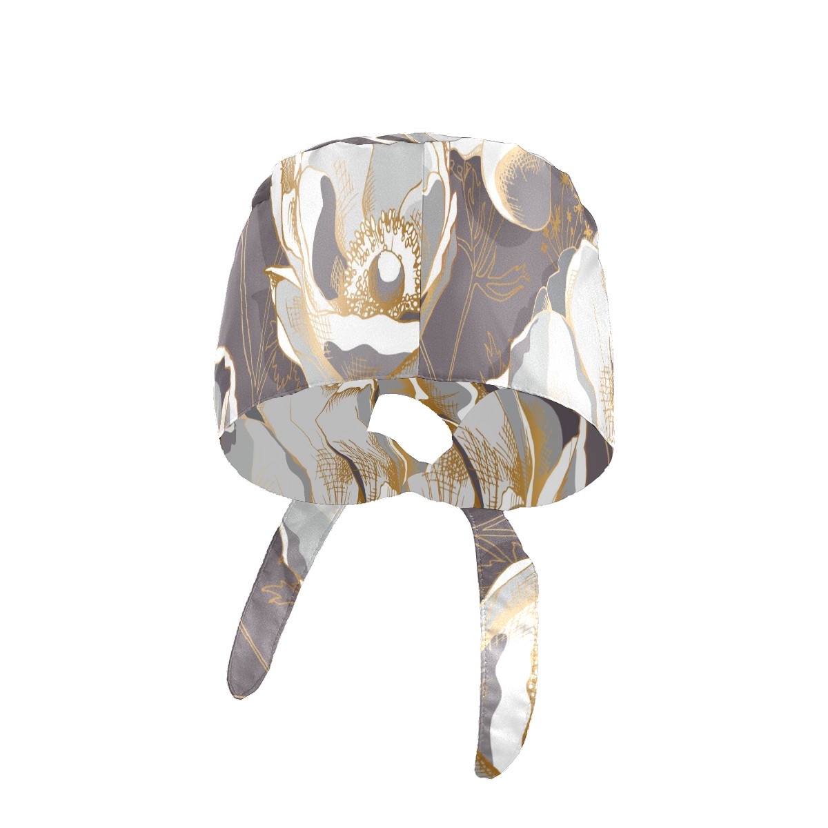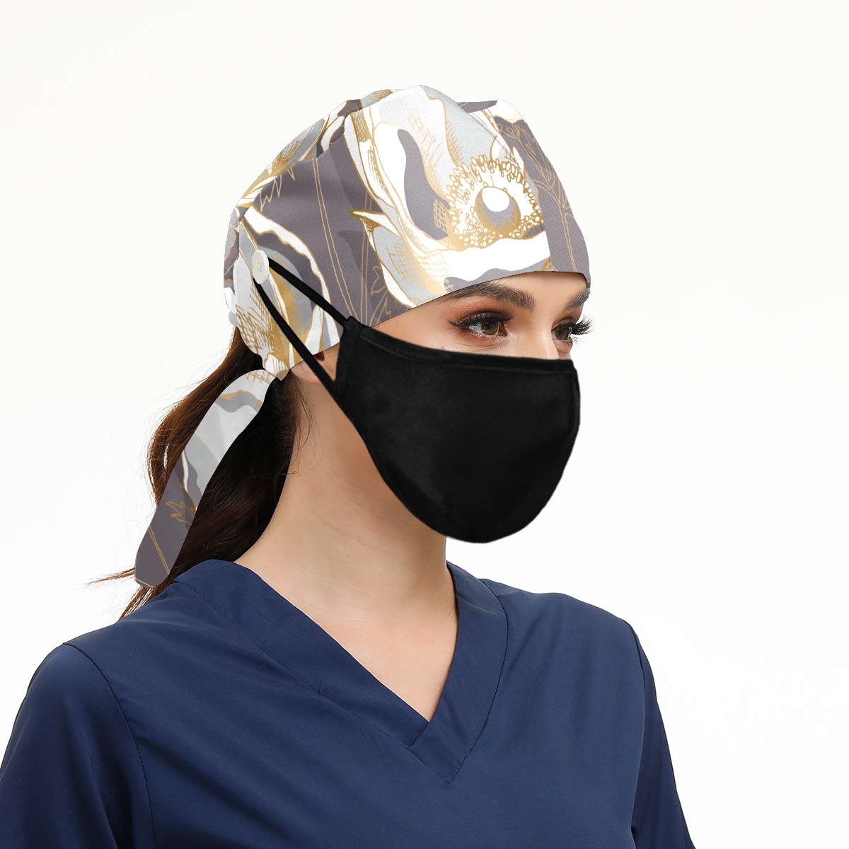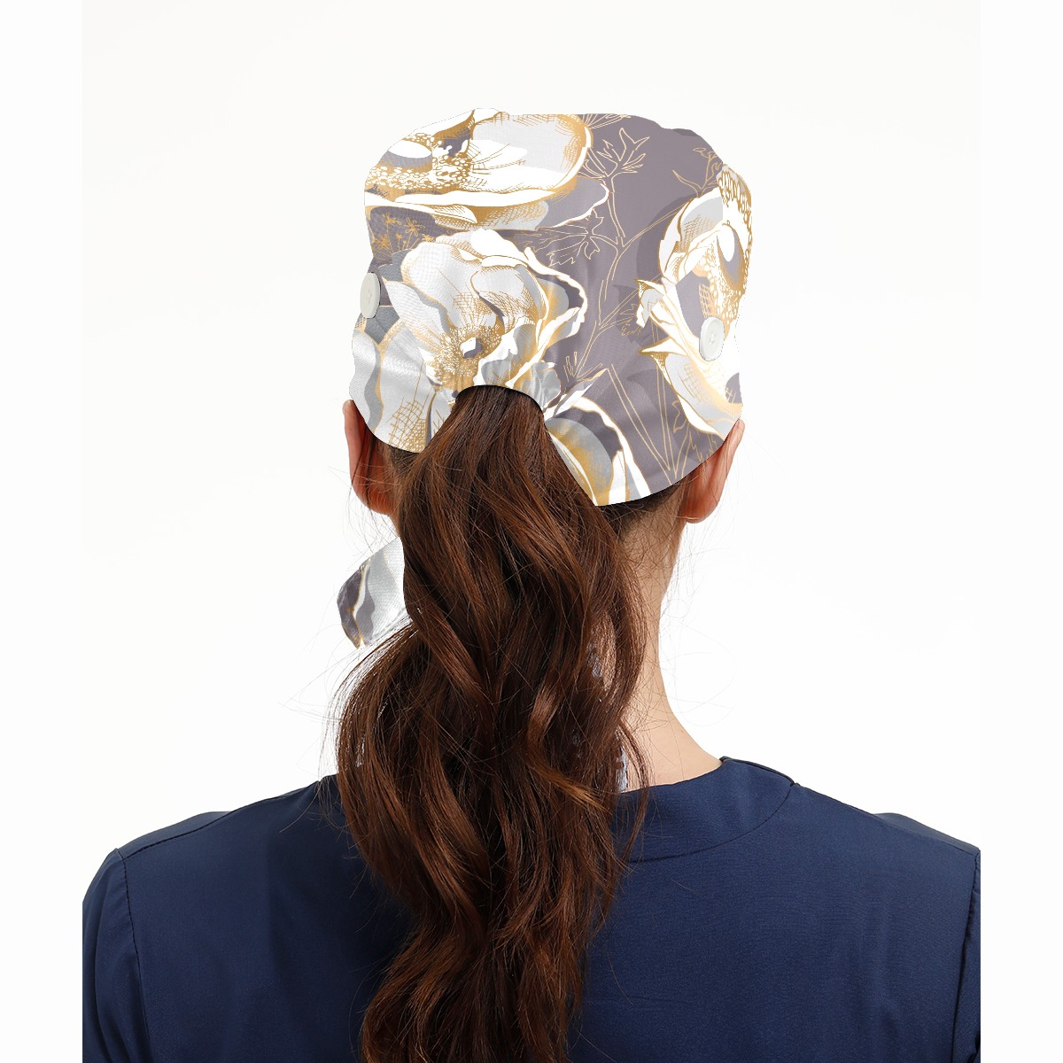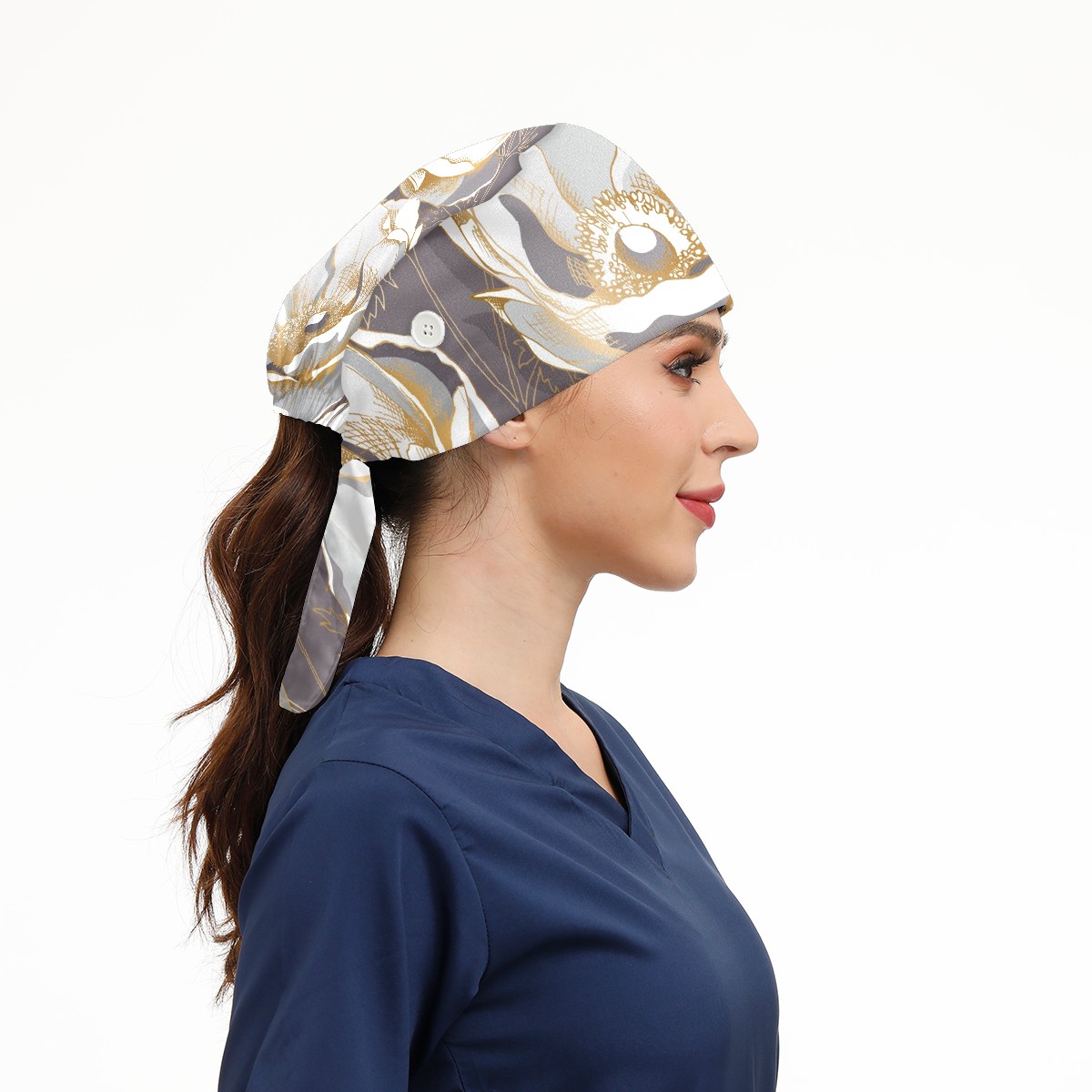 Working Caps with Button & Sweatband Satin Lined Cotton Adjustable Nurse Hats Elastic Band Scrub Cap Surgeon Hat Golden Anemone Flower