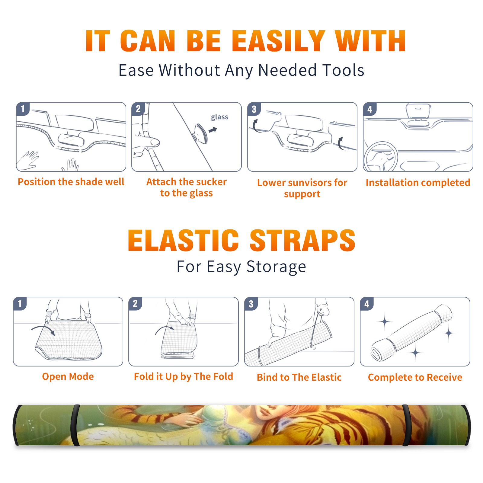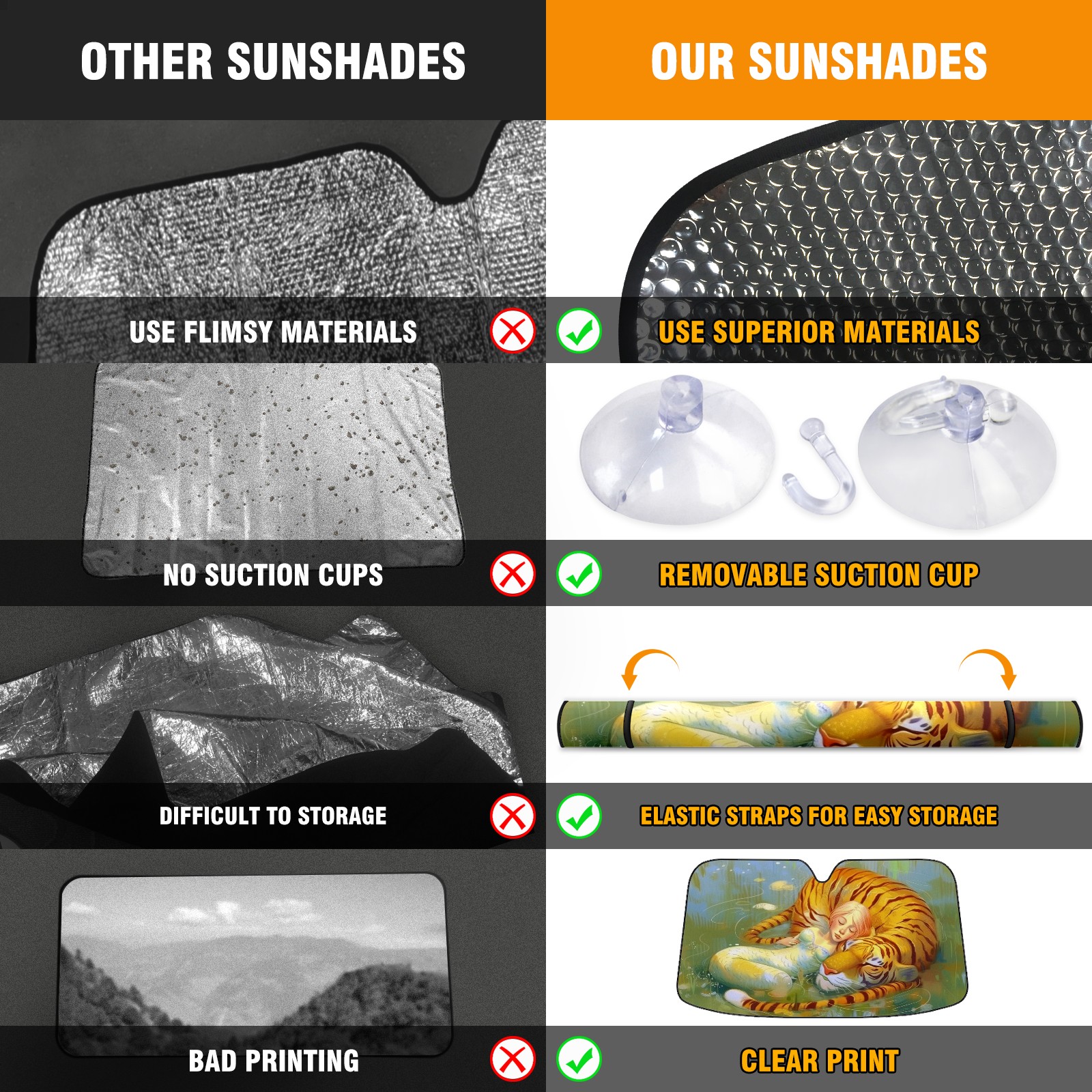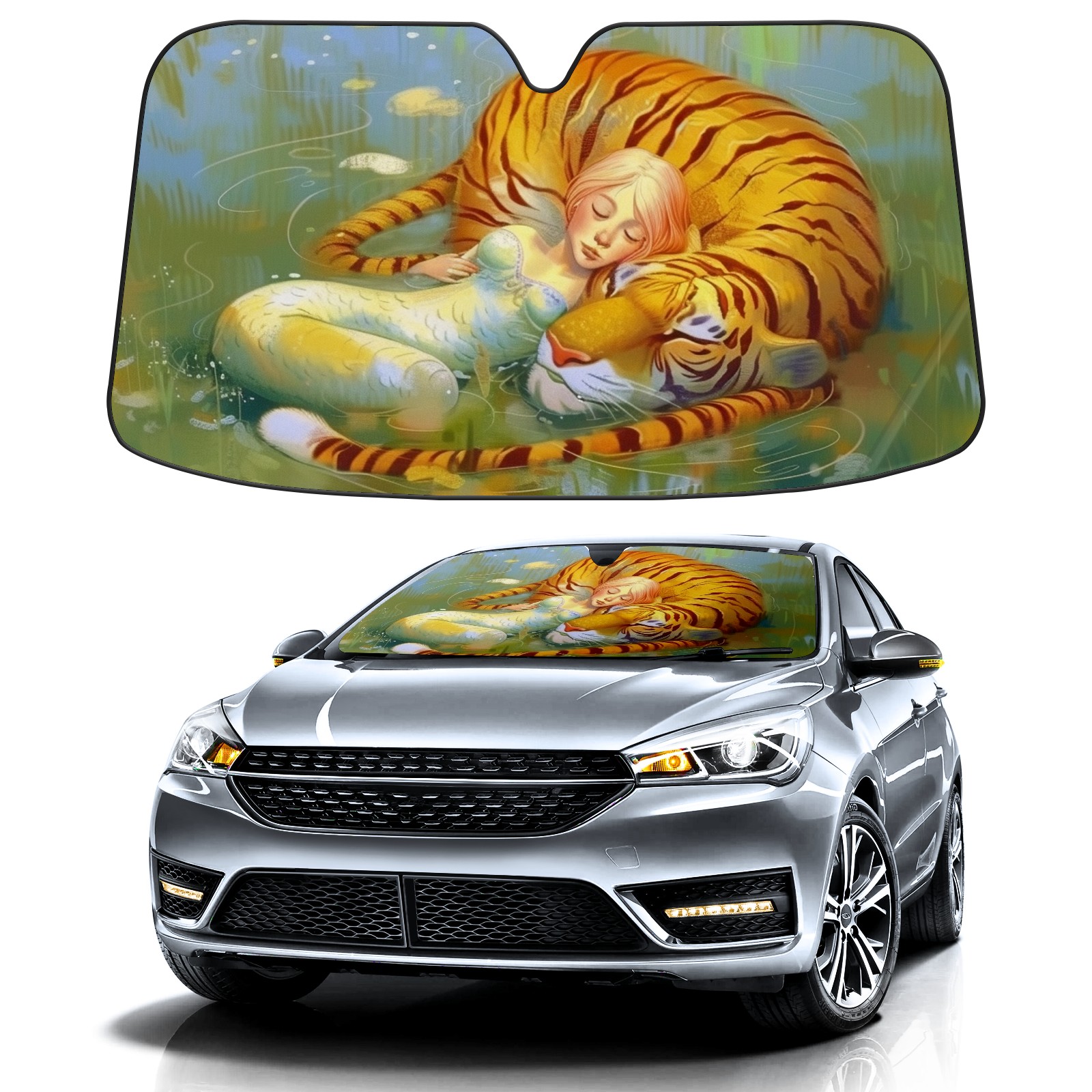 Car Windshield Sun Shade for Front Window Tiger Foldable Vehicle Windshield Car Sun Visor Covers Automotive Window Protector Car Privacy Sun Blocker