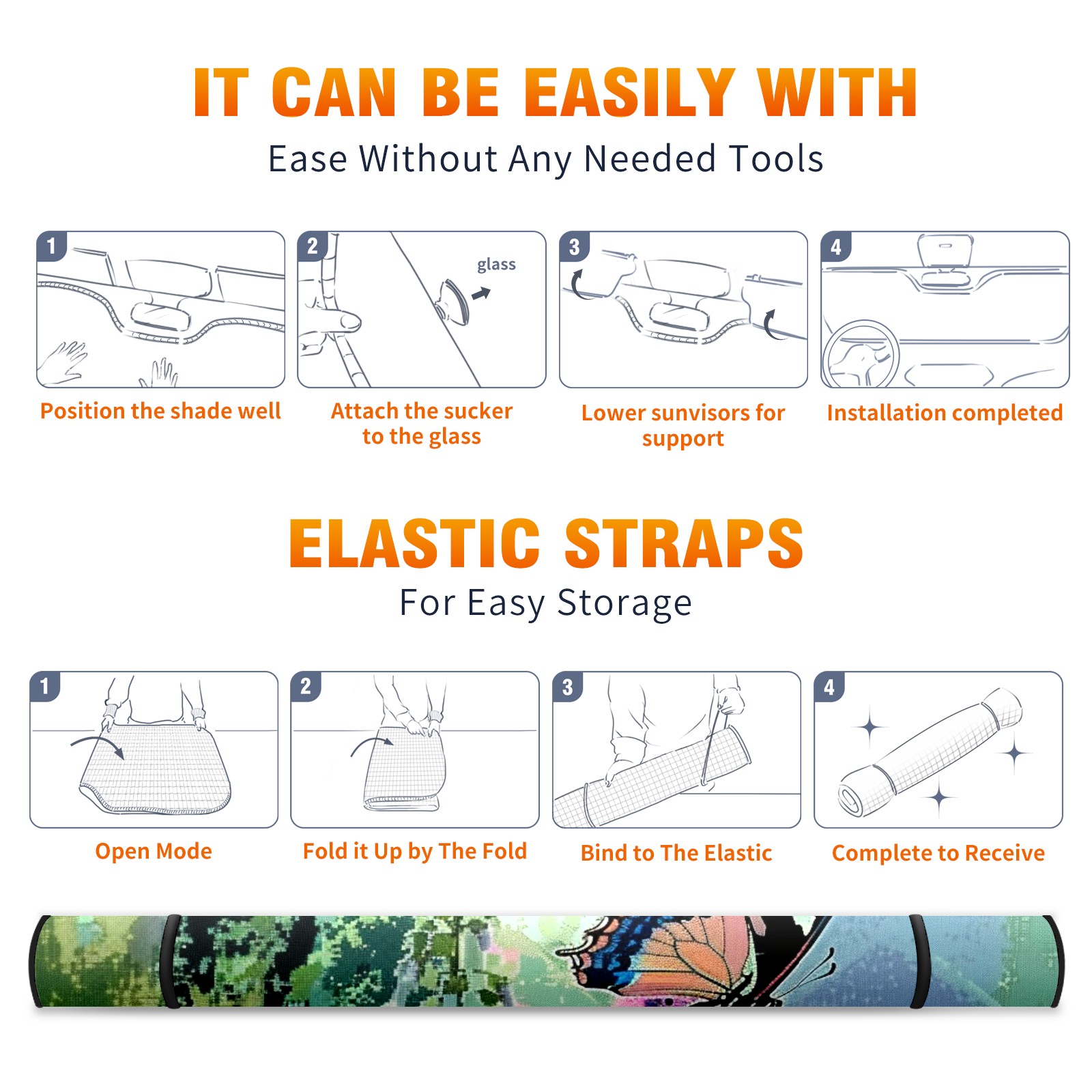 Diameter /Size 63"L x 33.5"W</b><br> Made from excellent materials which makes it sturdy and protects the car from the sun. Easy to use and pack. Makes the interior of the car cooler.You can easily stash the sunshade in the storage bag or store long term.It open and closes easy. Also the leather storage bag is durable and easy to put the umbrella back into.This windshield sunshade provides complete coverage and keeps your car interior cool under direct sun. It is easy to open and position under the windshield and around the rear-view mirror. Makes Your Car Easy To Identify, Perfect For Finding Your Car In Crowded Parking Lots And Garages.Great Choice: It Is A Great Gift For Dad, Boyfriend, Brother, Brother And Uncle, Friends, Classmates, Family And So On.<br> Notice:</b><br> Due To Difference Computer Monitors, The Color Maybe Slightly Different From Picture. As Different Measurement Methods, Measurement Data Will Float Within 2%.I Hope You Understand.<br> If You Have Any Question About The Item Please Do Not Hesitate To Contact Us Immediately And We Will Give You A Satisfactory Reply Within 24 Hours.