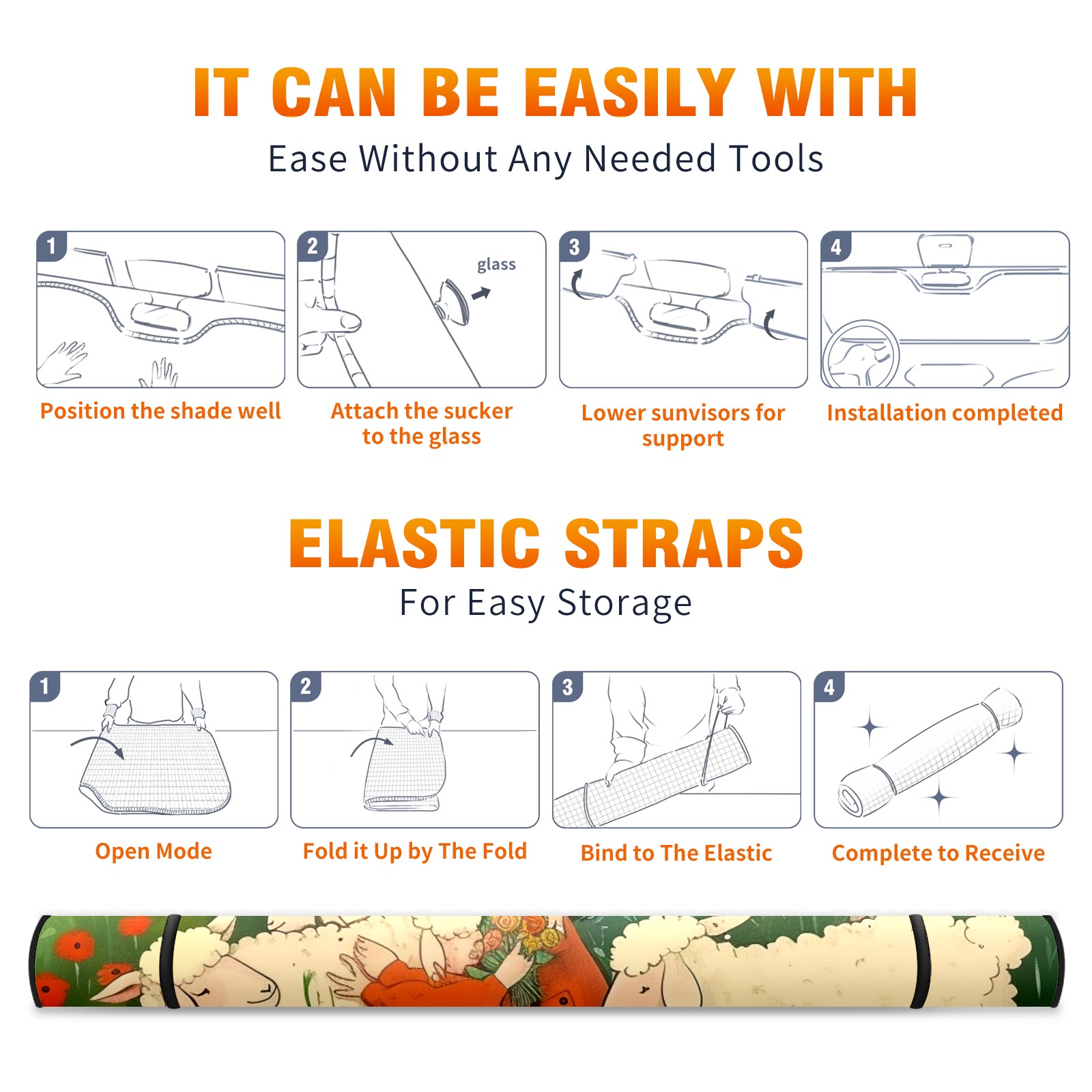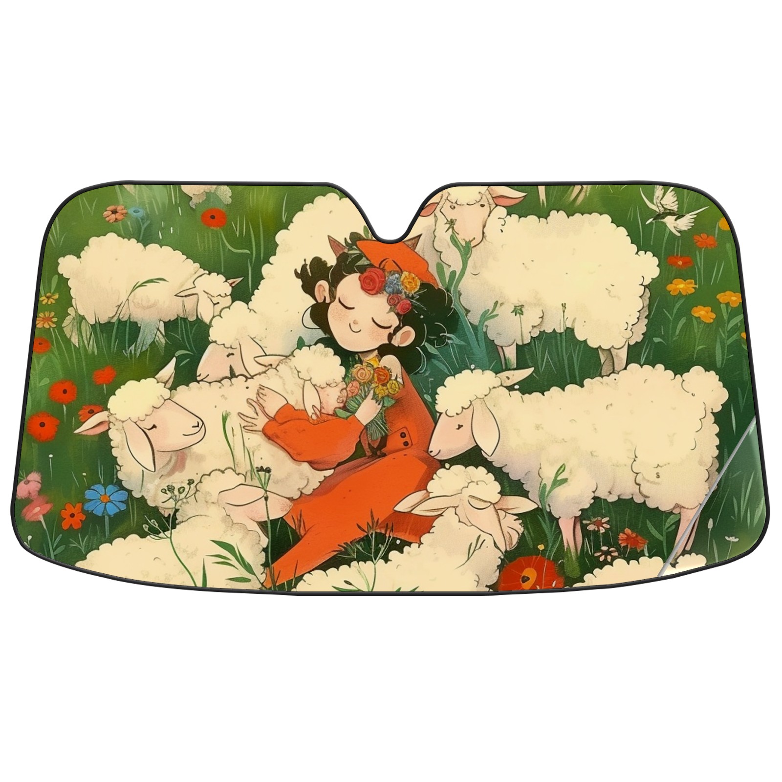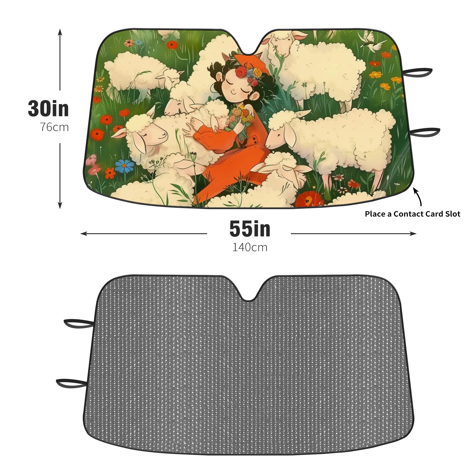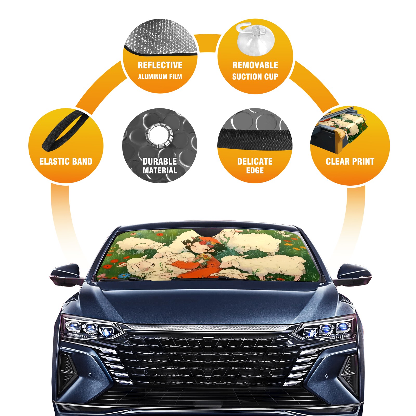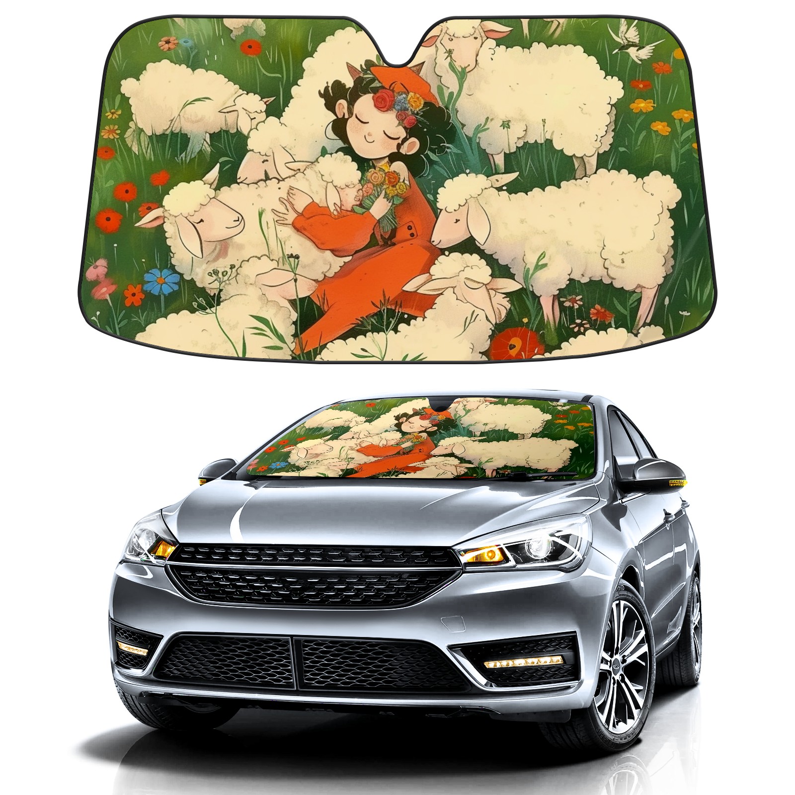 Car Windshield Sun Shade for Front Window Sheep Foldable Vehicle Windshield Car Sun Visor Covers Automotive Window Protector Car Privacy Sun Blocker
