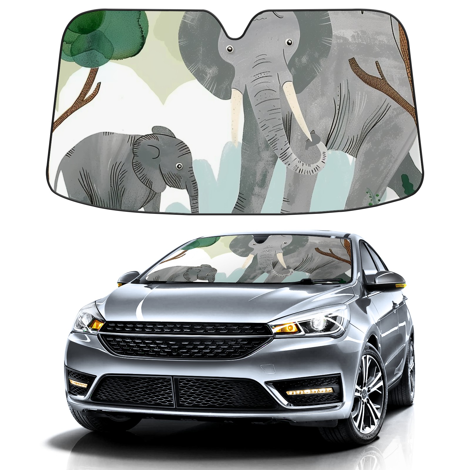 Car Windshield Sun Shade for Front Window Elephant Foldable Vehicle Windshield Car Sun Visor Covers Automotive Window Protector Car Privacy Sun Blocker