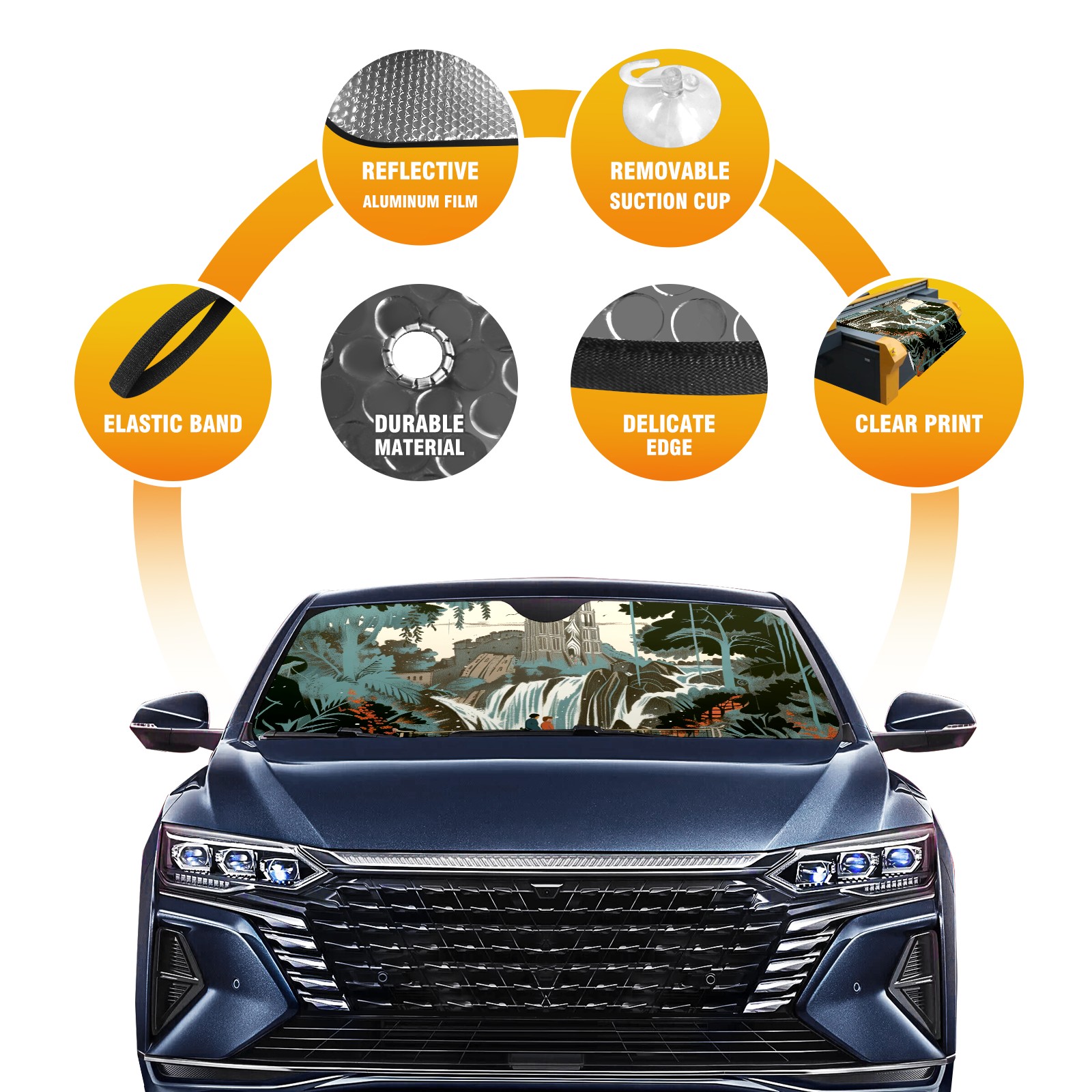 Car Windshield Sun Shade for Front Window Bridge Foldable Vehicle Windshield Car Sun Visor Covers Automotive Window Protector Car Privacy Sun Blocker