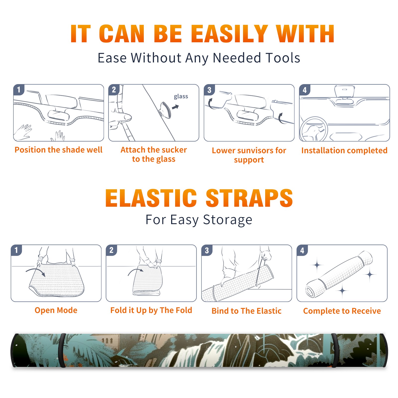 Diameter /Size 63"L x 33.5"W</b><br> Made from excellent materials which makes it sturdy and protects the car from the sun. Easy to use and pack. Makes the interior of the car cooler.You can easily stash the sunshade in the storage bag or store long term.It open and closes easy. Also the leather storage bag is durable and easy to put the umbrella back into.This windshield sunshade provides complete coverage and keeps your car interior cool under direct sun. It is easy to open and position under the windshield and around the rear-view mirror. Makes Your Car Easy To Identify, Perfect For Finding Your Car In Crowded Parking Lots And Garages.Great Choice: It Is A Great Gift For Dad, Boyfriend, Brother, Brother And Uncle, Friends, Classmates, Family And So On.<br> Notice:</b><br> Due To Difference Computer Monitors, The Color Maybe Slightly Different From Picture. As Different Measurement Methods, Measurement Data Will Float Within 2%.I Hope You Understand.<br> If You Have Any Question About The Item Please Do Not Hesitate To Contact Us Immediately And We Will Give You A Satisfactory Reply Within 24 Hours.