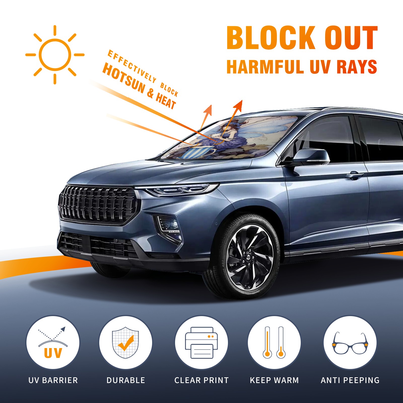 Car Windshield Sun Shade for Front Window 天使 Foldable Vehicle Windshield Car Sun Visor Covers Automotive Window Protector Car Privacy Sun Blocker