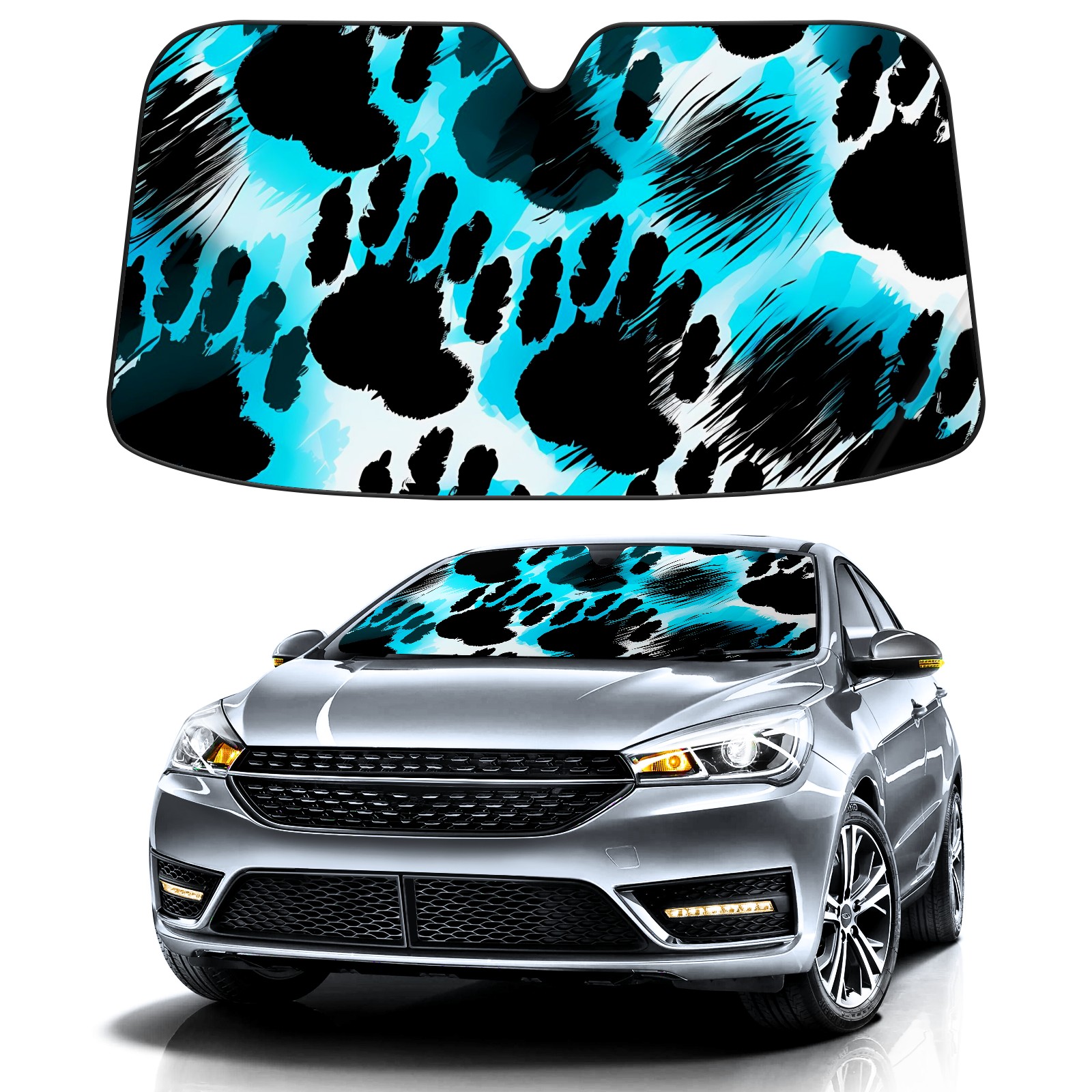 Car Windshield Sun Shade for Front Window Paw Print Foldable Vehicle Windshield Car Sun Visor Covers Automotive Window Protector Car Privacy Sun Blocker
