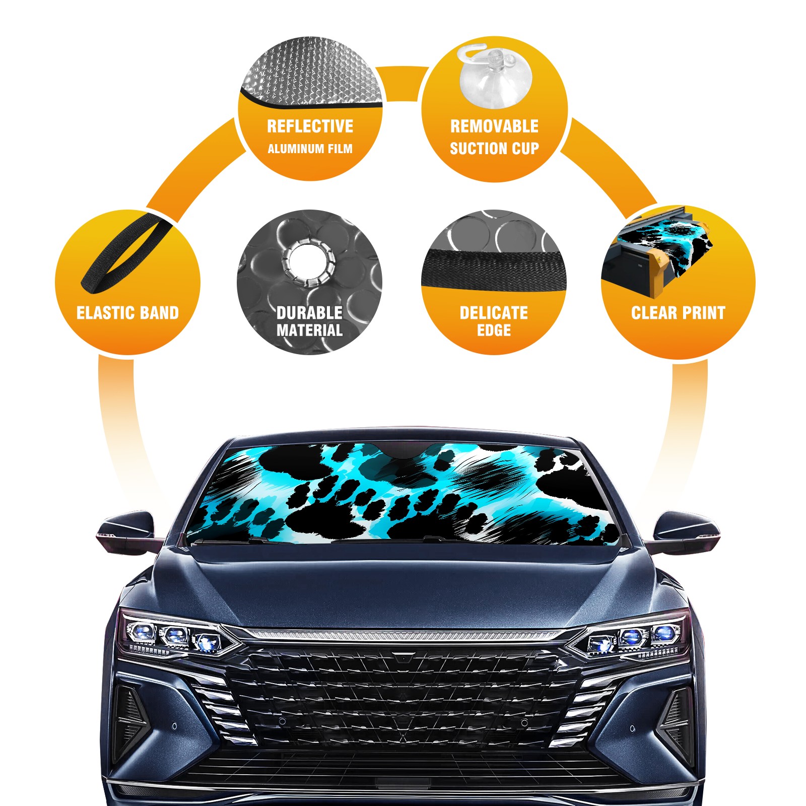 Diameter /Size 63"L x 33.5"W</b><br> Made from excellent materials which makes it sturdy and protects the car from the sun. Easy to use and pack. Makes the interior of the car cooler.You can easily stash the sunshade in the storage bag or store long term.It open and closes easy. Also the leather storage bag is durable and easy to put the umbrella back into.This windshield sunshade provides complete coverage and keeps your car interior cool under direct sun. It is easy to open and position under the windshield and around the rear-view mirror. Makes Your Car Easy To Identify, Perfect For Finding Your Car In Crowded Parking Lots And Garages.Great Choice: It Is A Great Gift For Dad, Boyfriend, Brother, Brother And Uncle, Friends, Classmates, Family And So On.<br> Notice:</b><br> Due To Difference Computer Monitors, The Color Maybe Slightly Different From Picture. As Different Measurement Methods, Measurement Data Will Float Within 2%.I Hope You Understand.<br> If You Have Any Question About The Item Please Do Not Hesitate To Contact Us Immediately And We Will Give You A Satisfactory Reply Within 24 Hours.