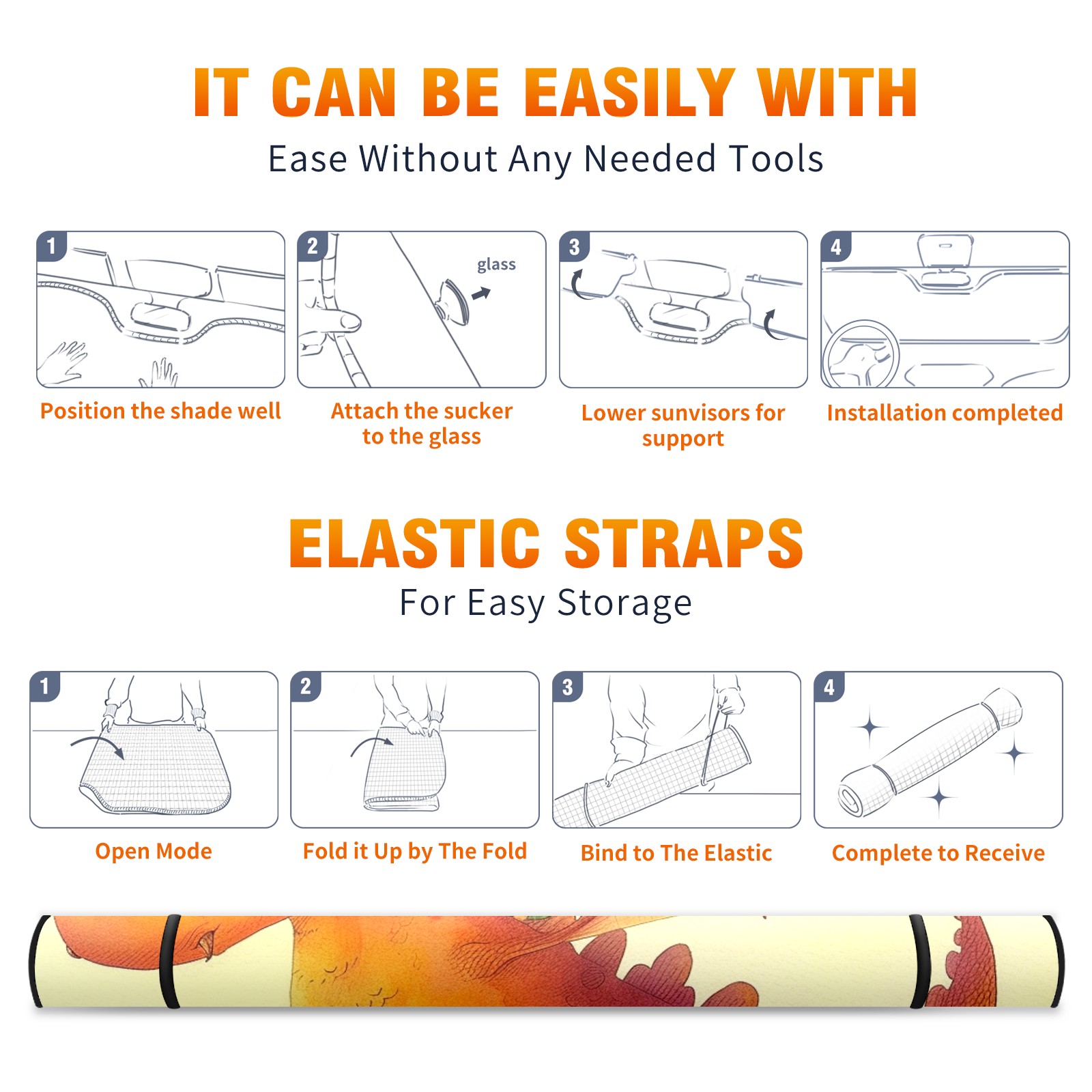Diameter /Size 63"L x 33.5"W</b><br> Made from excellent materials which makes it sturdy and protects the car from the sun. Easy to use and pack. Makes the interior of the car cooler.You can easily stash the sunshade in the storage bag or store long term.It open and closes easy. Also the leather storage bag is durable and easy to put the umbrella back into.This windshield sunshade provides complete coverage and keeps your car interior cool under direct sun. It is easy to open and position under the windshield and around the rear-view mirror. Makes Your Car Easy To Identify, Perfect For Finding Your Car In Crowded Parking Lots And Garages.Great Choice: It Is A Great Gift For Dad, Boyfriend, Brother, Brother And Uncle, Friends, Classmates, Family And So On.<br> Notice:</b><br> Due To Difference Computer Monitors, The Color Maybe Slightly Different From Picture. As Different Measurement Methods, Measurement Data Will Float Within 2%.I Hope You Understand.<br> If You Have Any Question About The Item Please Do Not Hesitate To Contact Us Immediately And We Will Give You A Satisfactory Reply Within 24 Hours.