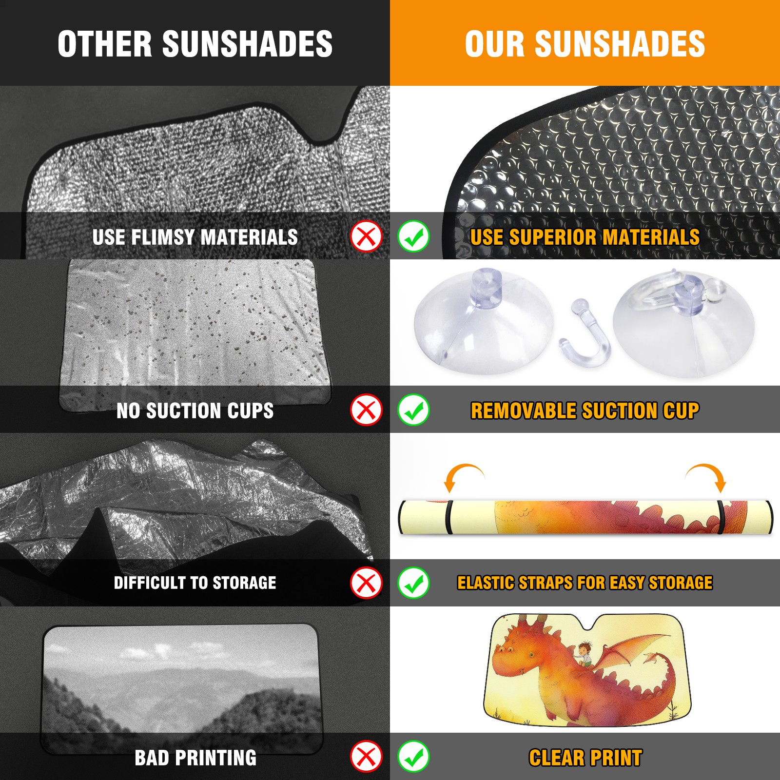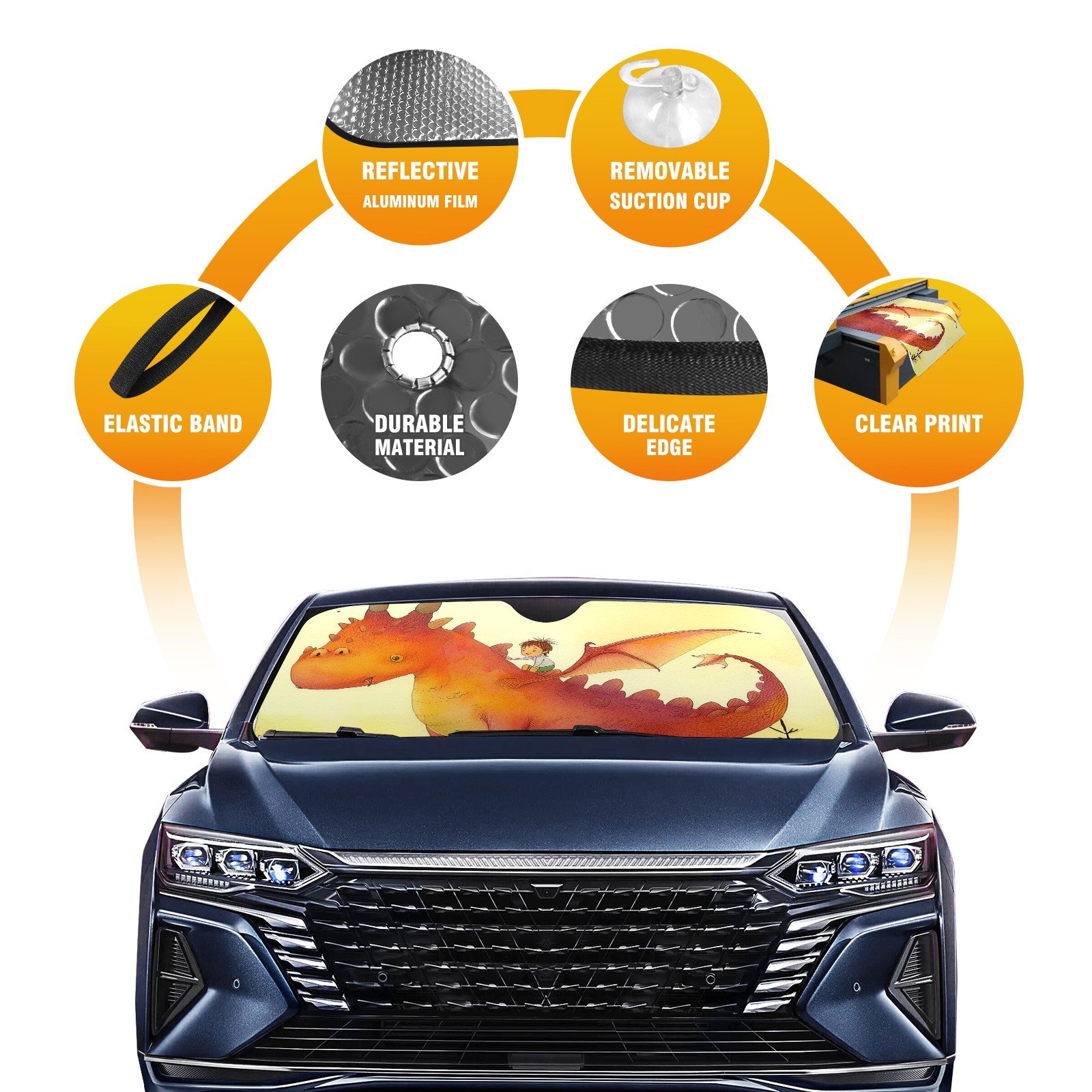 Car Windshield Sun Shade for Front Window Dinosaur Foldable Vehicle Windshield Car Sun Visor Covers Automotive Window Protector Car Privacy Sun Blocker