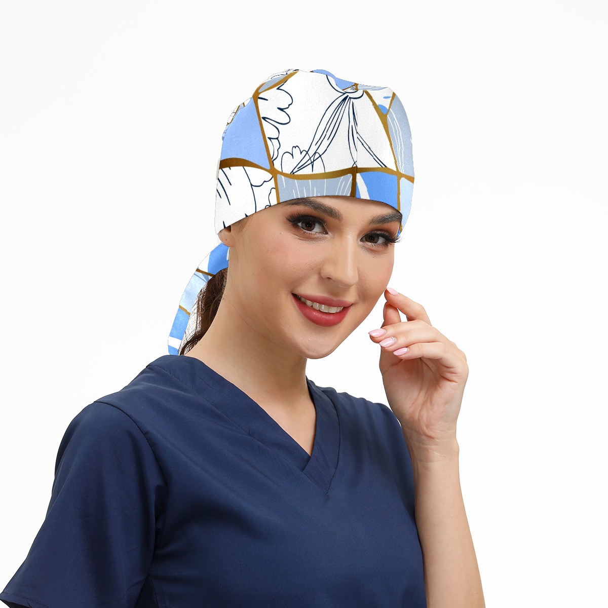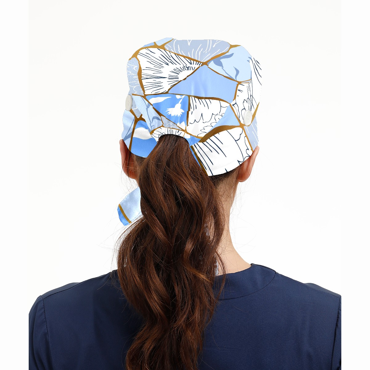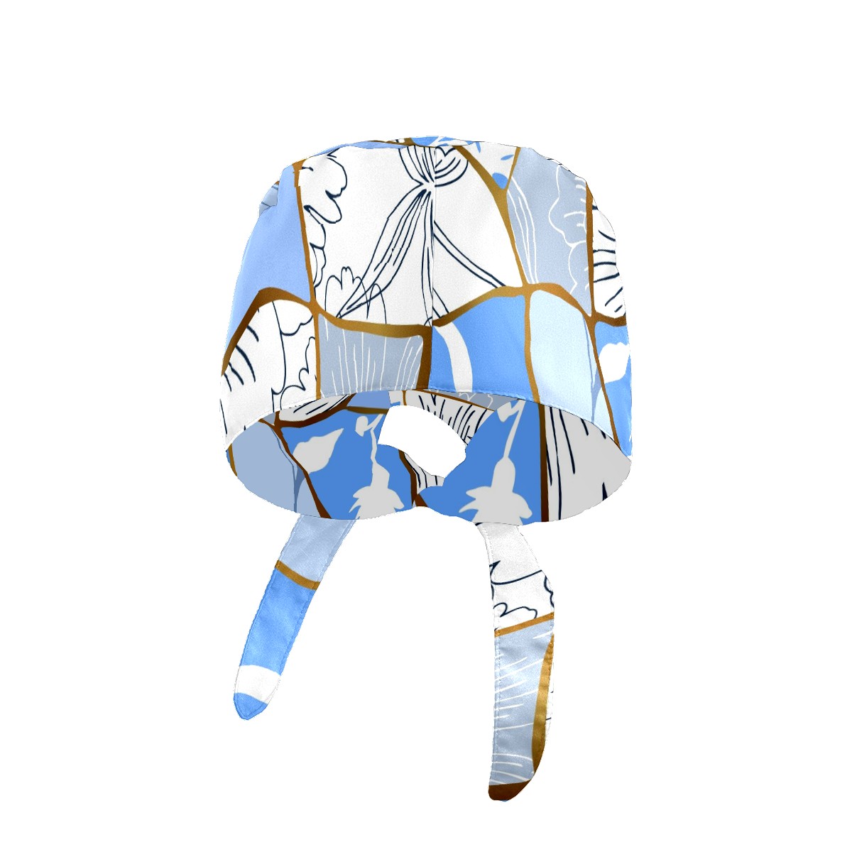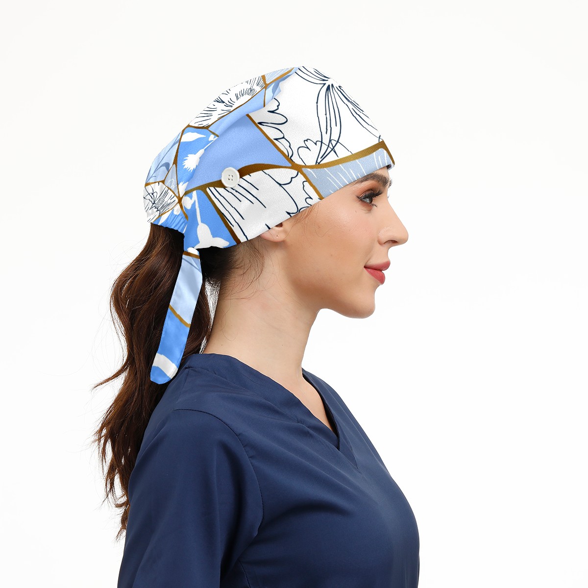 Working Caps with Button & Sweatband Satin Lined Cotton Adjustable Nurse Hats Elastic Band Scrub Cap Surgeon Hat Abstract Mosaic Flowers
