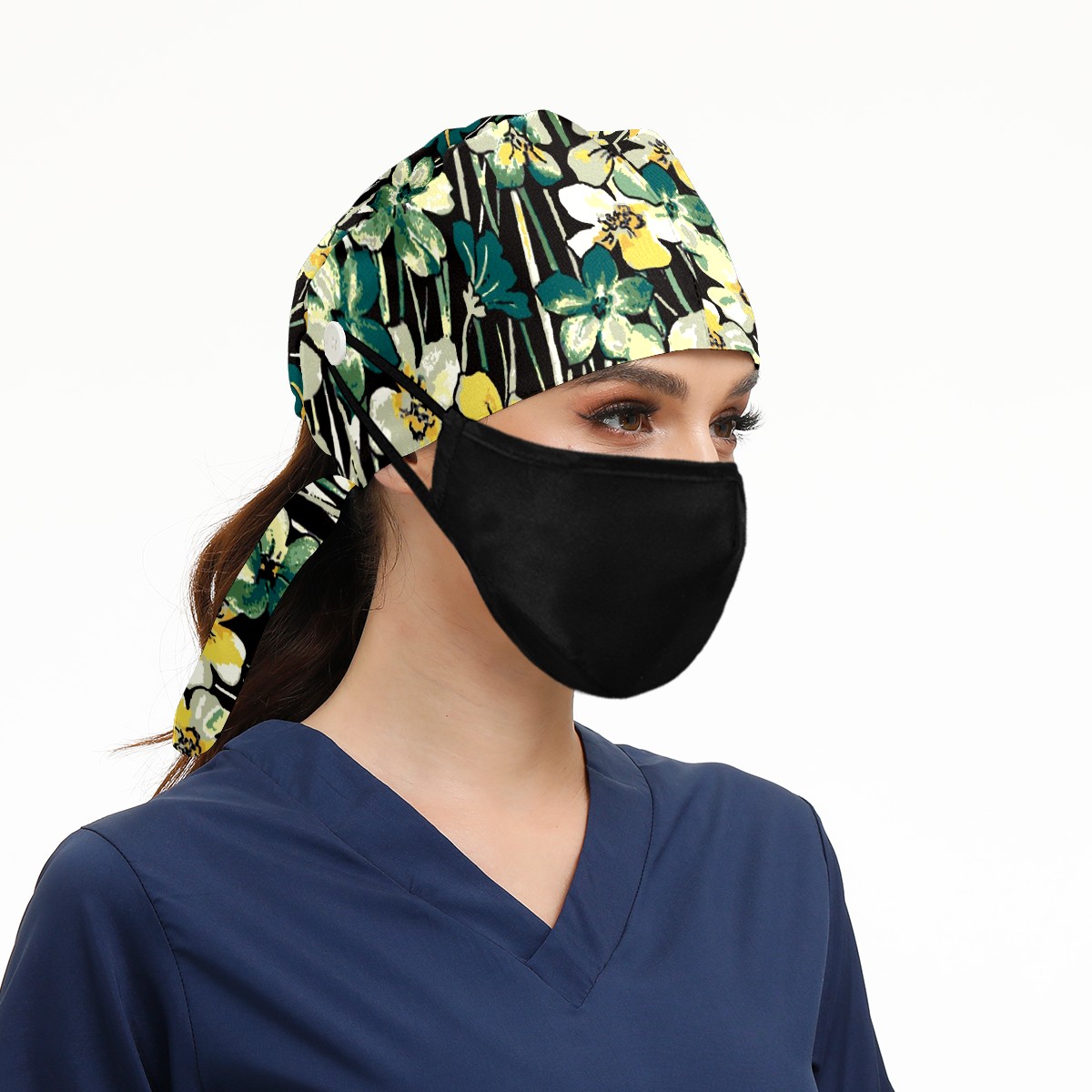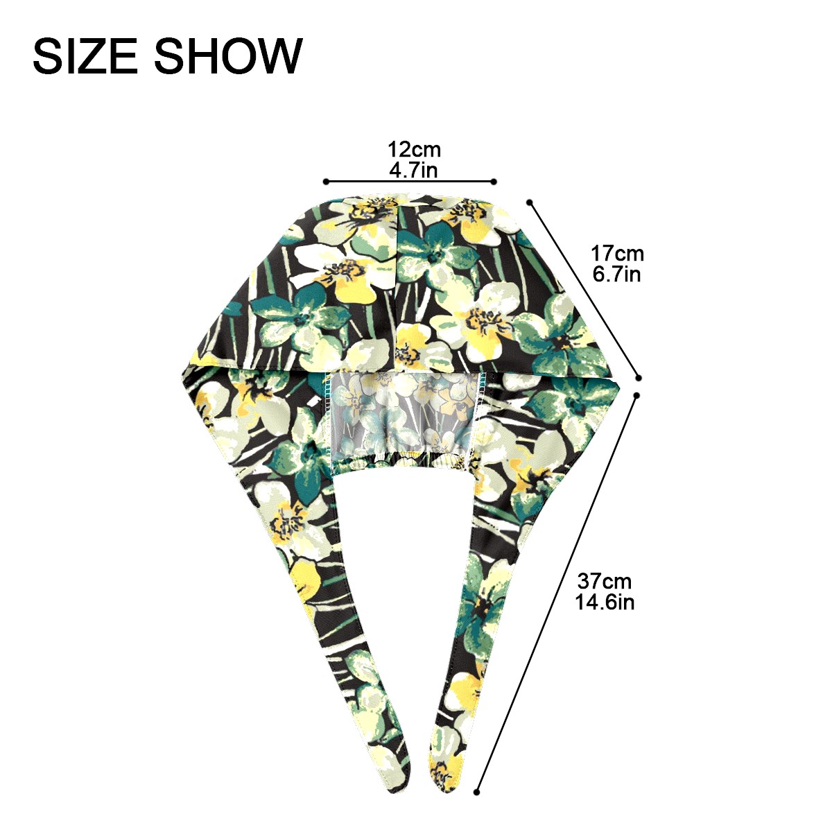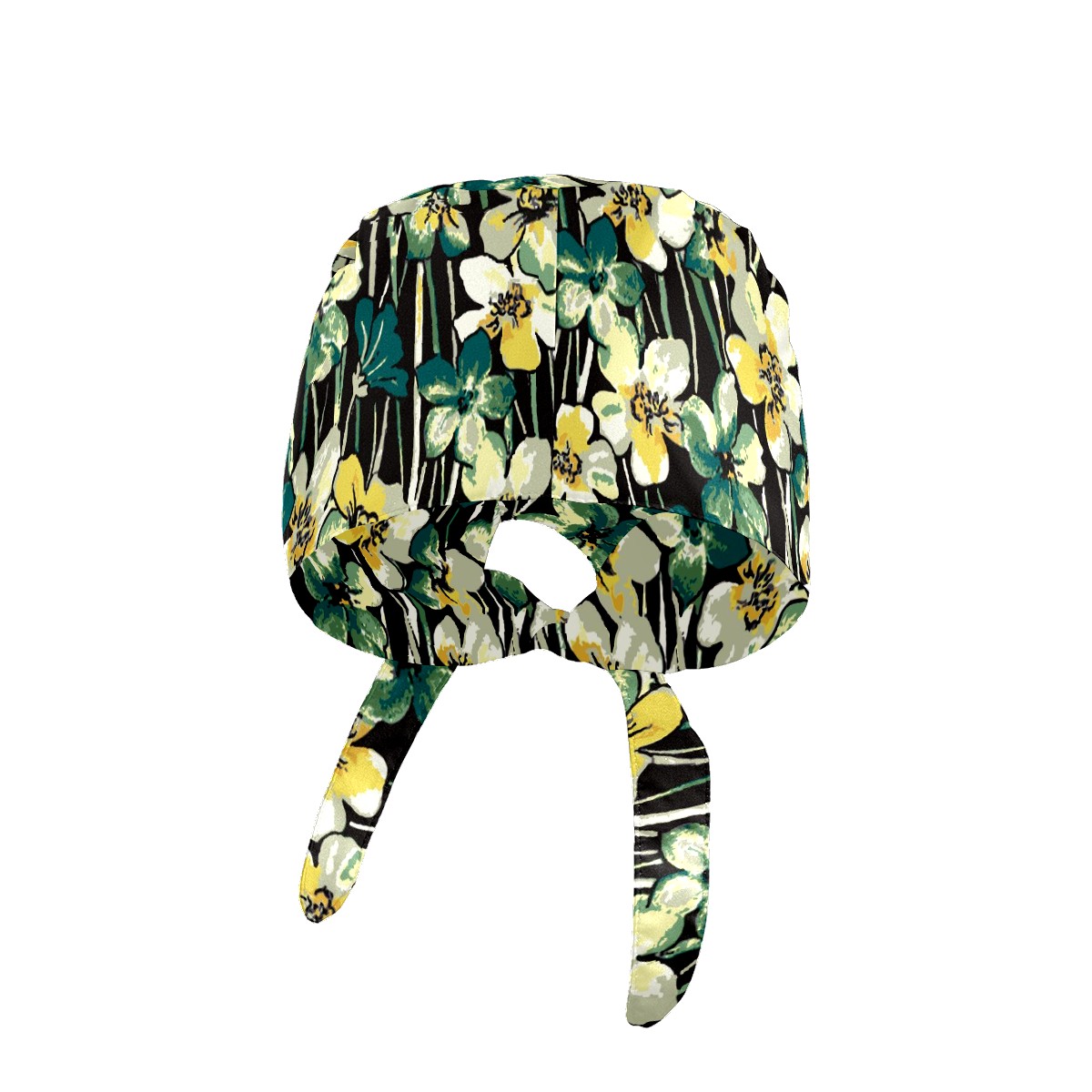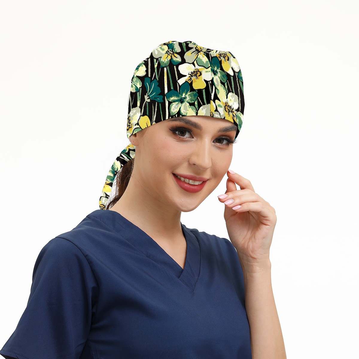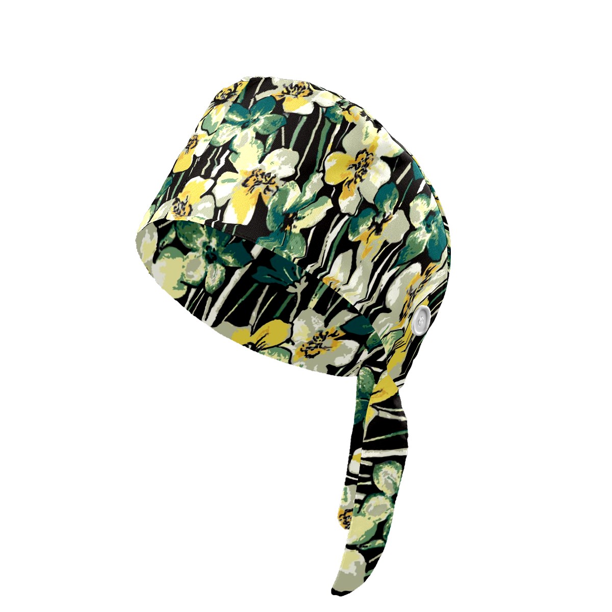 Working Caps with Button & Sweatband Satin Lined Cotton Adjustable Nurse Hats Elastic Band Scrub Cap Surgeon Hat Abstract Green Blooming Flower