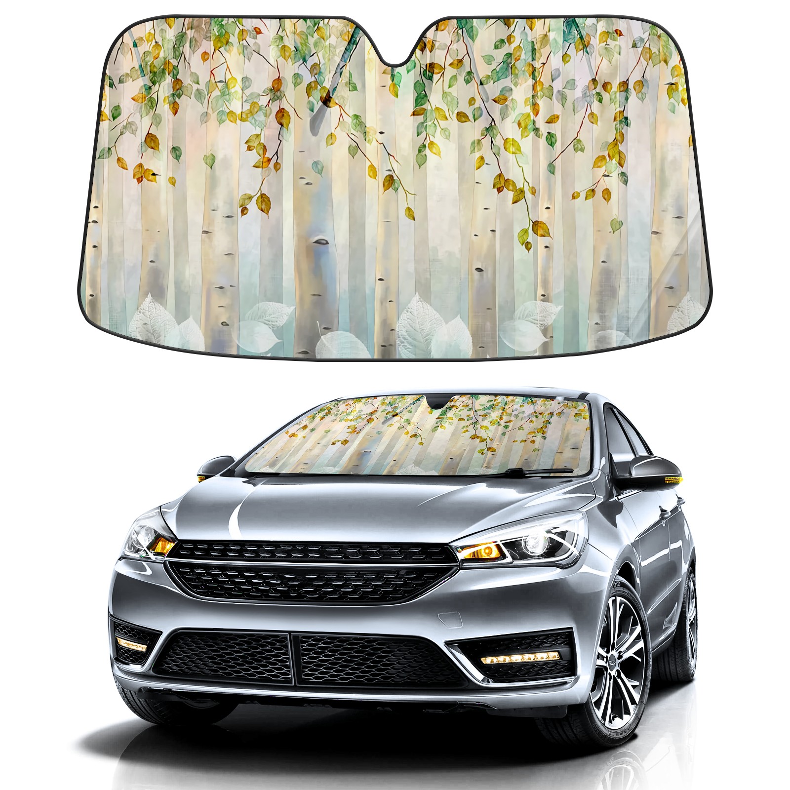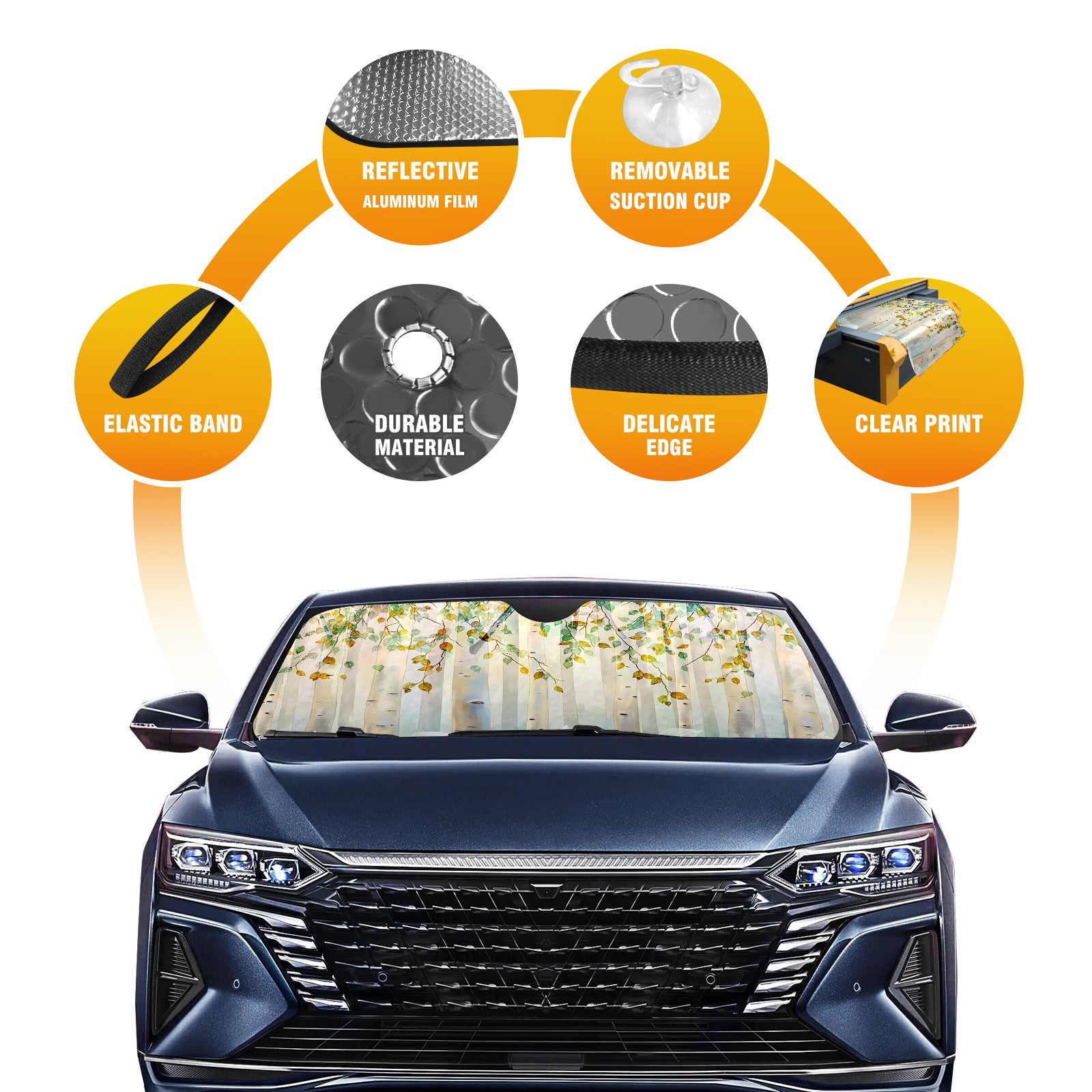 Car Windshield Sun Shade for Front Window Yellow Magnolia Branches Foldable Vehicle Windshield Car Sun Visor Covers Automotive Window Protector Car Privacy Sun Blocker