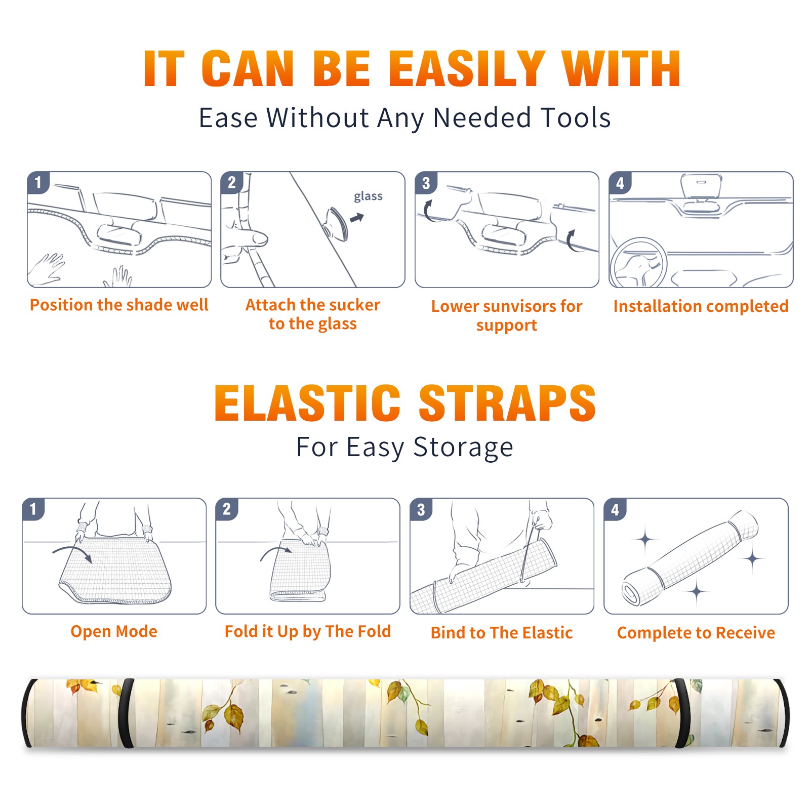 • Diameter /Size 63"L x 33.5"W</b><br> Made from excellent materials which makes it sturdy and protects the car from the sun. Easy to use and pack. Makes the interior of the car cooler.You can easily stash the sunshade in the storage bag or store long term.It open and closes easy. Also the leather storage bag is durable and easy to put the umbrella back into.This windshield sunshade provides complete coverage and keeps your car interior cool under direct sun. It is easy to open and position under the windshield and around the rear-view mirror. Makes Your Car Easy To Identify, Perfect For Finding Your Car In Crowded Parking Lots And Garages.Great Choice: It Is A Great Gift For Dad, Boyfriend, Brother, Brother And Uncle, Friends, Classmates, Family And So On.<br> Notice:</b><br> Due To Difference Computer Monitors, The Color Maybe Slightly Different From Picture. As Different Measurement Methods, Measurement Data Will Float Within 2%.I Hope You Understand.<br> If You Have Any Question About The Item Please Do Not Hesitate To Contact Us Immediately And We Will Give You A Satisfactory Reply Within 24 Hours.