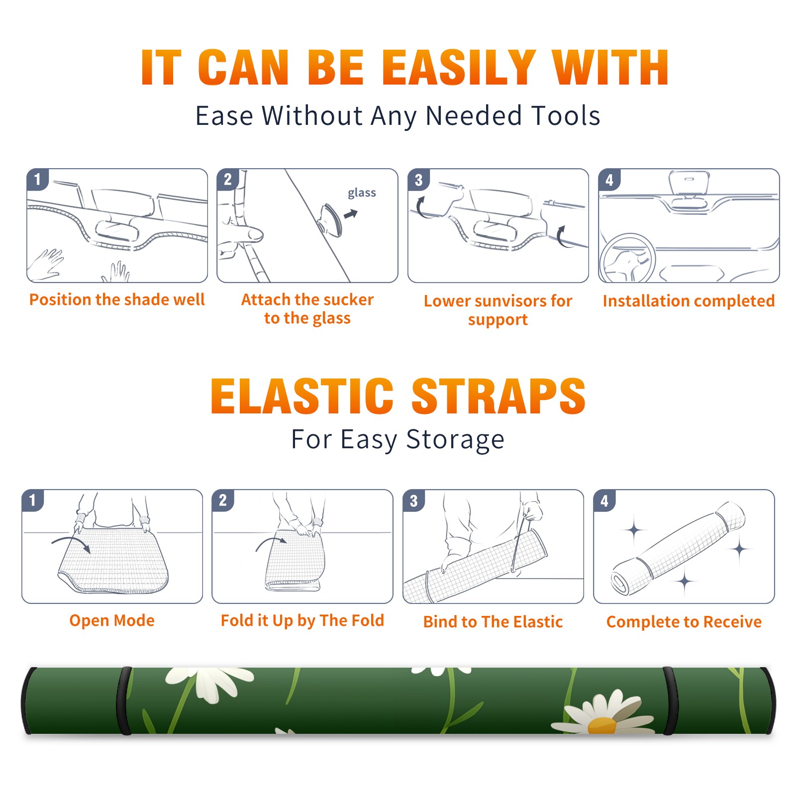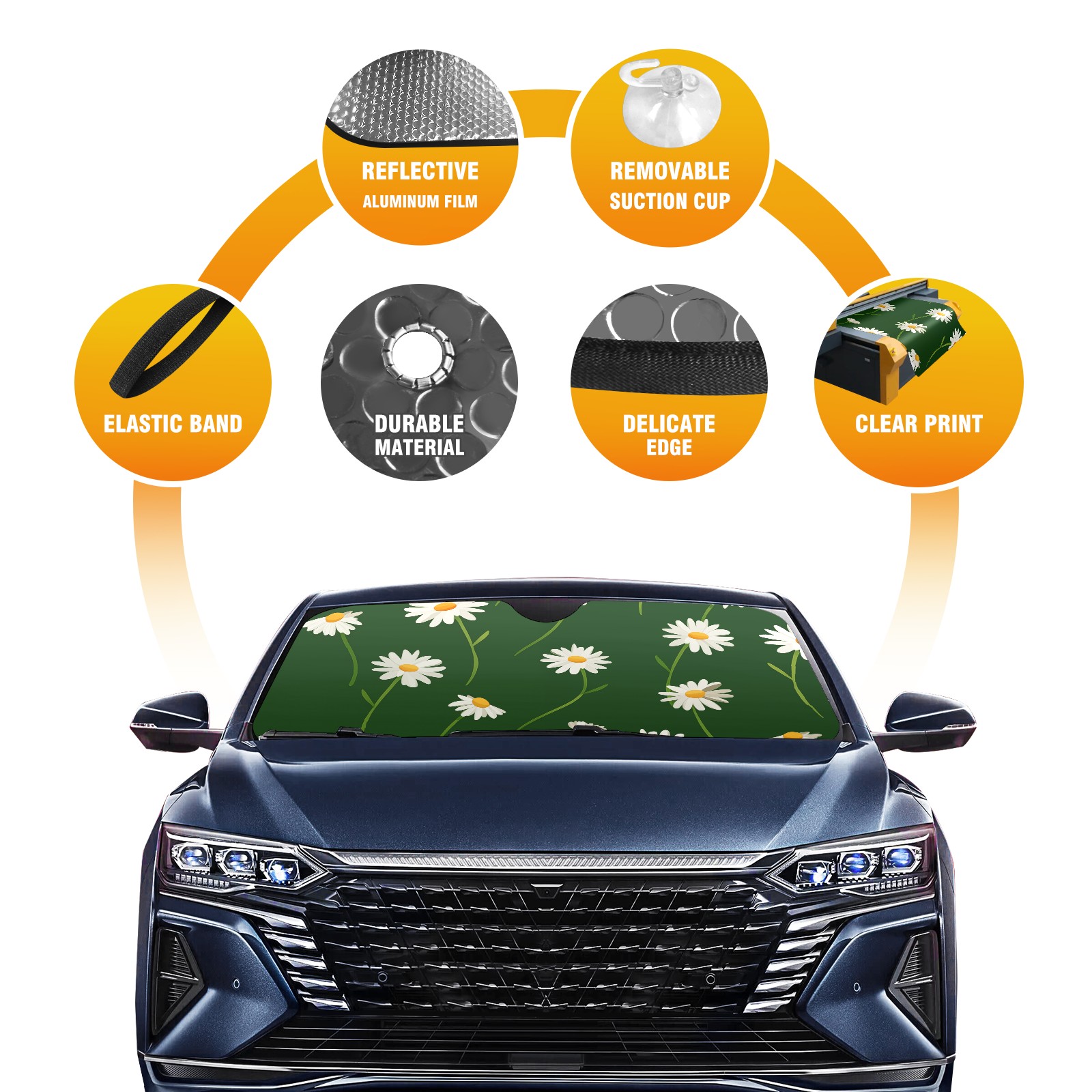 Car Windshield Sun Shade for Front Window Daisy Foldable Vehicle Windshield Car Sun Visor Covers Automotive Window Protector Car Privacy Sun Blocker