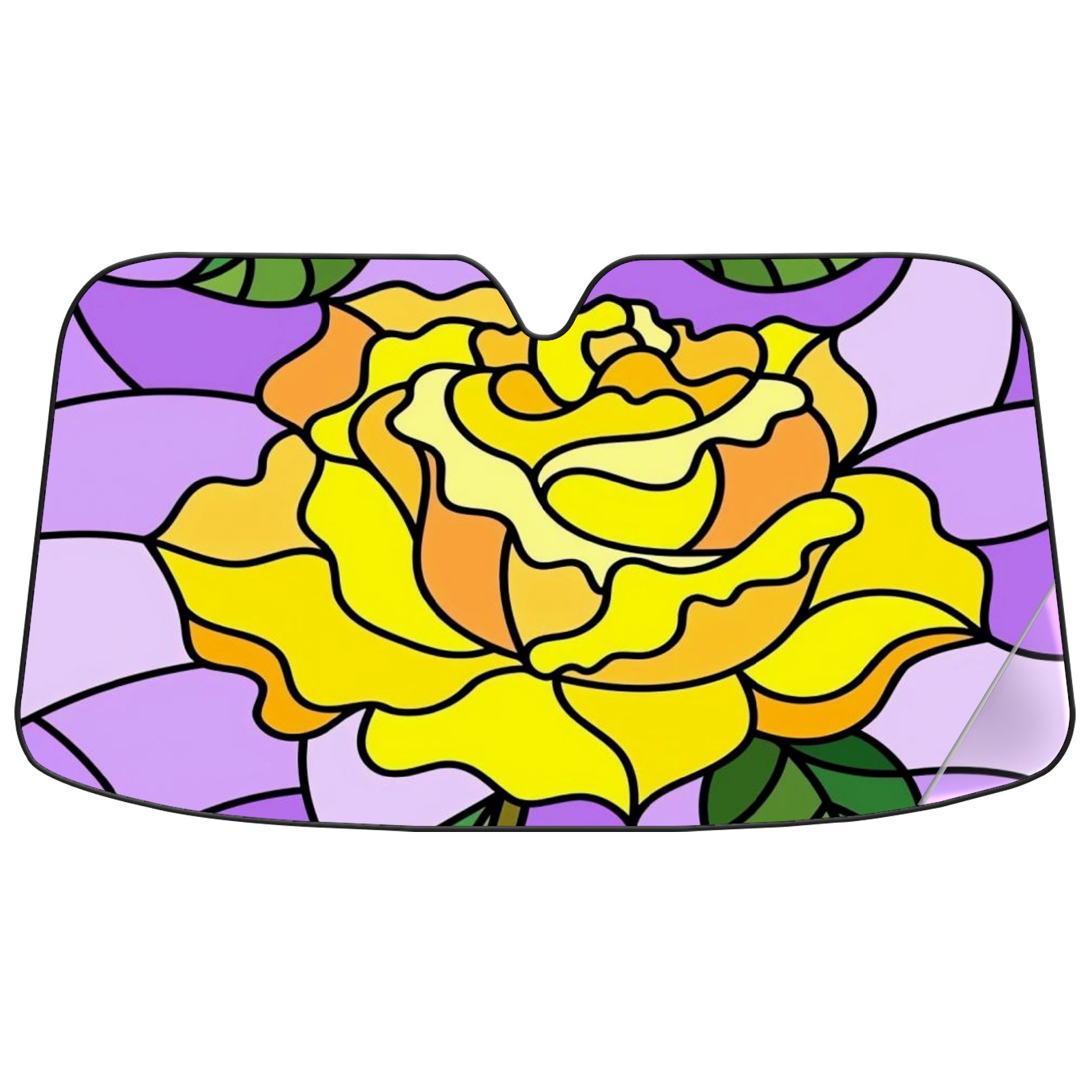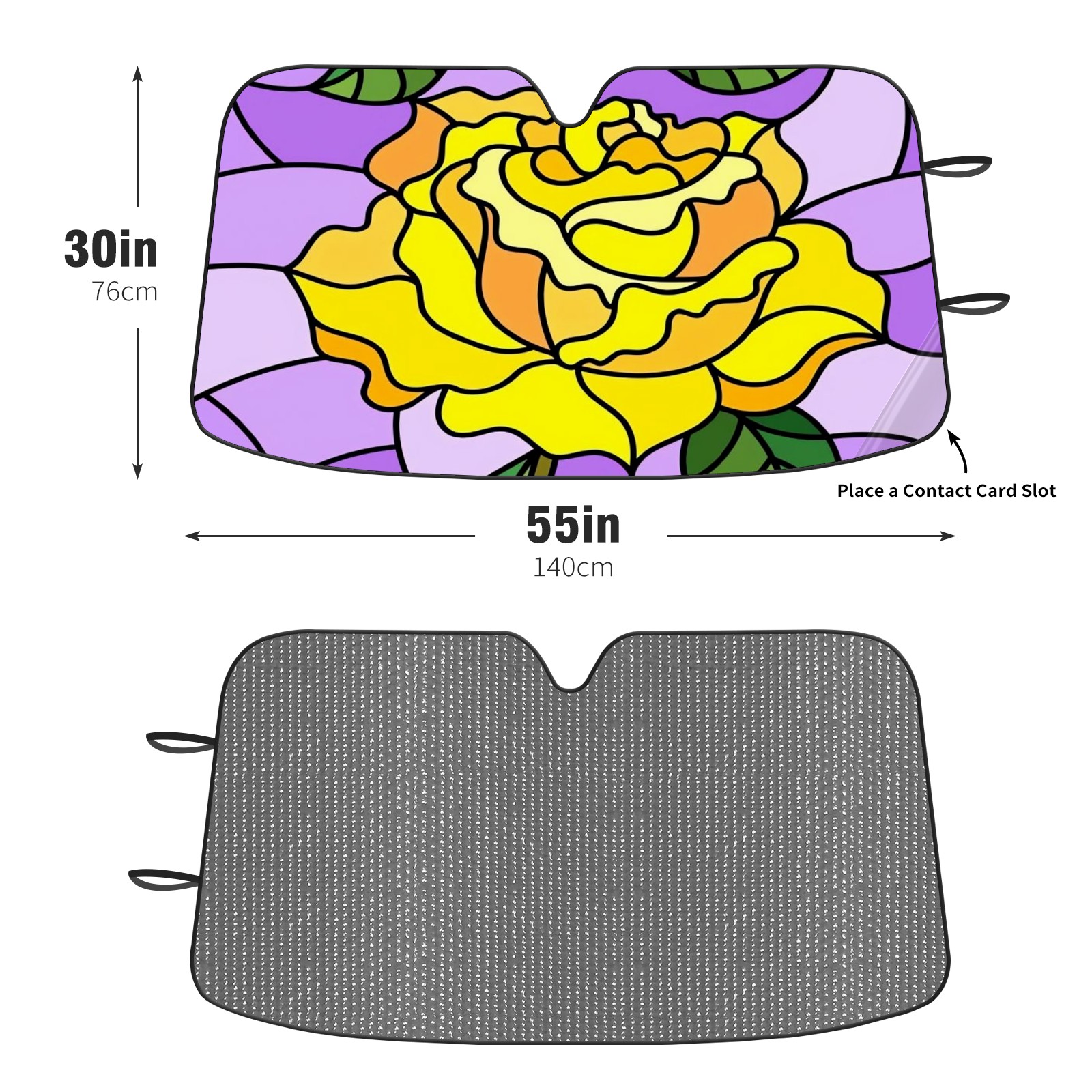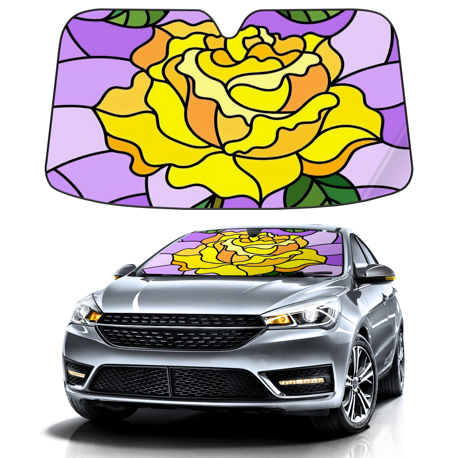 Car Windshield Sun Shade for Front Window Floral Window Stained Glass Foldable Vehicle Windshield Car Sun Visor Covers Automotive Window Protector Car Privacy Sun Blocker