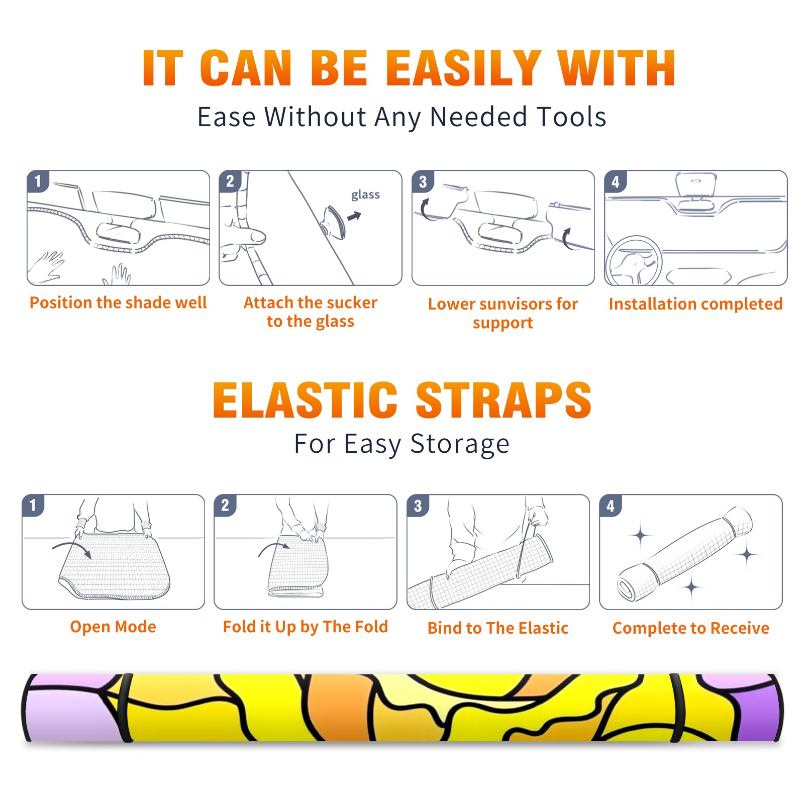 • Diameter /Size 63"L x 33.5"W</b><br> Made from excellent materials which makes it sturdy and protects the car from the sun. Easy to use and pack. Makes the interior of the car cooler.You can easily stash the sunshade in the storage bag or store long term.It open and closes easy. Also the leather storage bag is durable and easy to put the umbrella back into.This windshield sunshade provides complete coverage and keeps your car interior cool under direct sun. It is easy to open and position under the windshield and around the rear-view mirror. Makes Your Car Easy To Identify, Perfect For Finding Your Car In Crowded Parking Lots And Garages.Great Choice: It Is A Great Gift For Dad, Boyfriend, Brother, Brother And Uncle, Friends, Classmates, Family And So On.<br> Notice:</b><br> Due To Difference Computer Monitors, The Color Maybe Slightly Different From Picture. As Different Measurement Methods, Measurement Data Will Float Within 2%.I Hope You Understand.<br> If You Have Any Question About The Item Please Do Not Hesitate To Contact Us Immediately And We Will Give You A Satisfactory Reply Within 24 Hours.