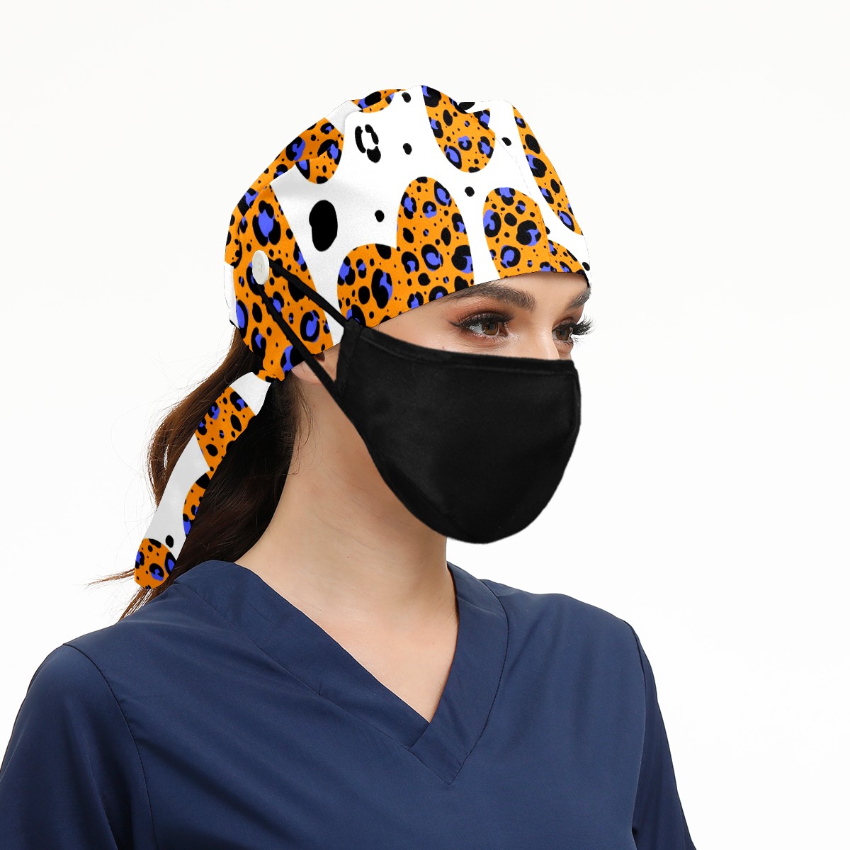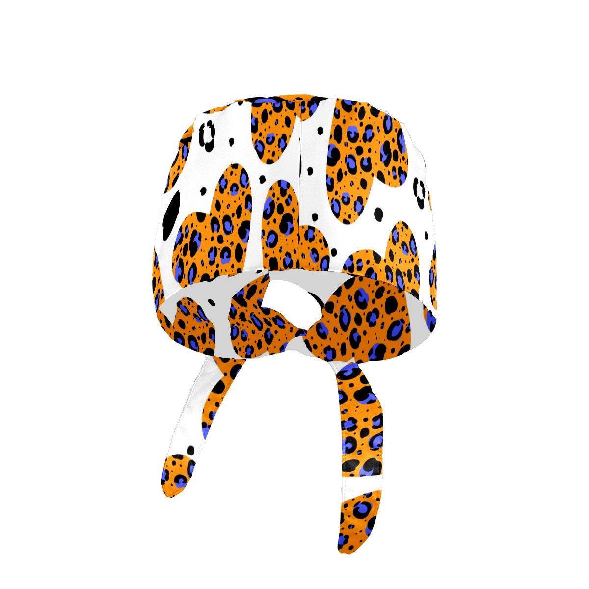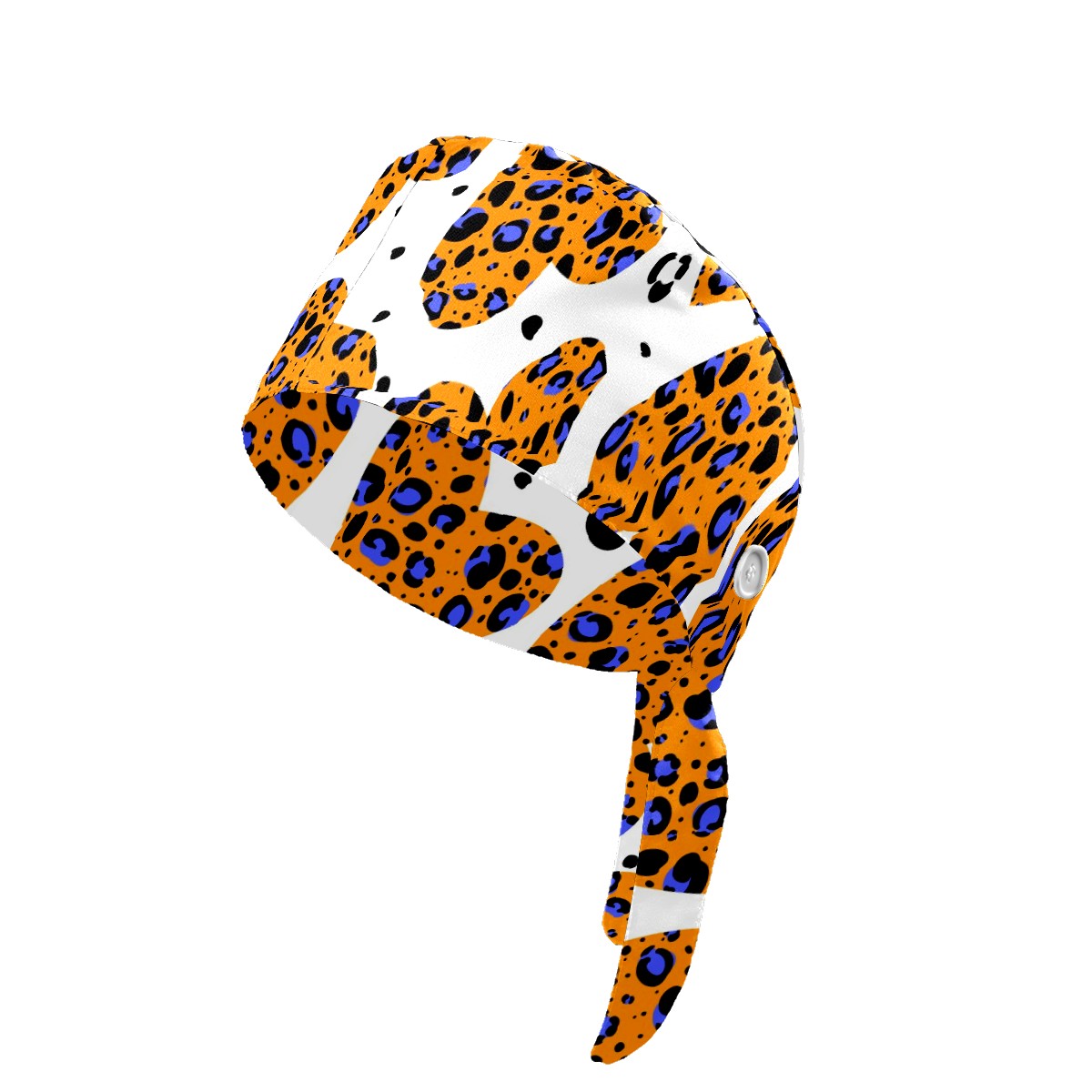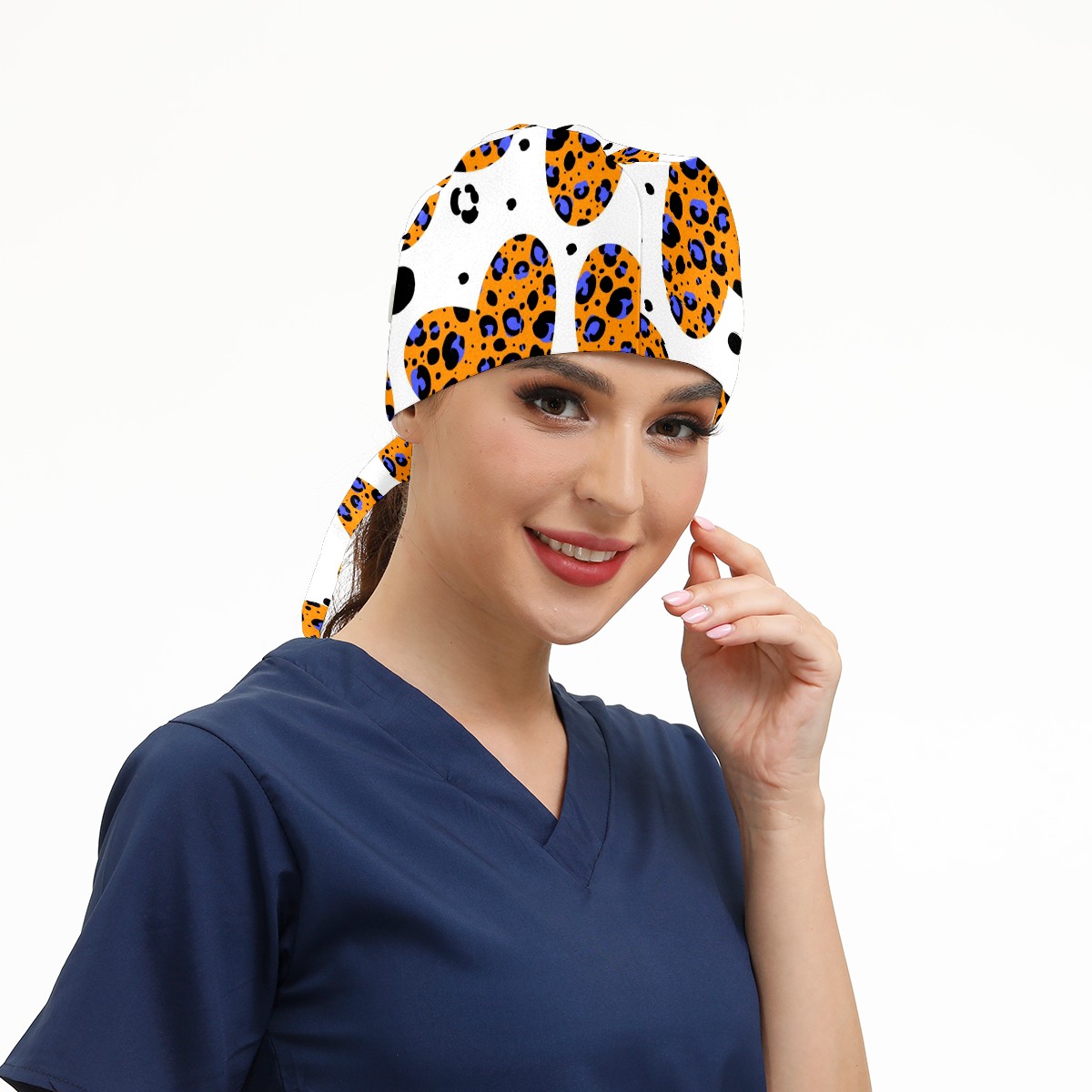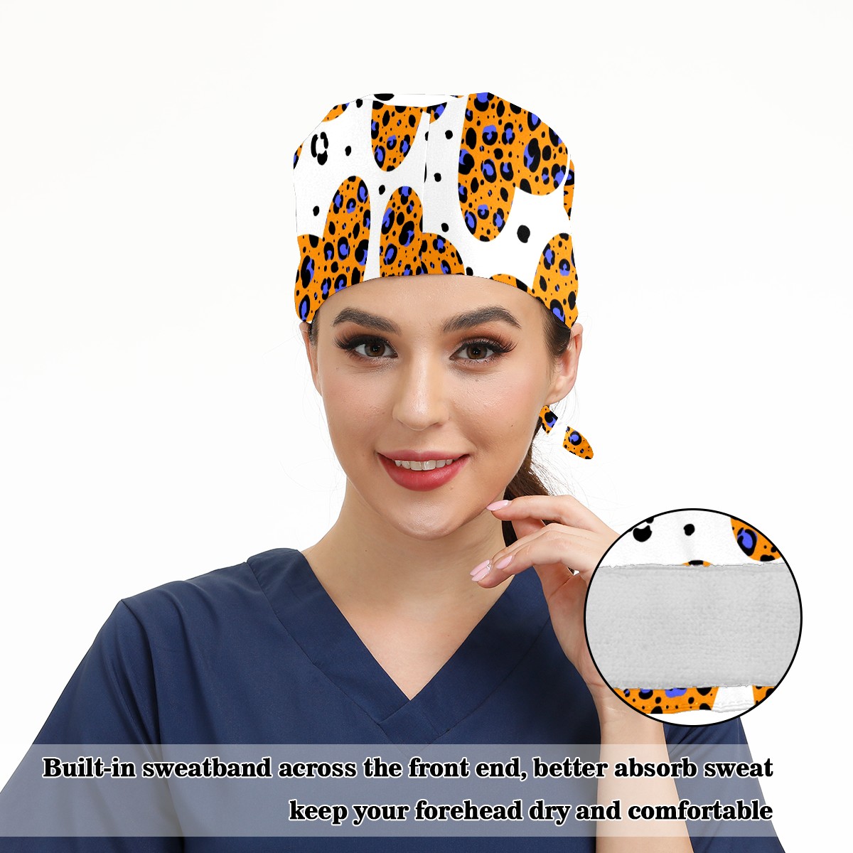 Working Caps with Button & Sweatband Satin Lined Cotton Adjustable Nurse Hats Elastic Band Scrub Cap Surgeon Hat Abstract Hearts And Leopard Print
