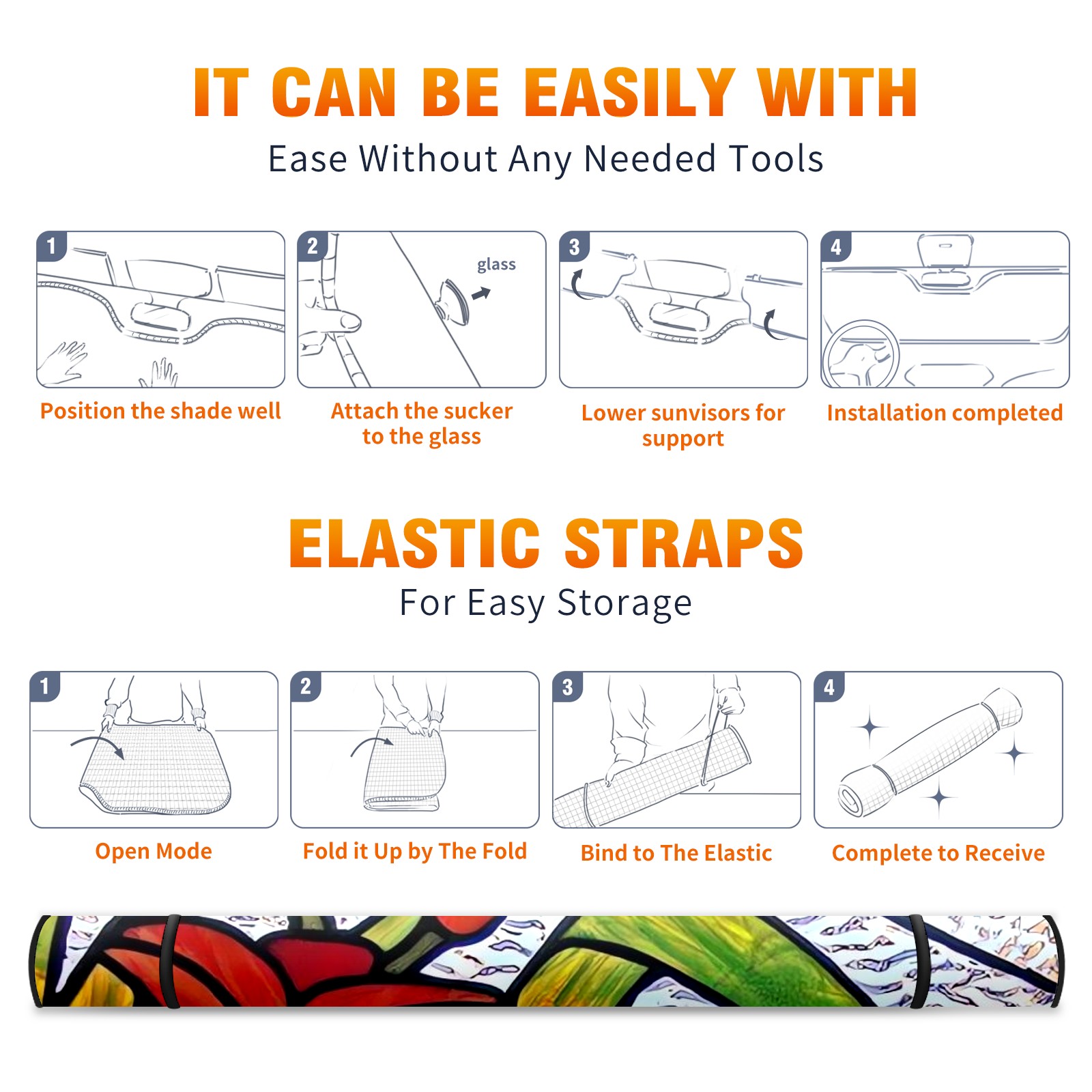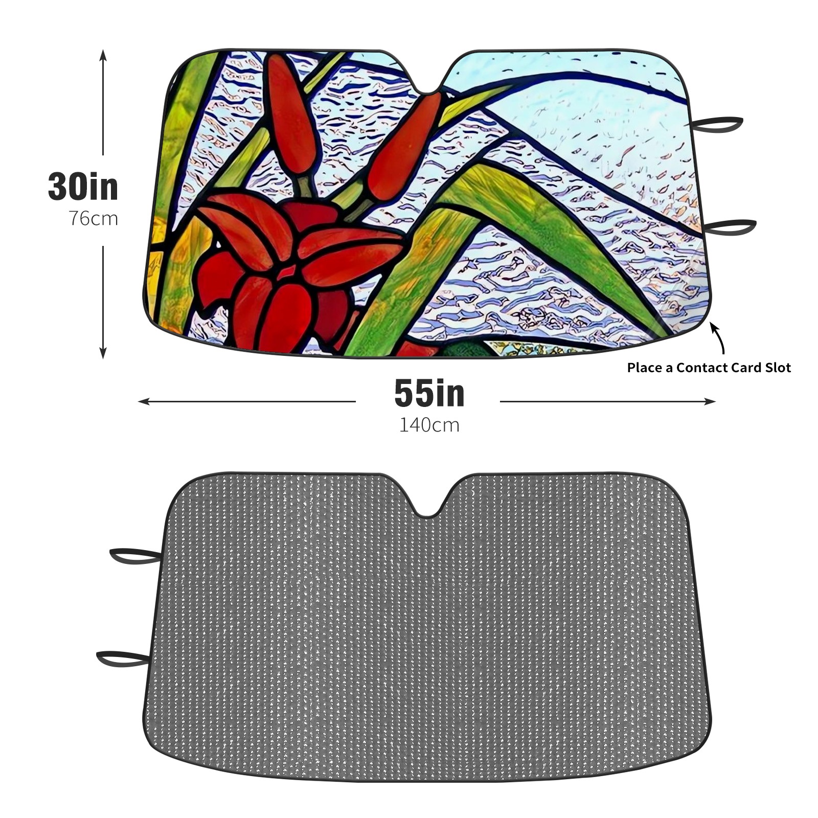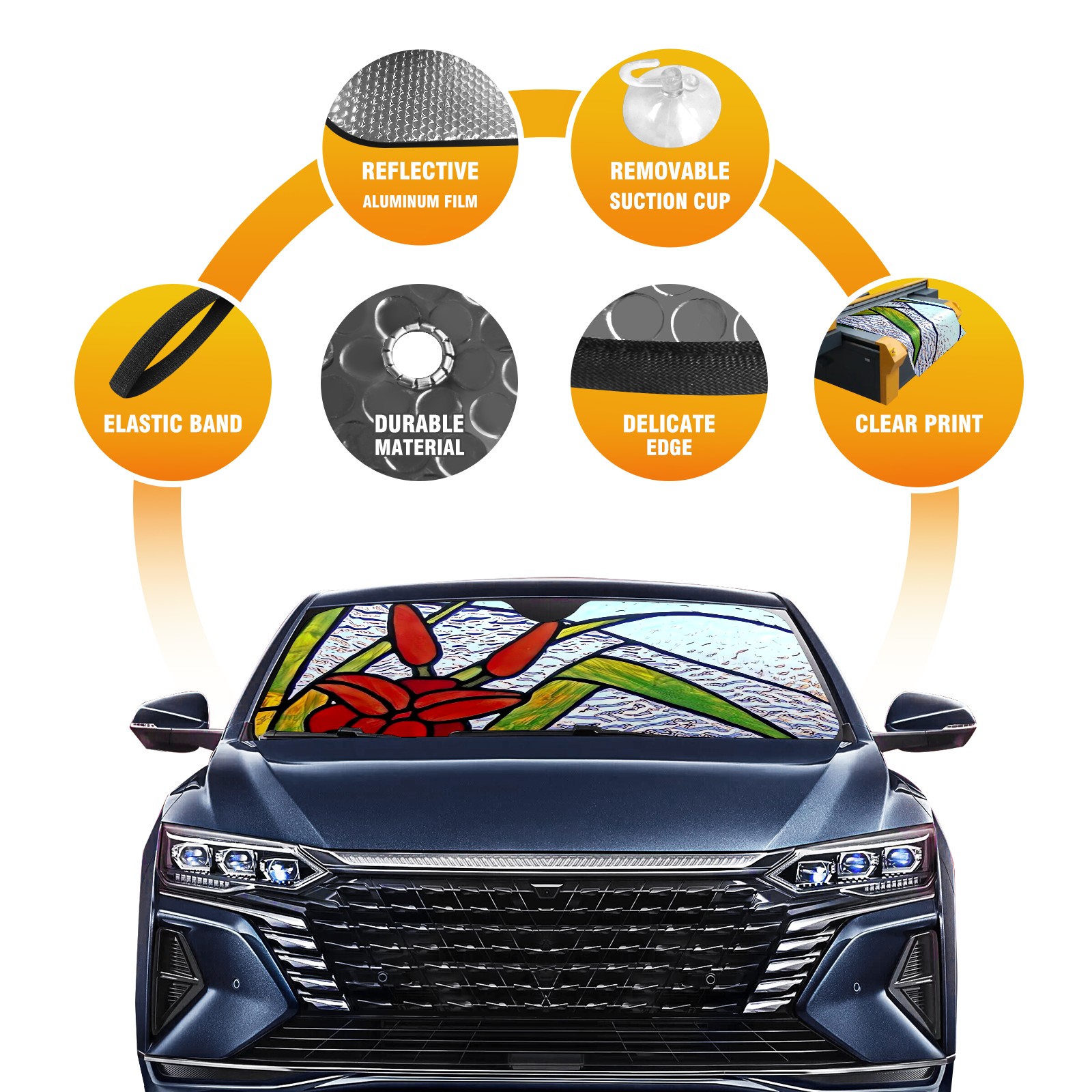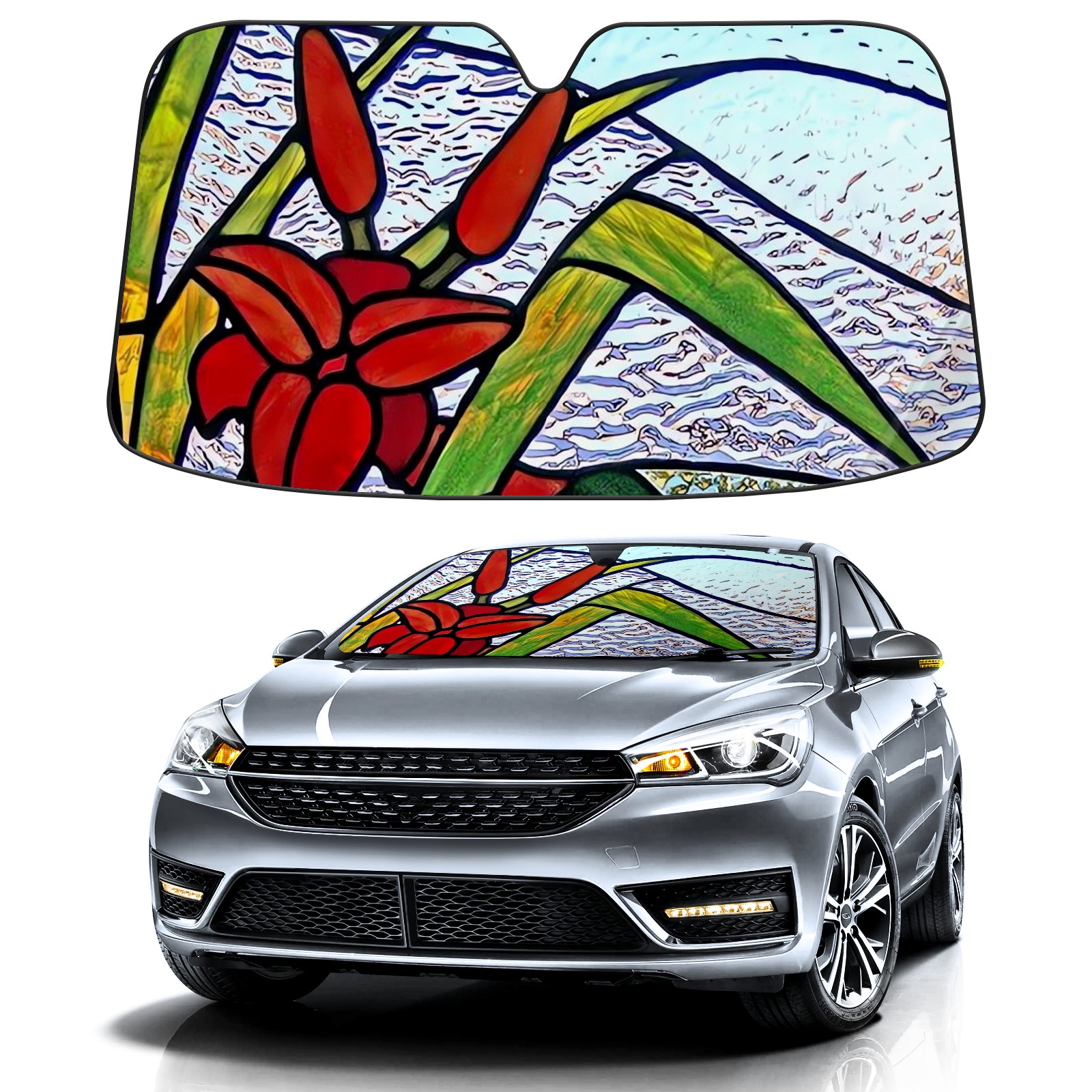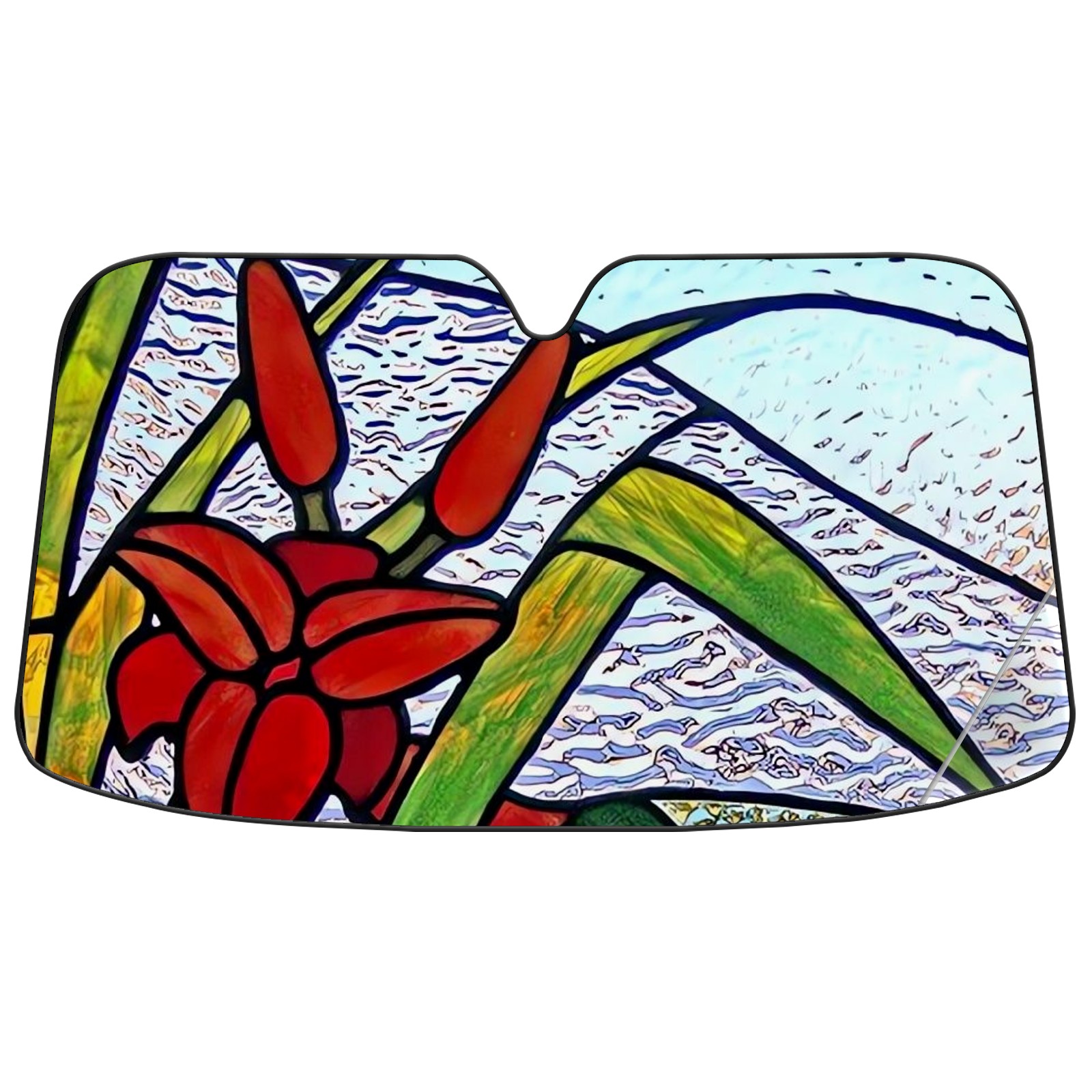 Car Windshield Sun Shade for Front Window Stained Glass Foldable Vehicle Windshield Car Sun Visor Covers Automotive Window Protector Car Privacy Sun Blocker