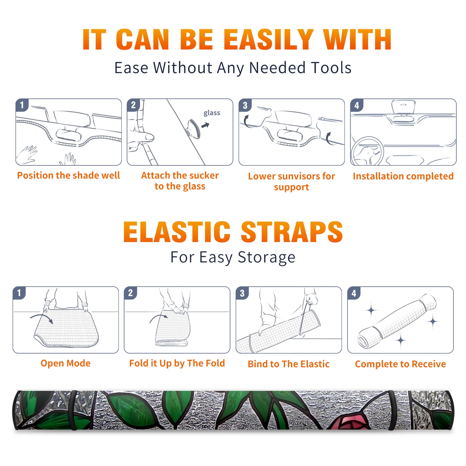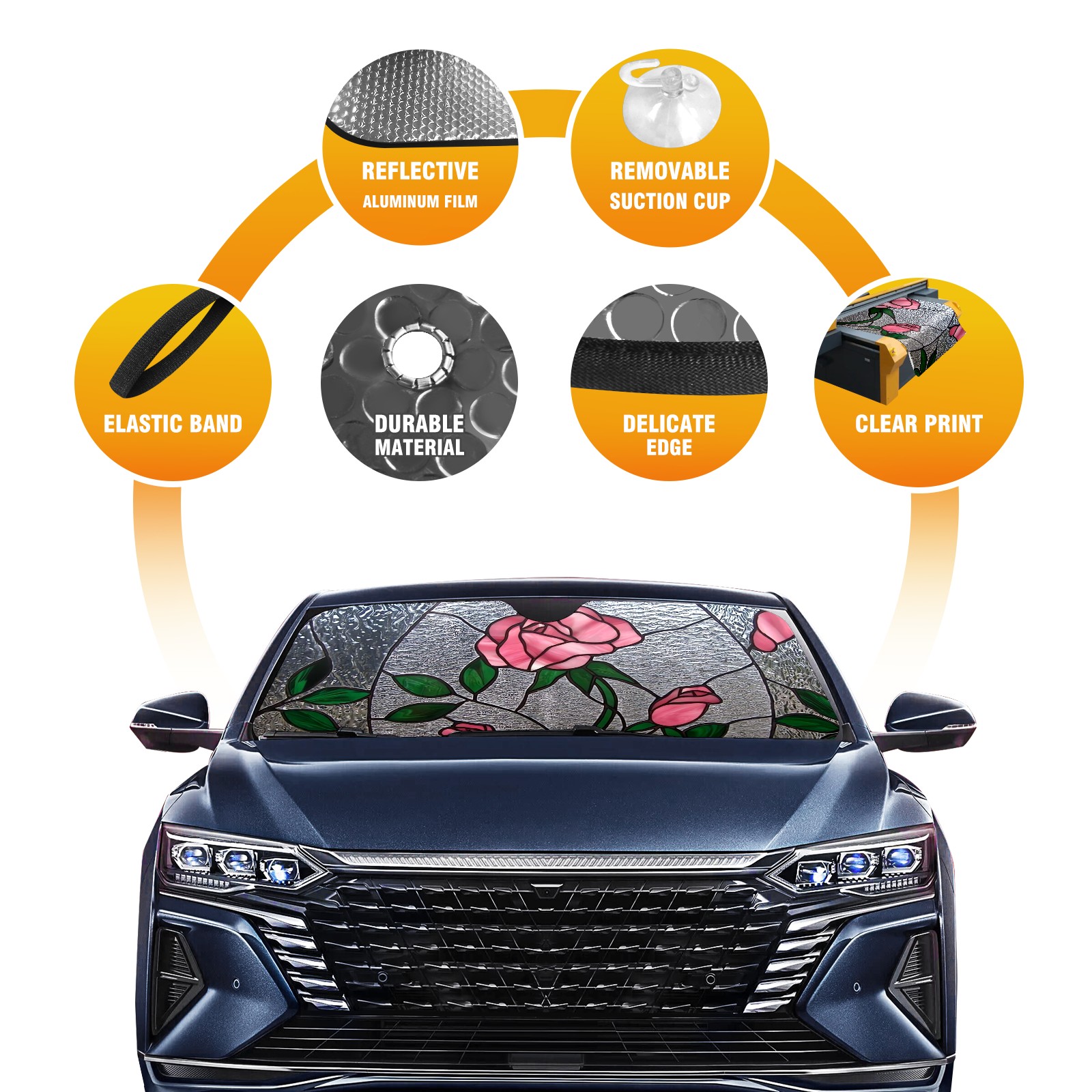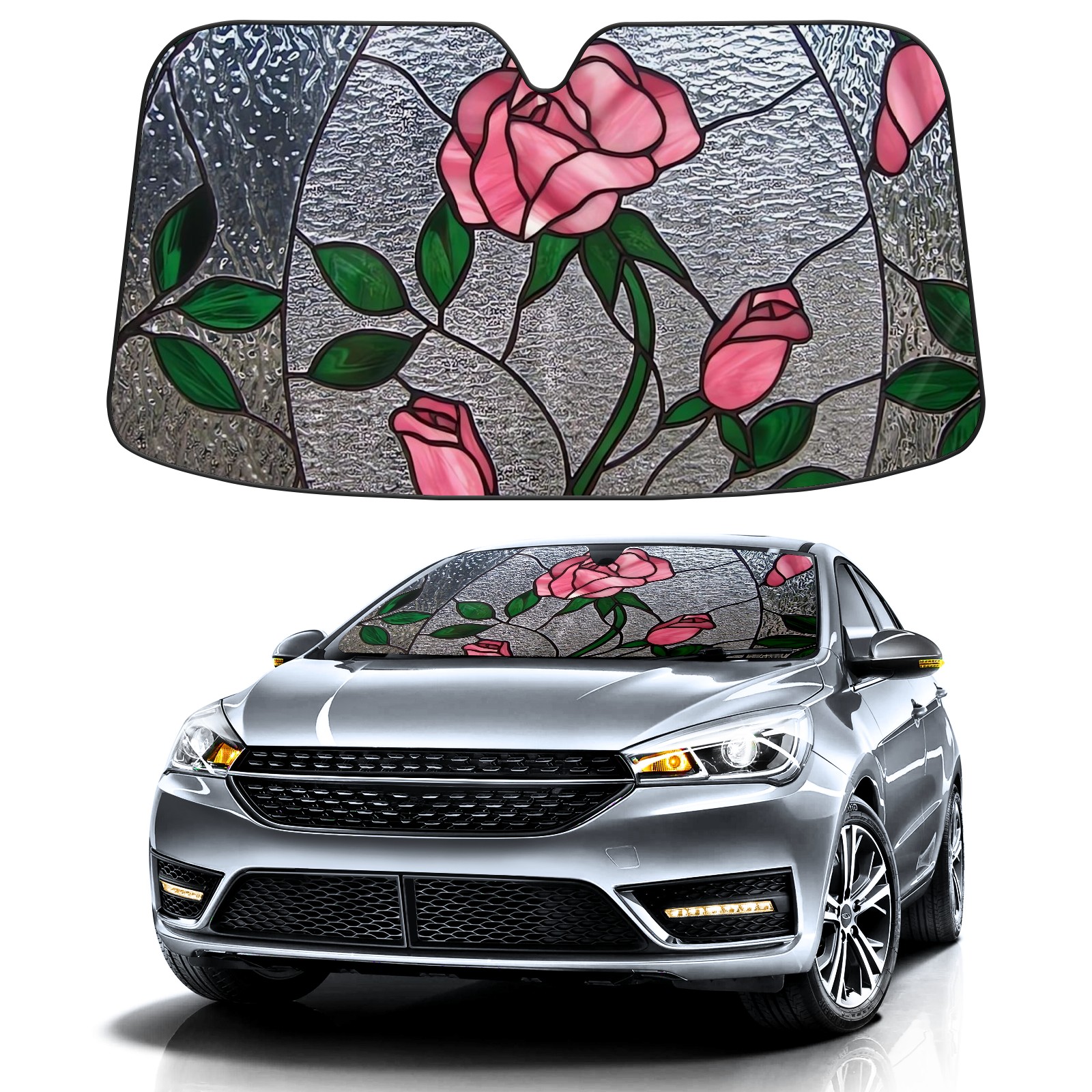 Car Windshield Sun Shade for Front Window Stained Glass Garden Foldable Vehicle Windshield Car Sun Visor Covers Automotive Window Protector Car Privacy Sun Blocker