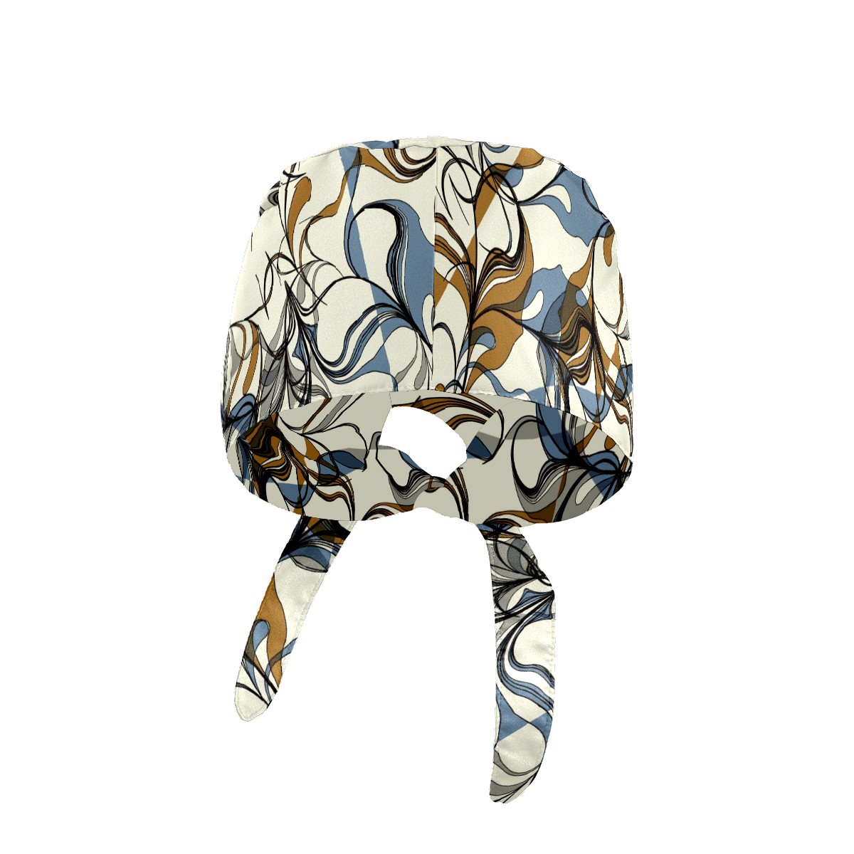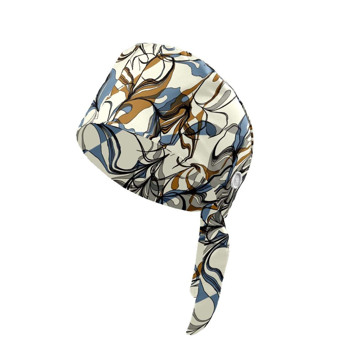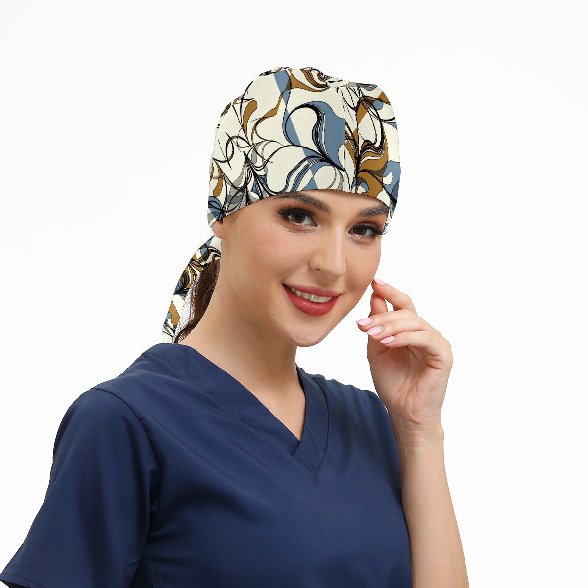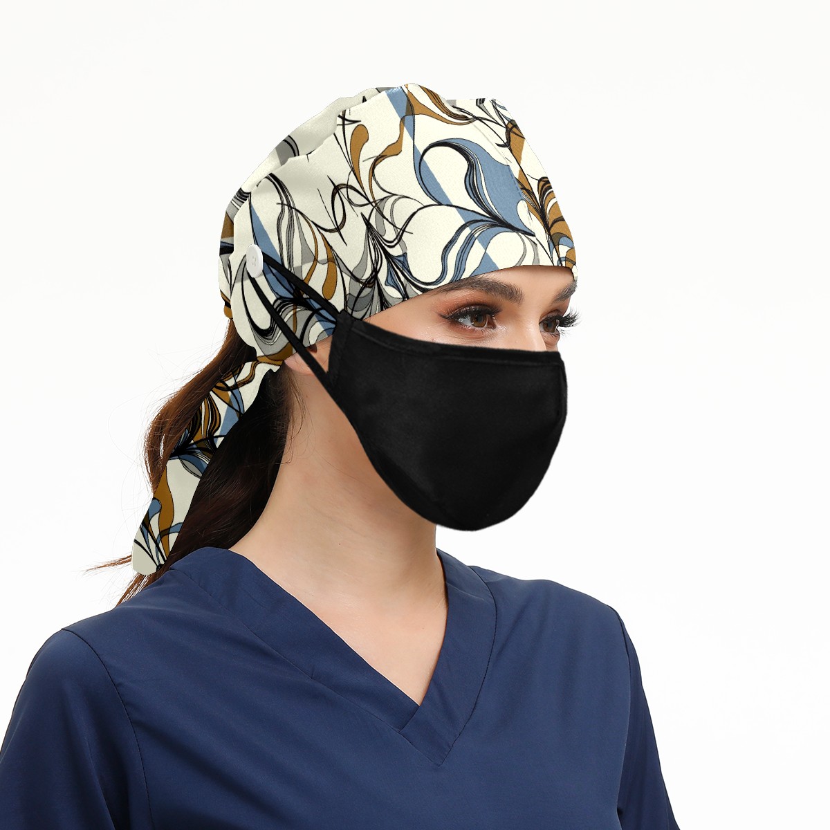 Working Caps with Button & Sweatband Satin Lined Cotton Adjustable Nurse Hats Elastic Band Scrub Cap Surgeon Hat Abstract Flower Leaves