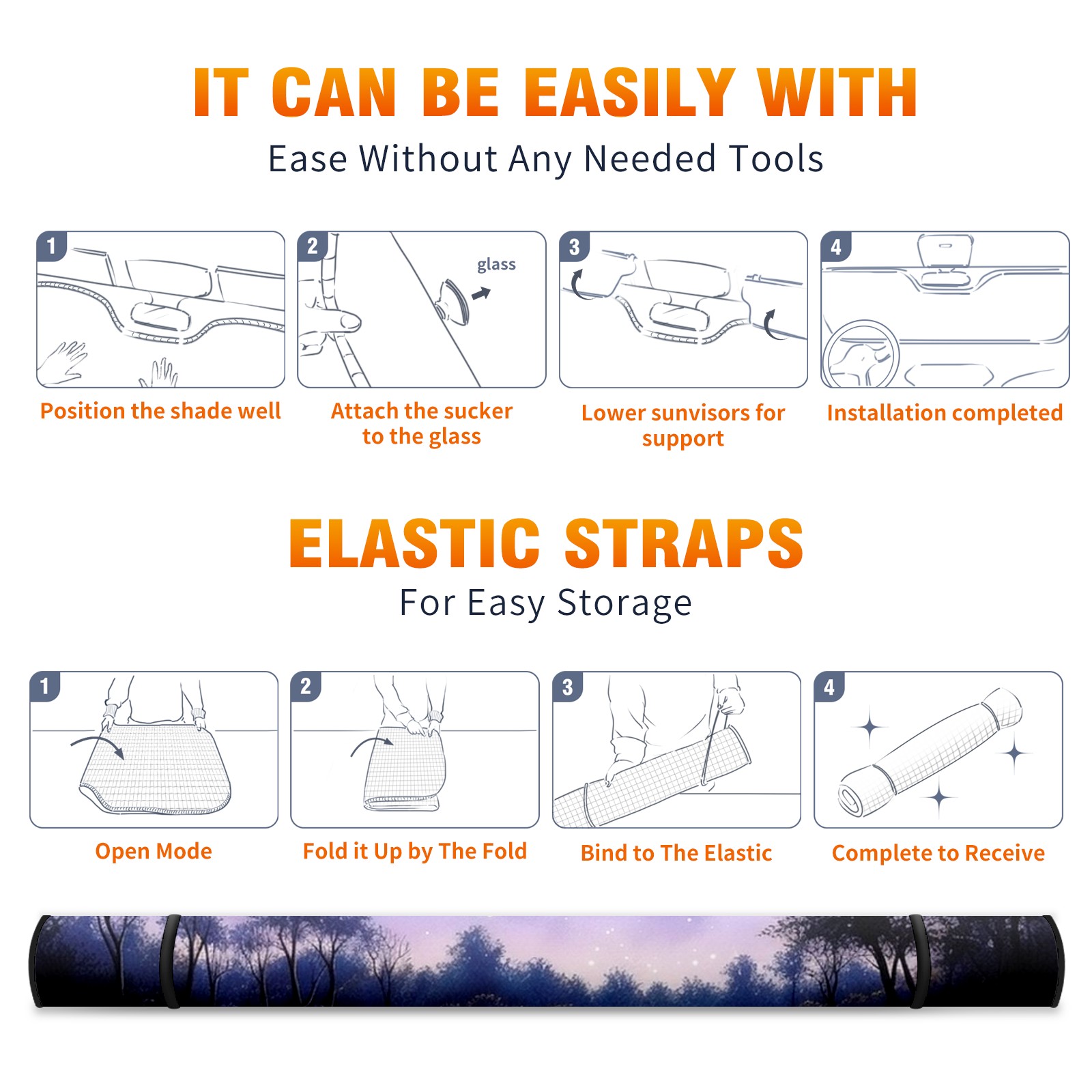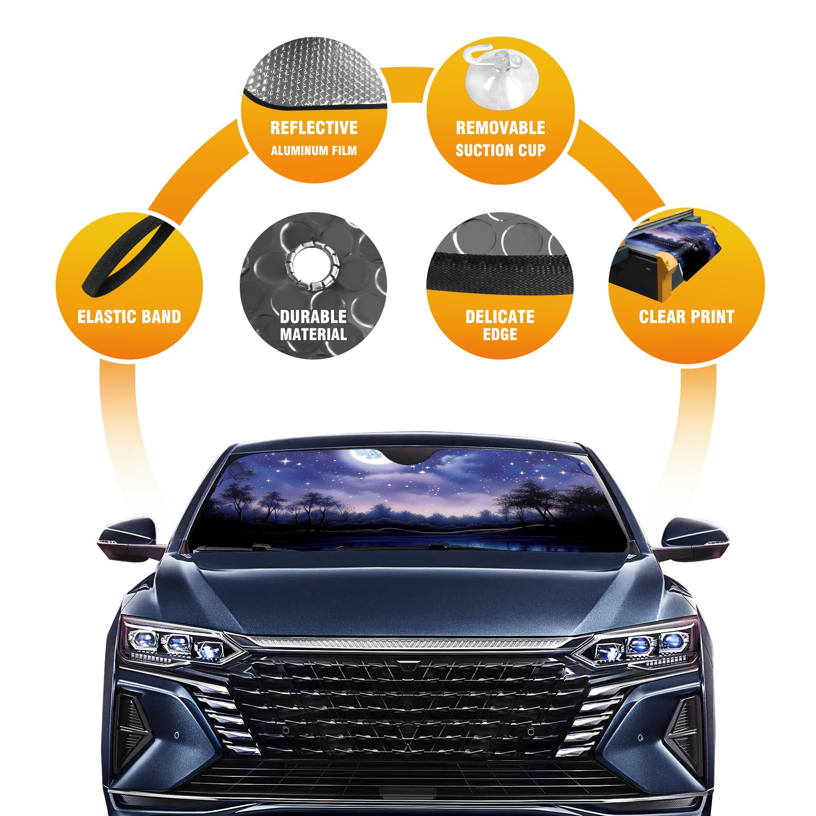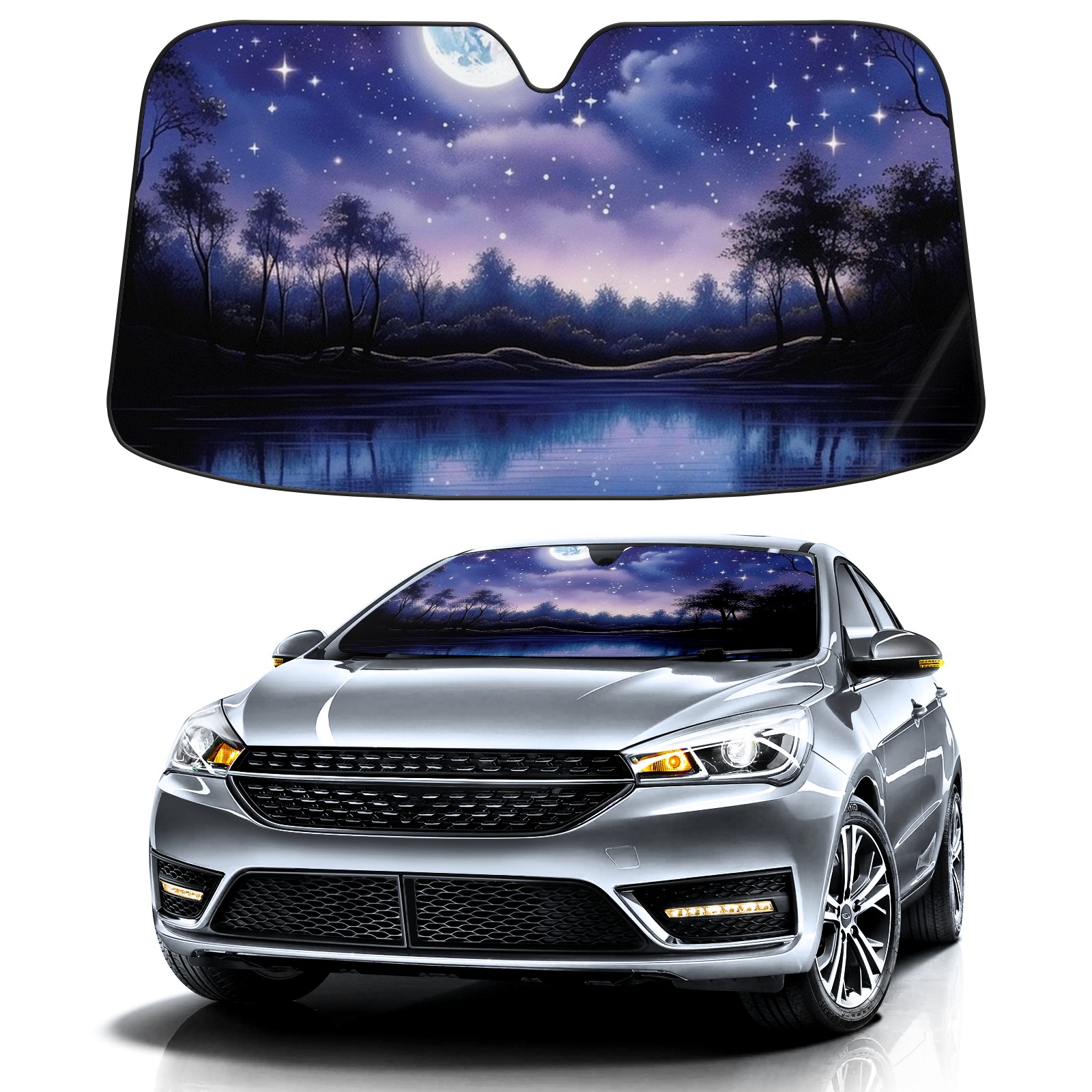 Car Windshield Sun Shade for Front Window Night Sky Stars Moon Lake Foldable Vehicle Windshield Car Sun Visor Covers Automotive Window Protector Car Privacy Sun Blocker