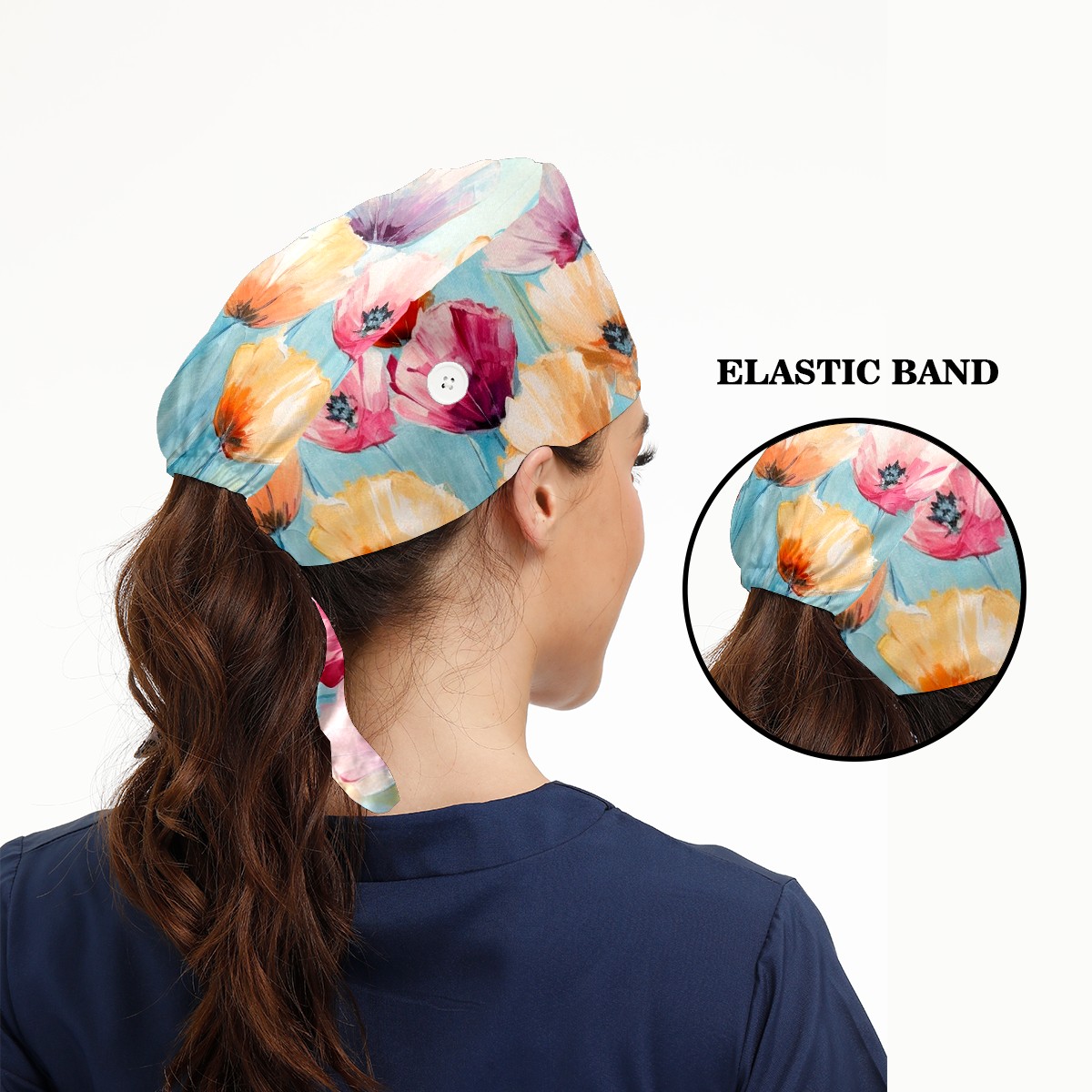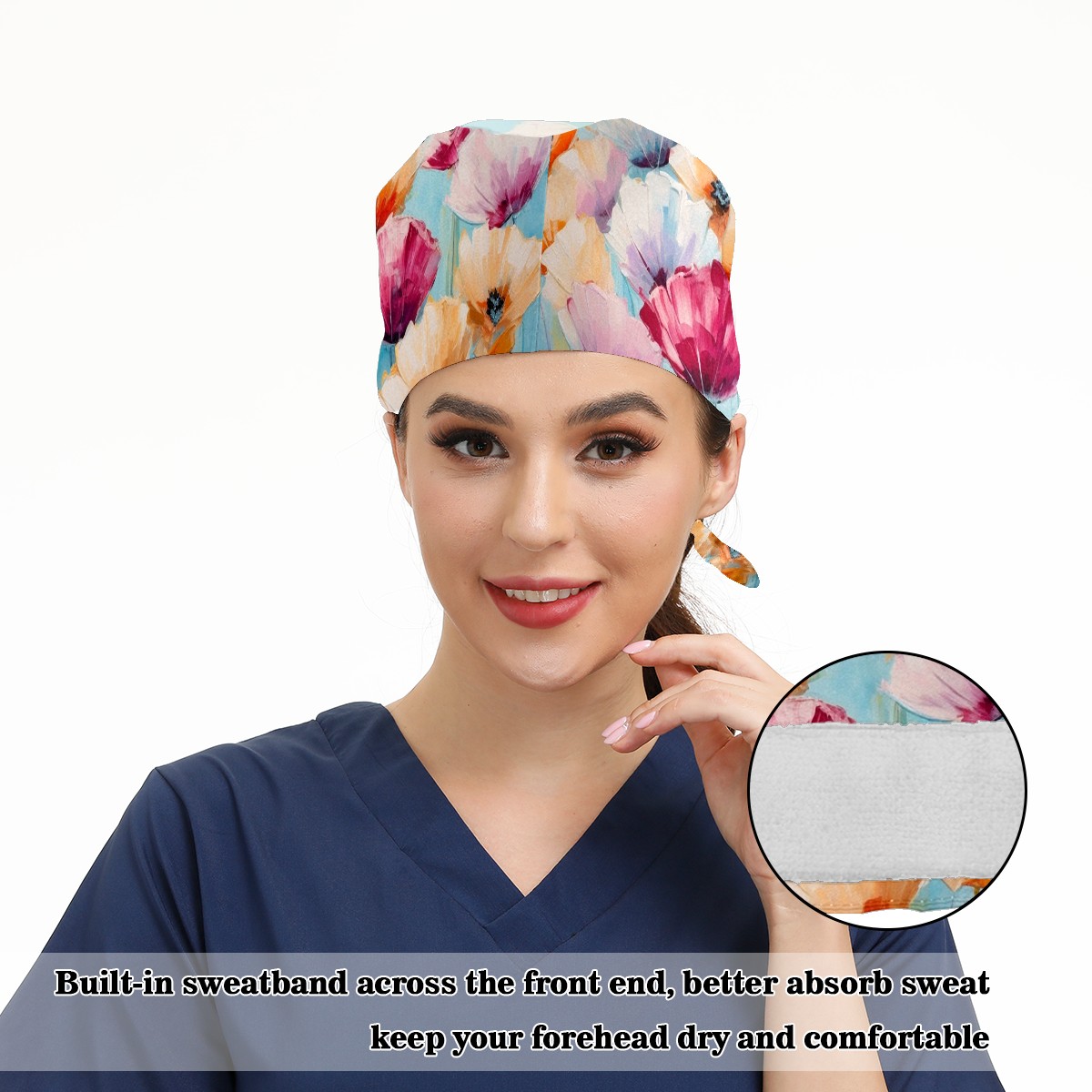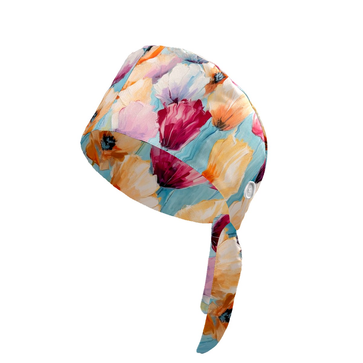 Working Caps with Button & Sweatband Satin Lined Cotton Adjustable Nurse Hats Elastic Band Scrub Cap Surgeon Hat Abstract Colorful Flowers