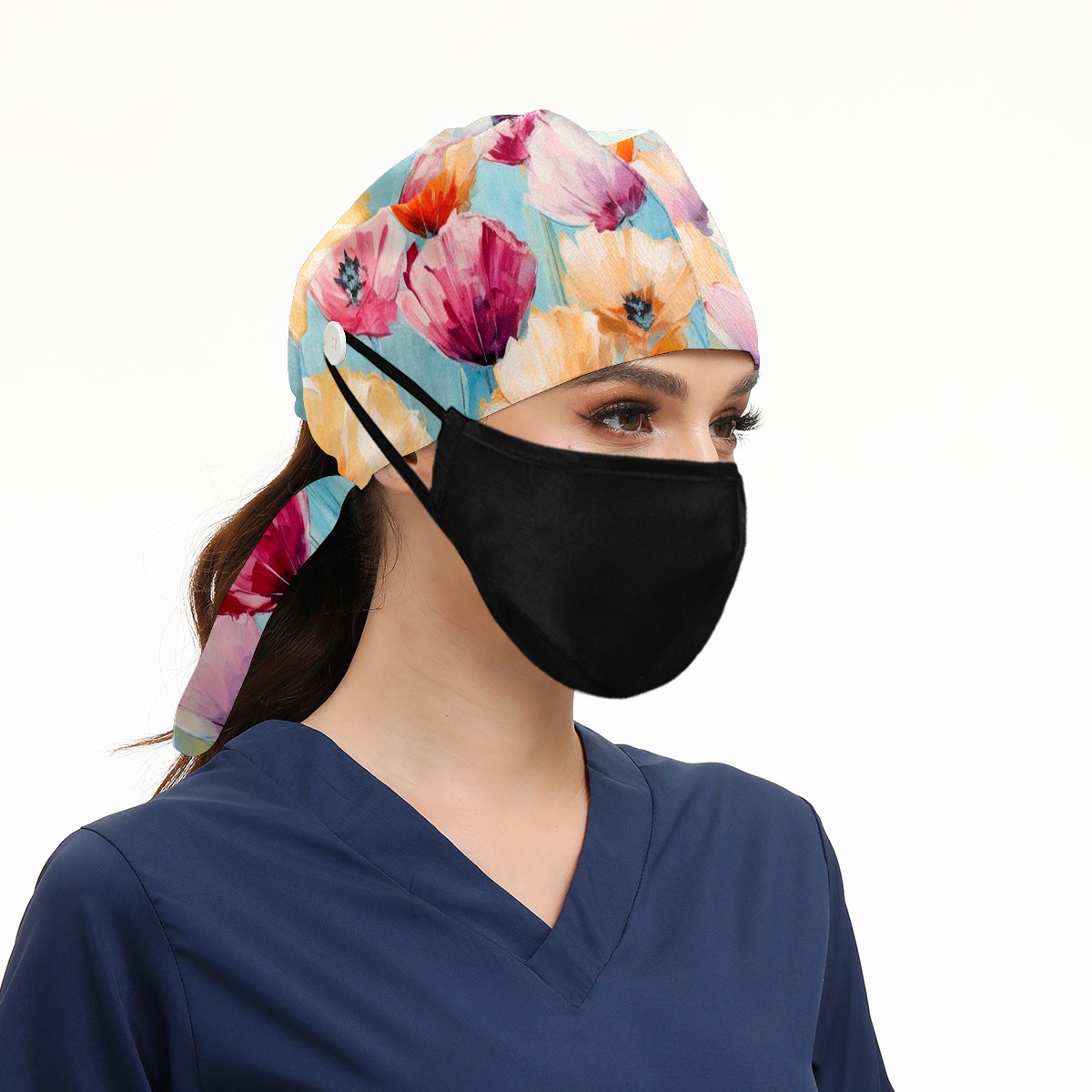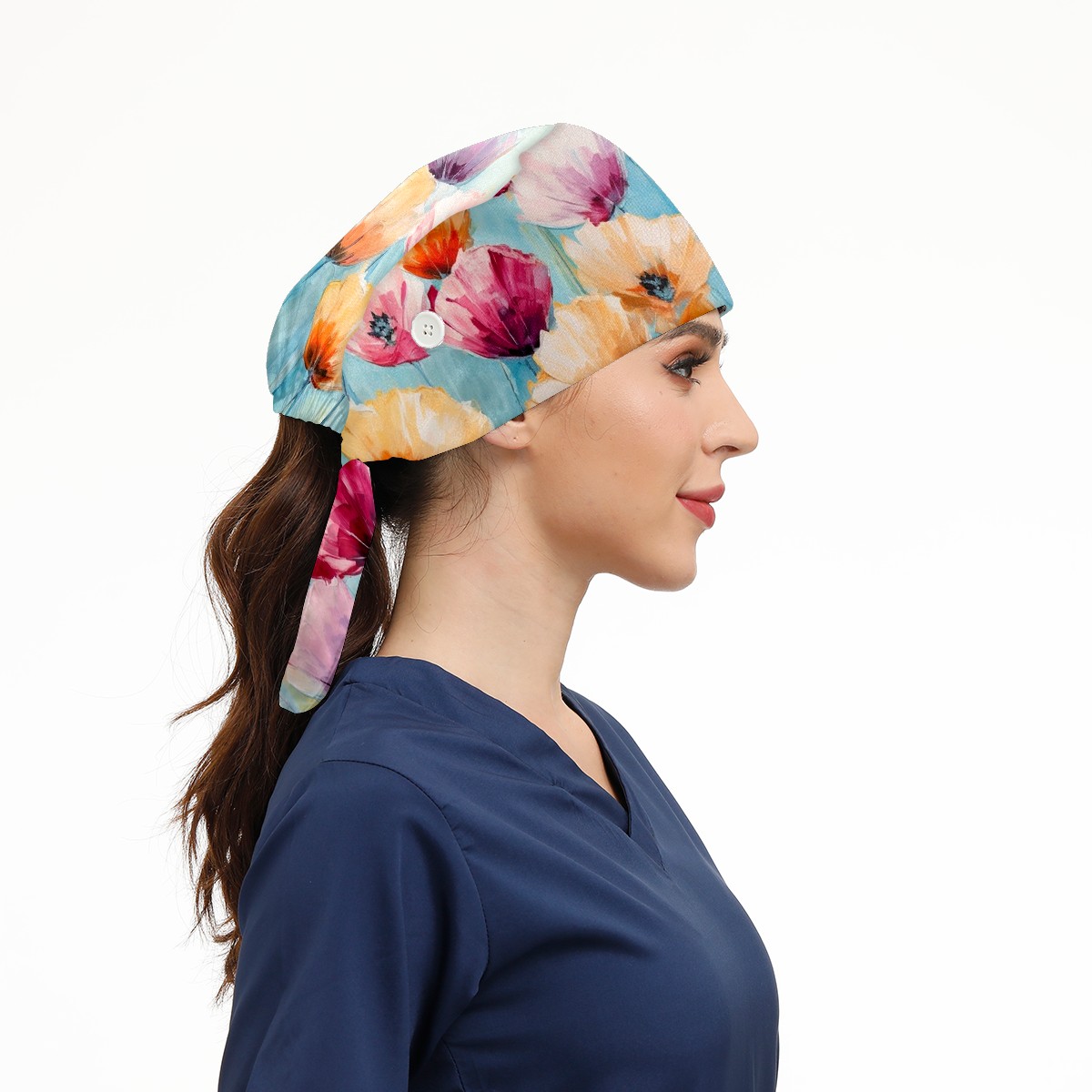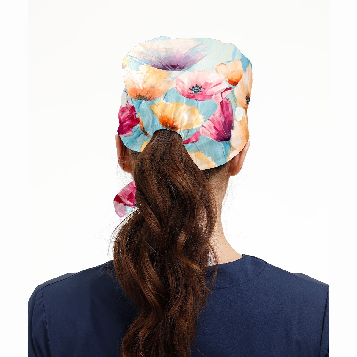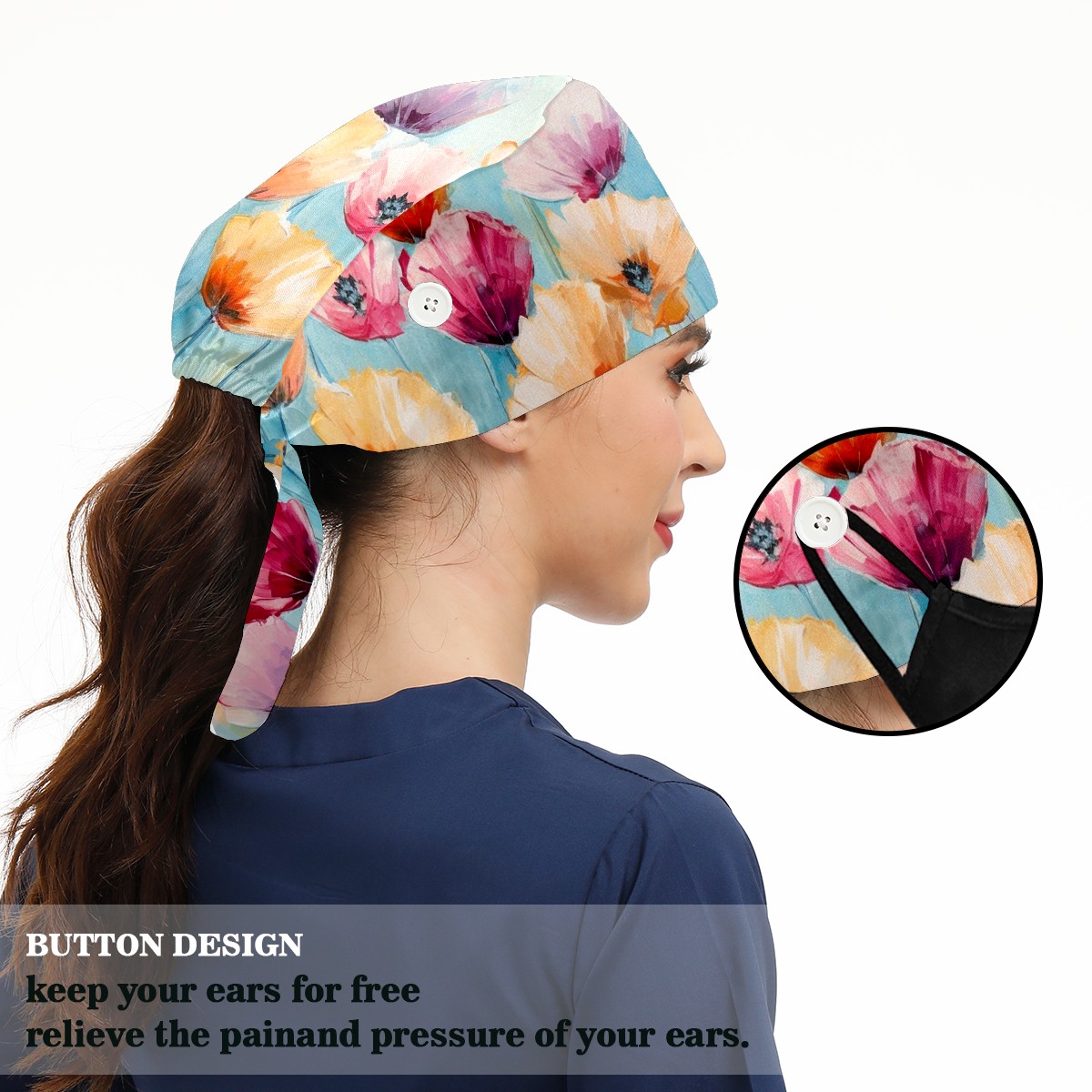 Working Caps with Button & Sweatband Satin Lined Cotton Adjustable Nurse Hats Elastic Band Scrub Cap Surgeon Hat Abstract Colorful Flowers