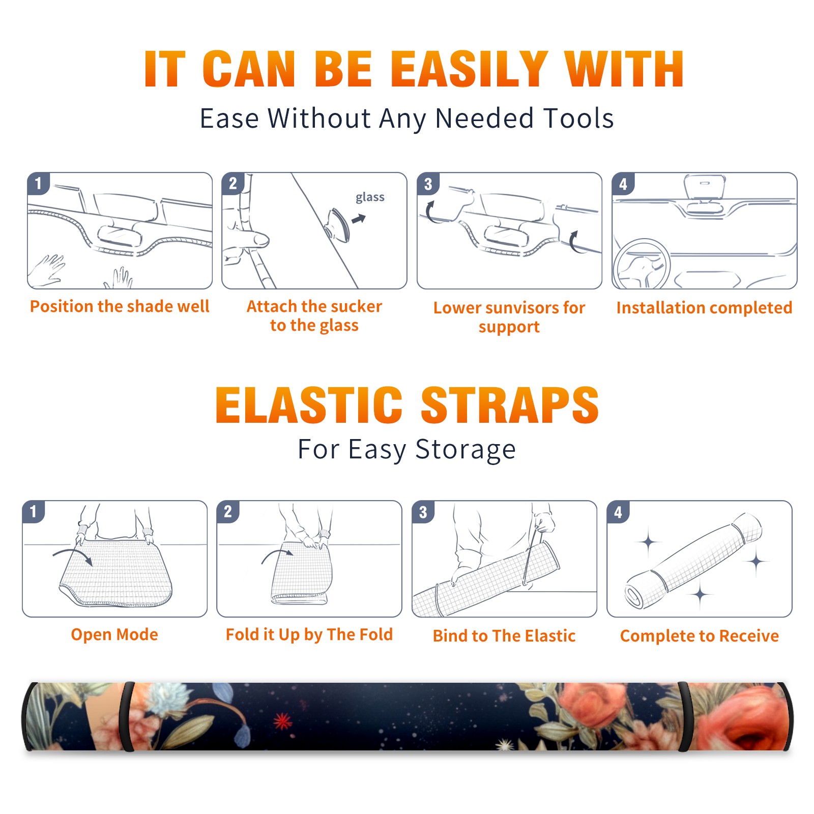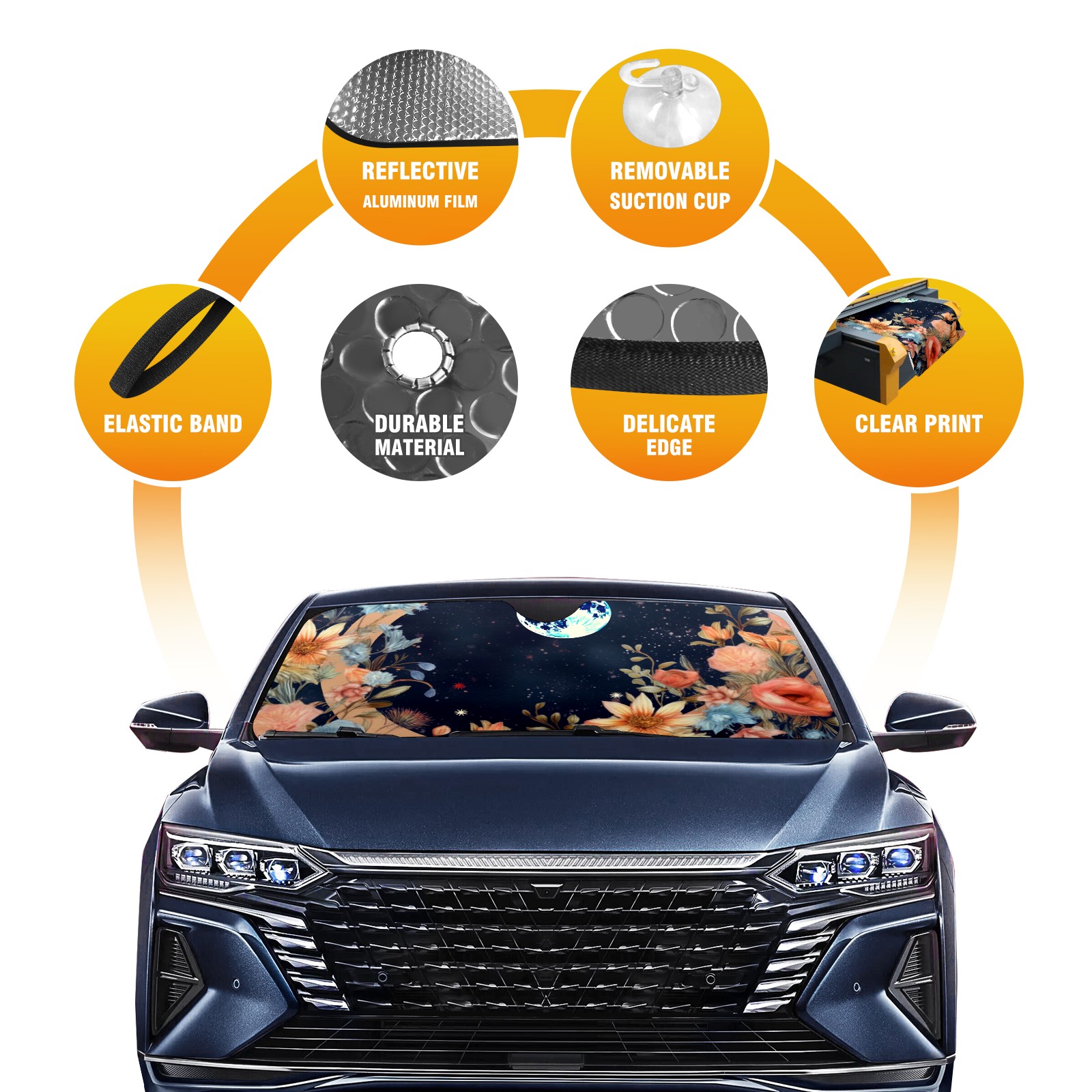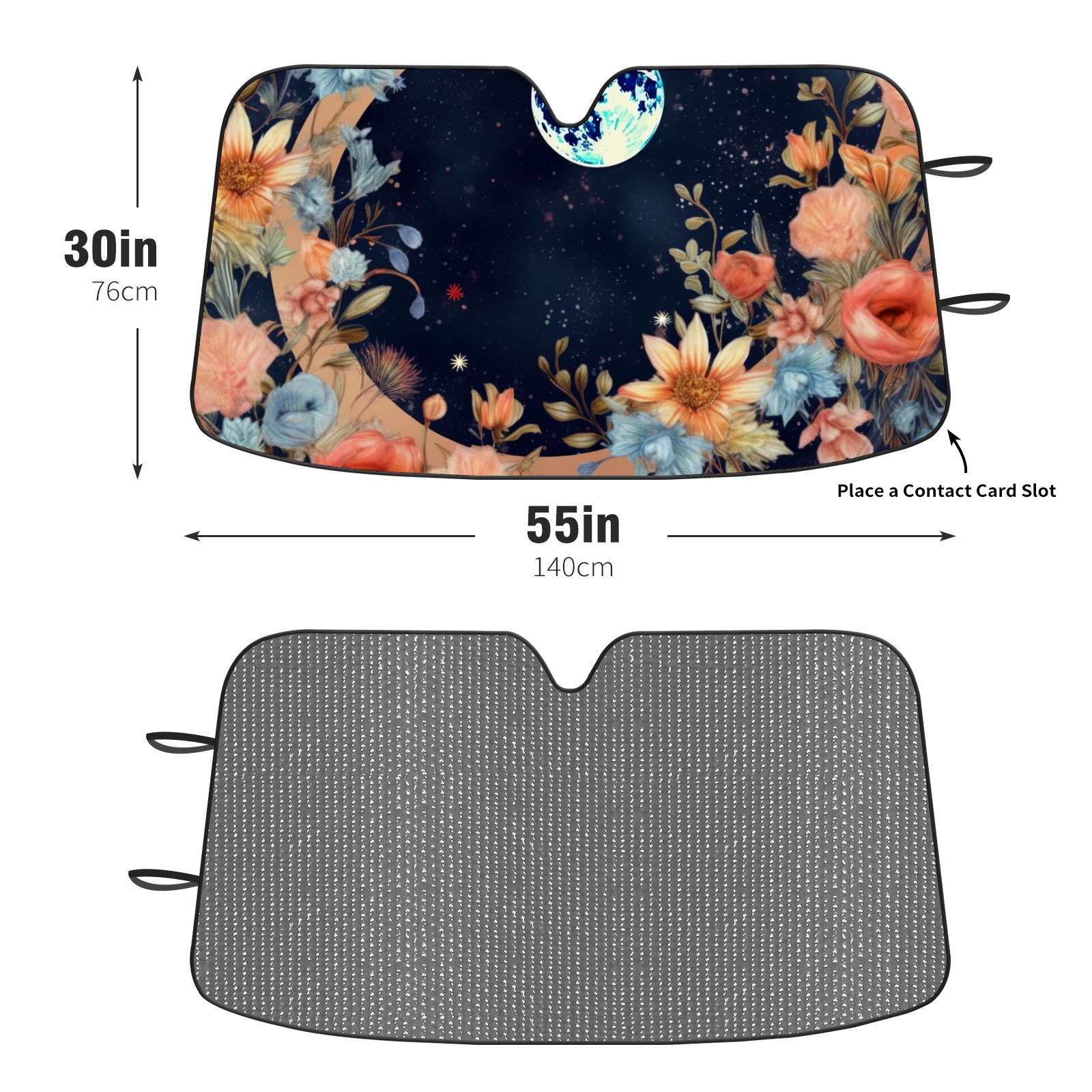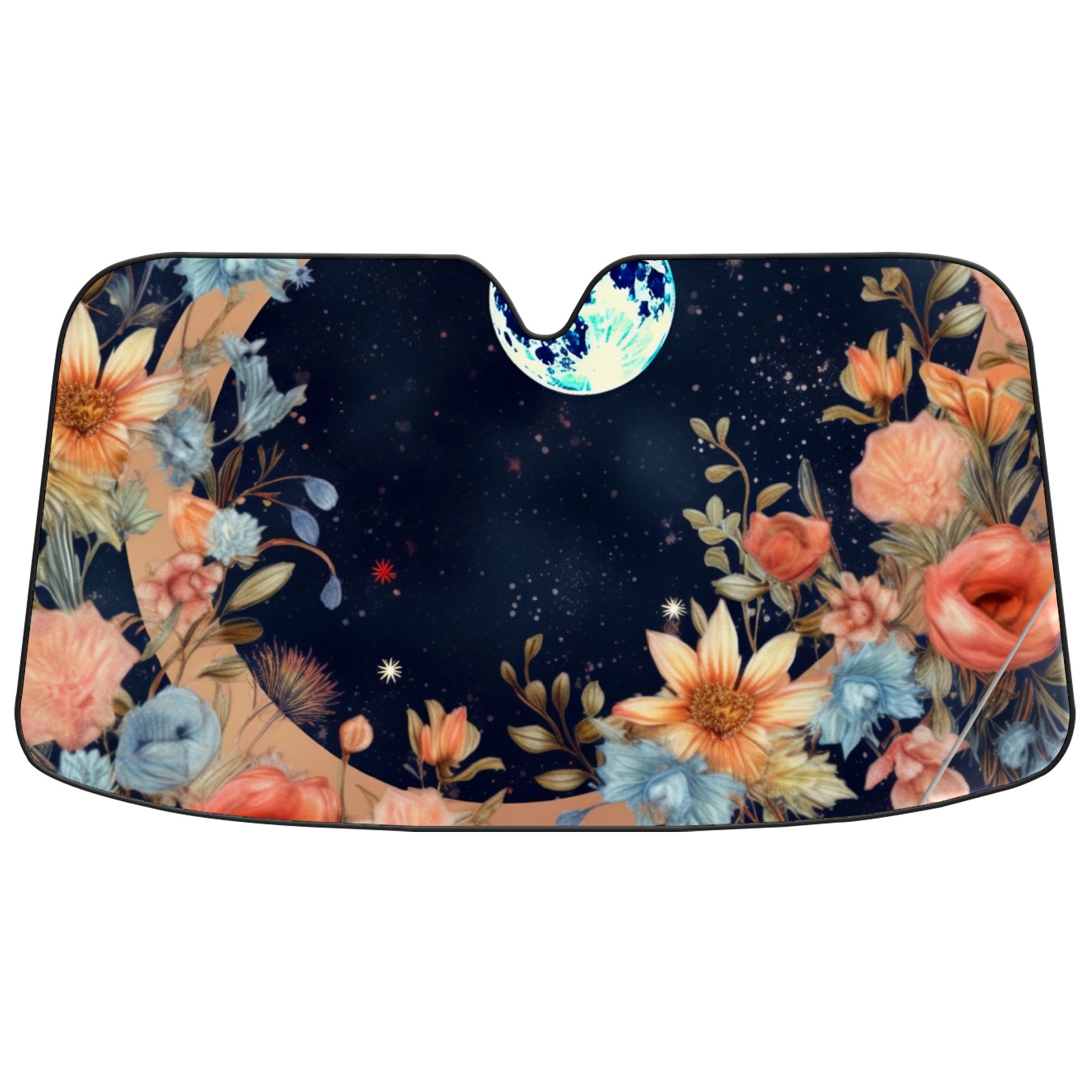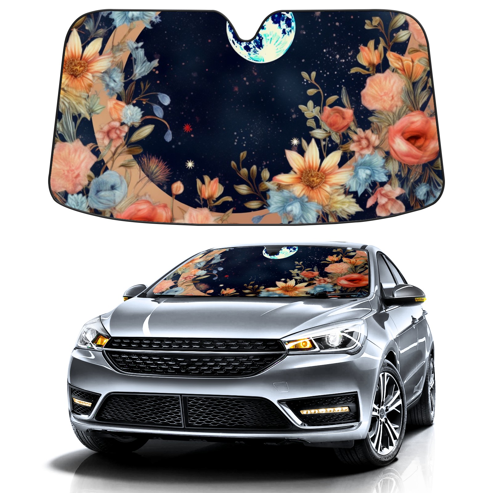 Car Windshield Sun Shade for Front Window Moon Flowers Sky Foldable Vehicle Windshield Car Sun Visor Covers Automotive Window Protector Car Privacy Sun Blocker