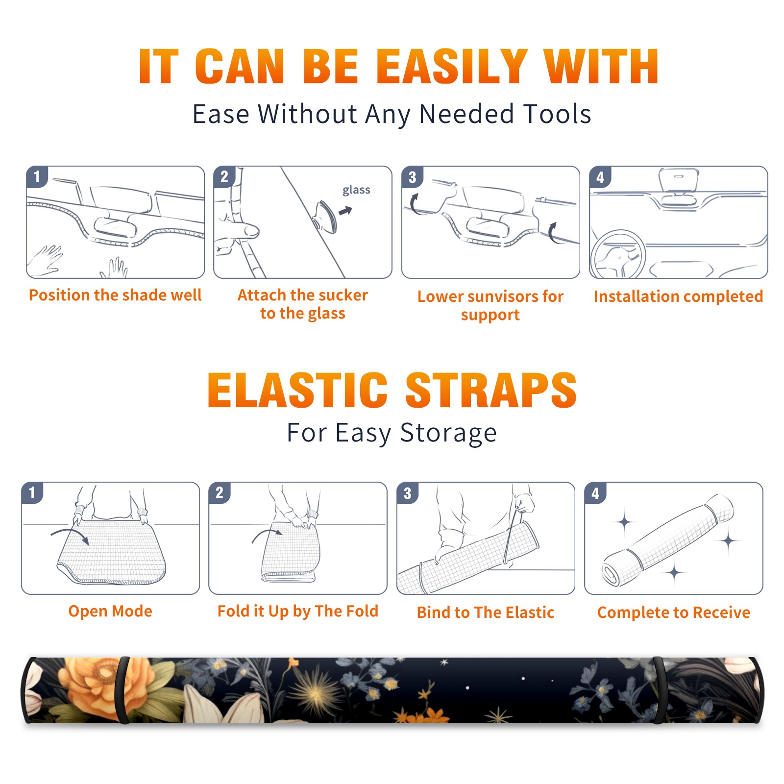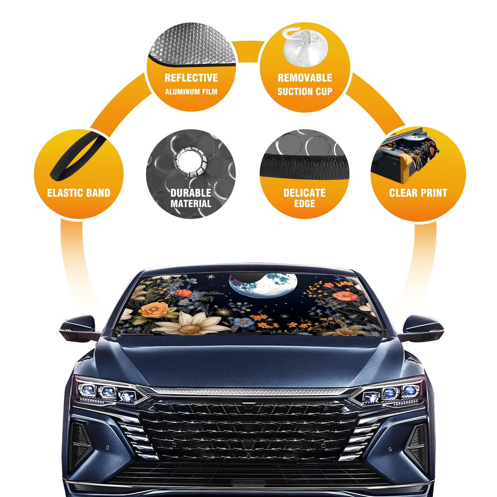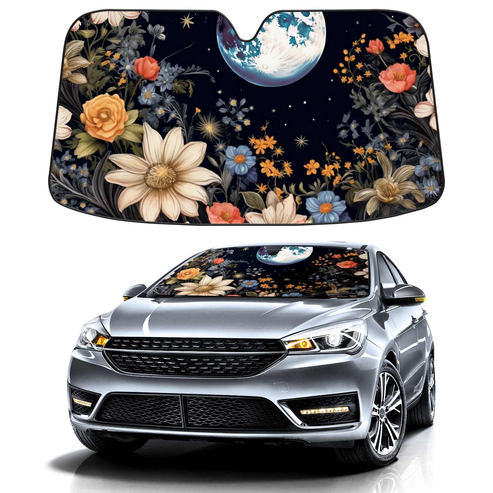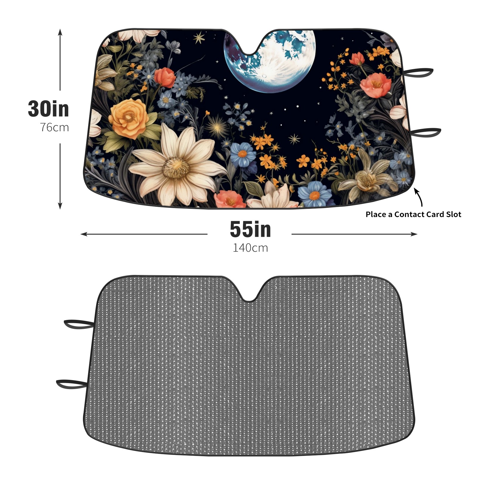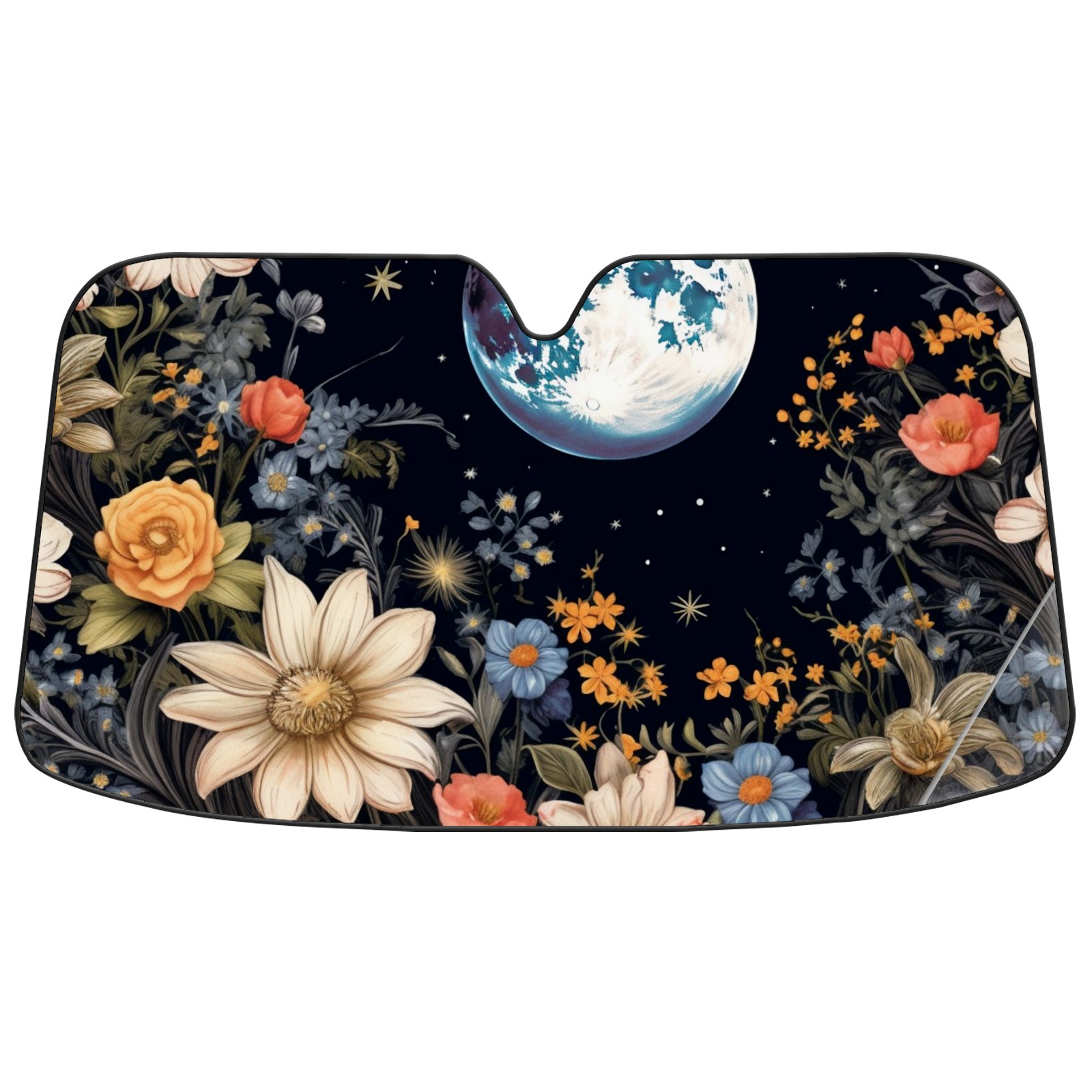 Car Windshield Sun Shade for Front Window Floral Frame With Full Moon Foldable Vehicle Windshield Car Sun Visor Covers Automotive Window Protector Car Privacy Sun Blocker