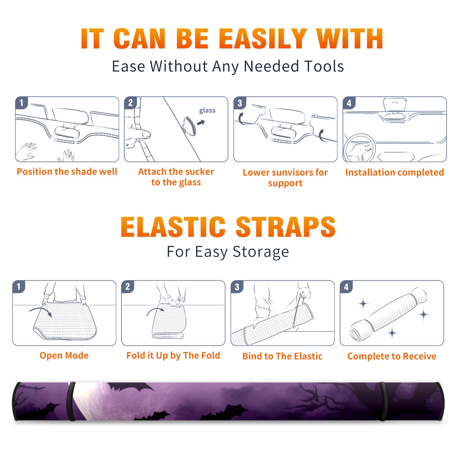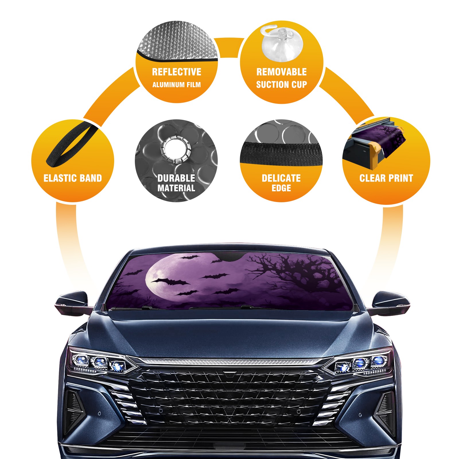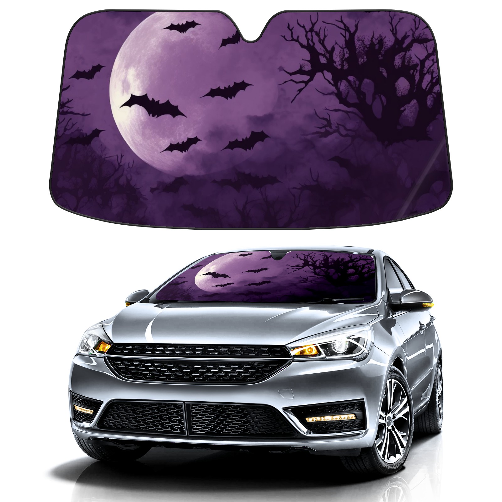 Car Windshield Sun Shade for Front Window Bats Flying Sky Moon Foldable Vehicle Windshield Car Sun Visor Covers Automotive Window Protector Car Privacy Sun Blocker
