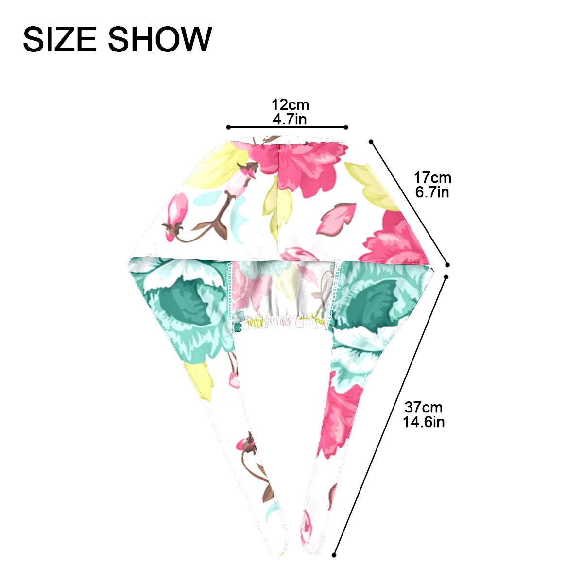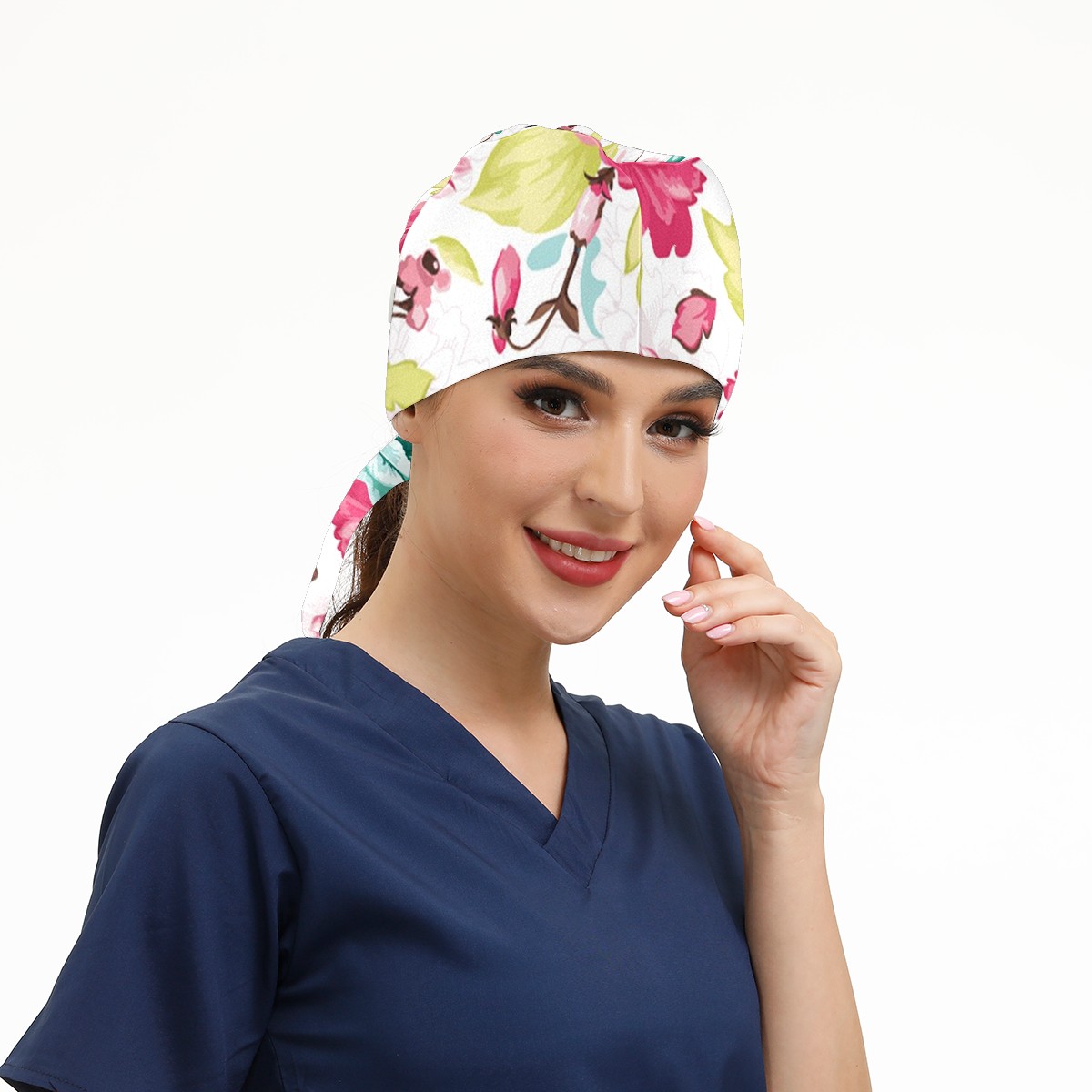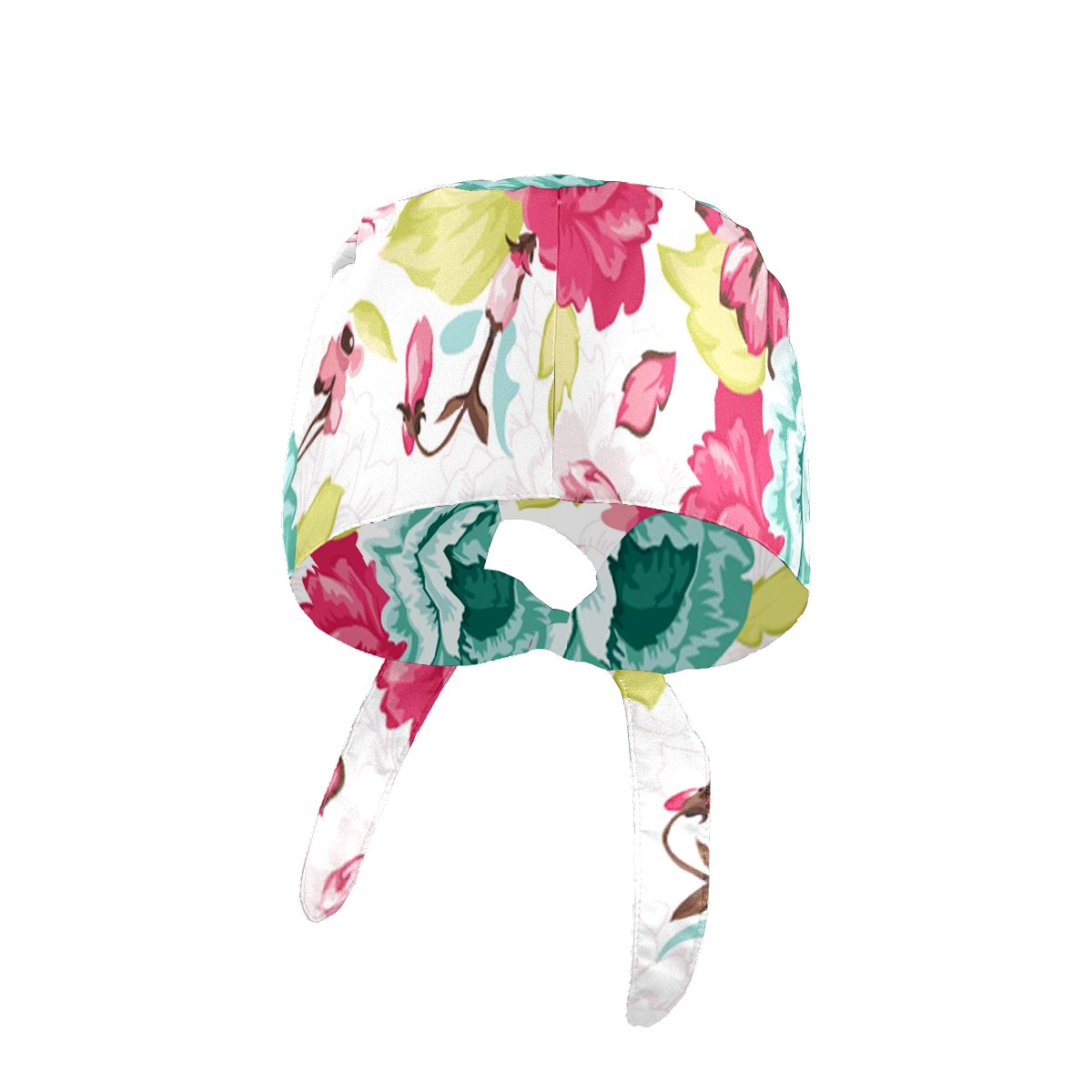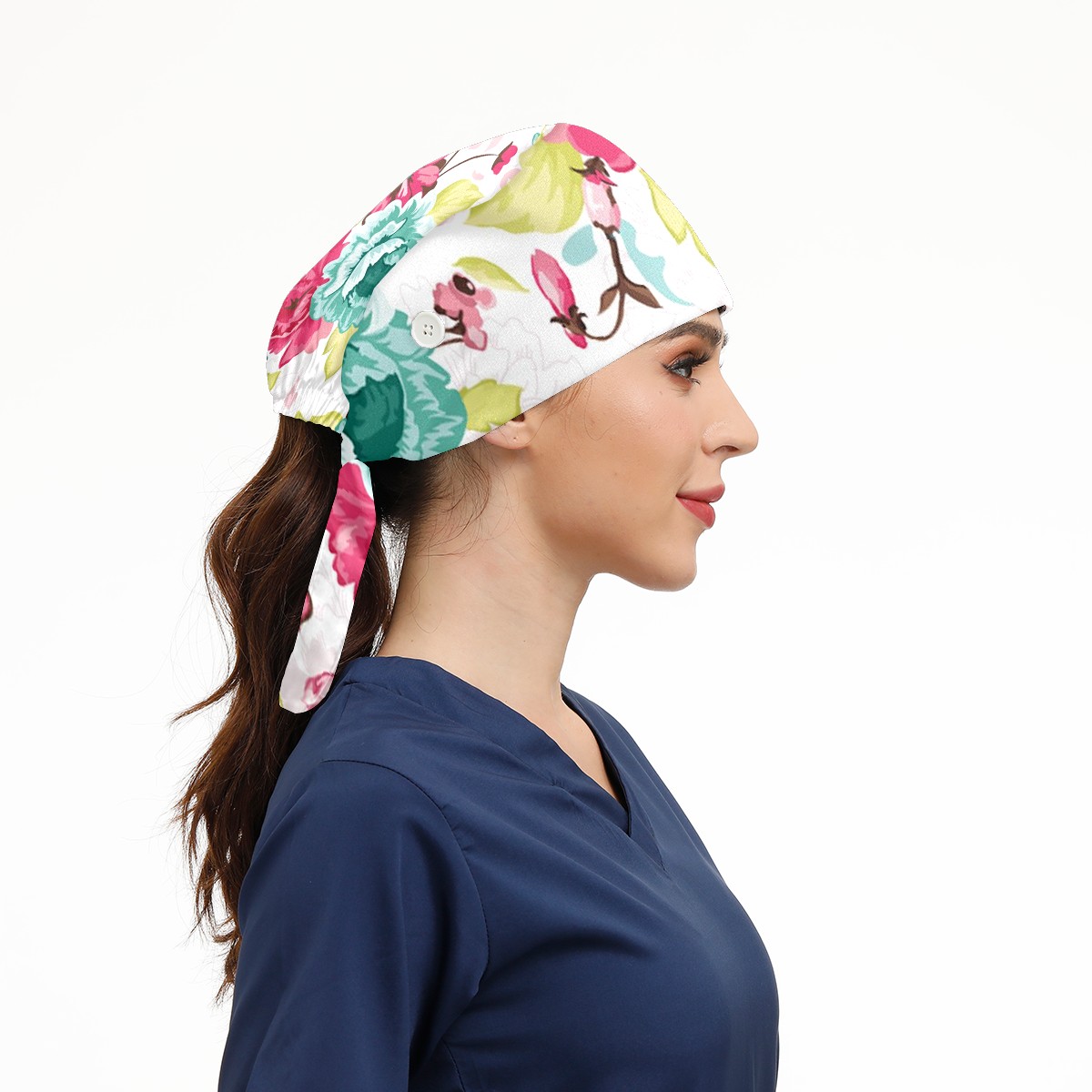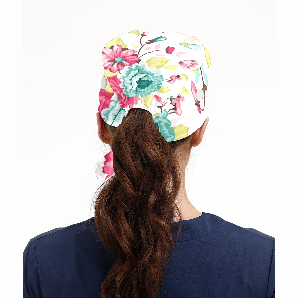 Working Caps with Button & Sweatband Satin Lined Cotton Adjustable Nurse Hats Elastic Band Scrub Cap Surgeon Hat Abstract Elegant Flower