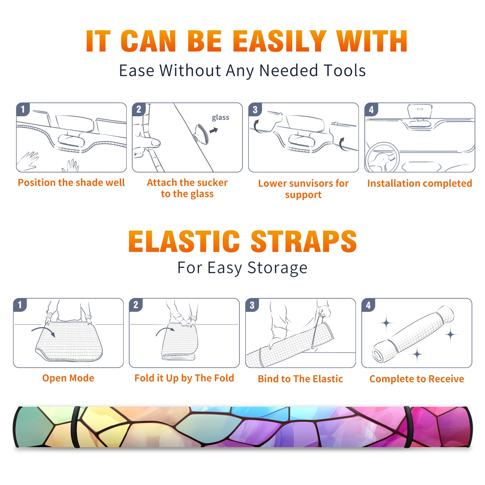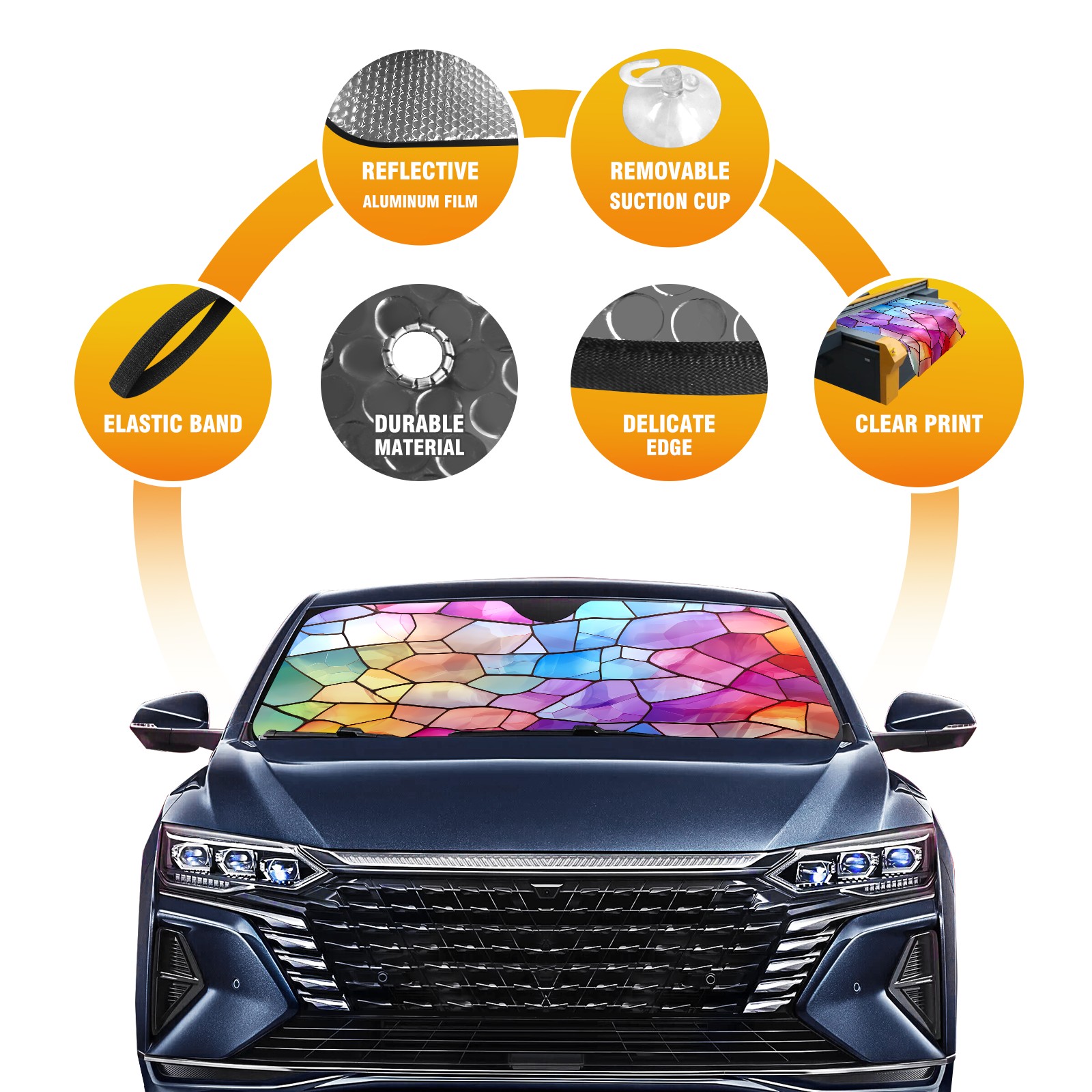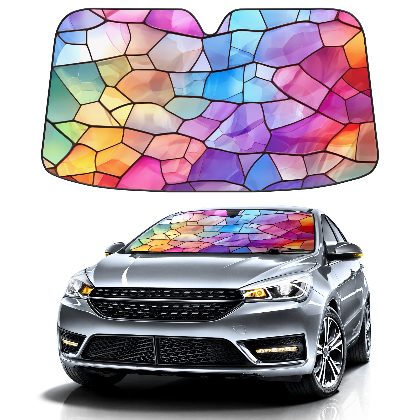 Car Windshield Sun Shade for Front Window Stained Glass Pattern (1) Foldable Vehicle Windshield Car Sun Visor Covers Automotive Window Protector Car Privacy Sun Blocker
