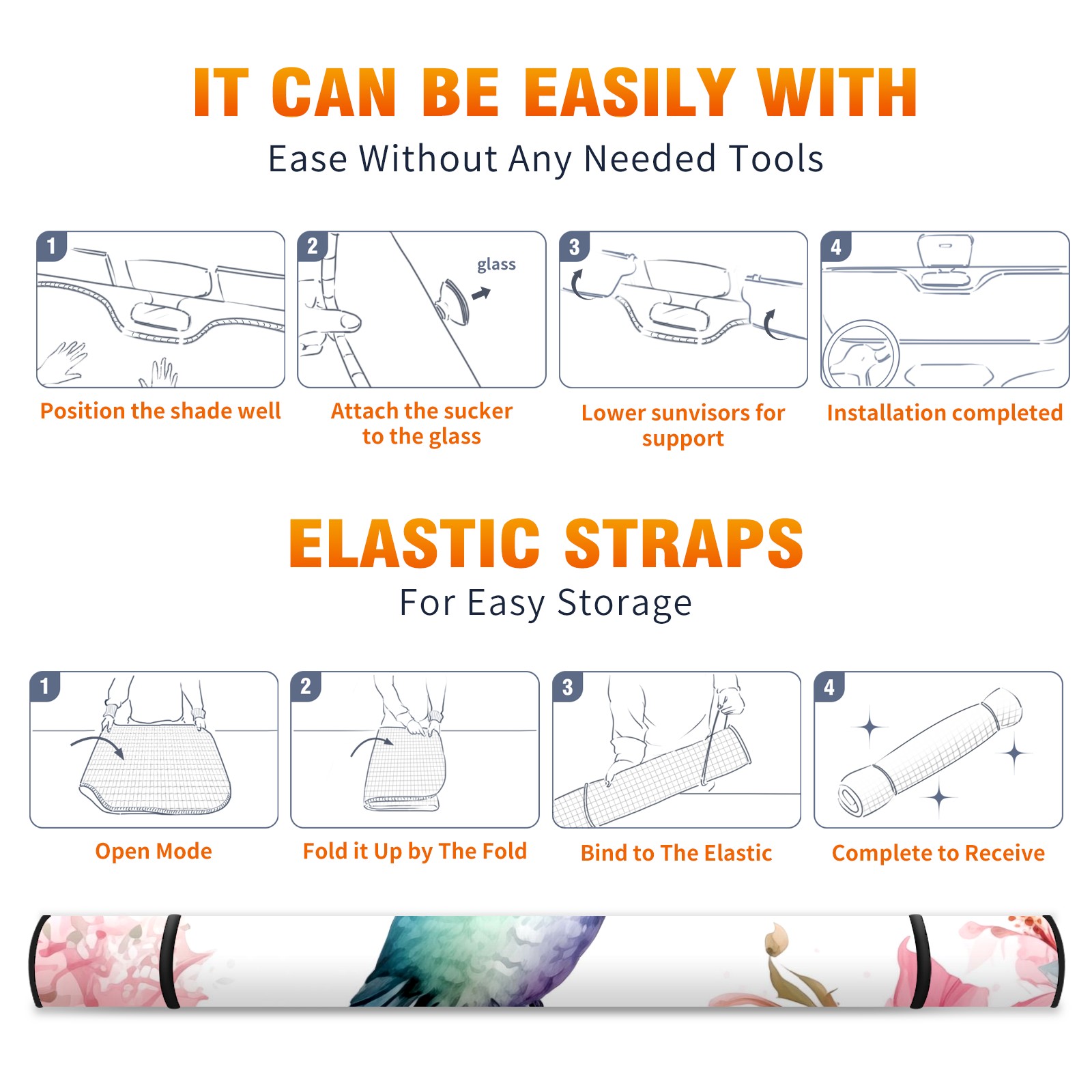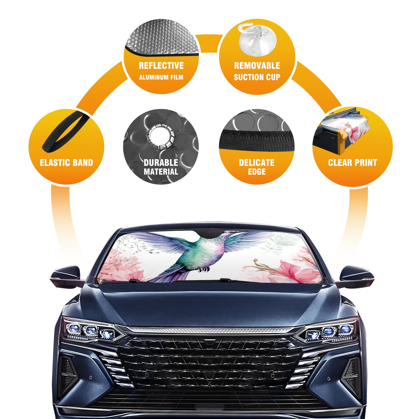 Car Windshield Sun Shade for Front Window Flower Bird Foldable Vehicle Windshield Car Sun Visor Covers Automotive Window Protector Car Privacy Sun Blocker