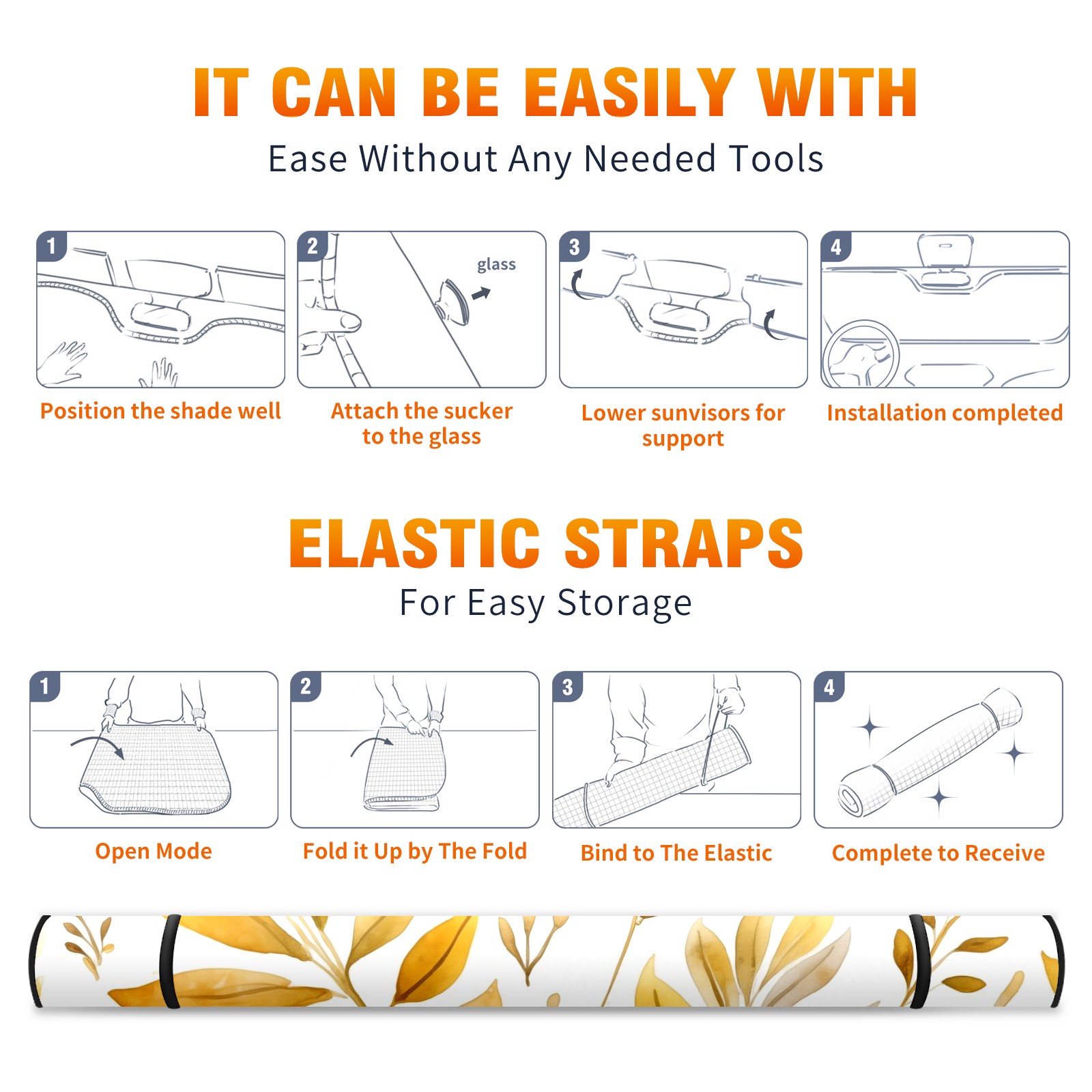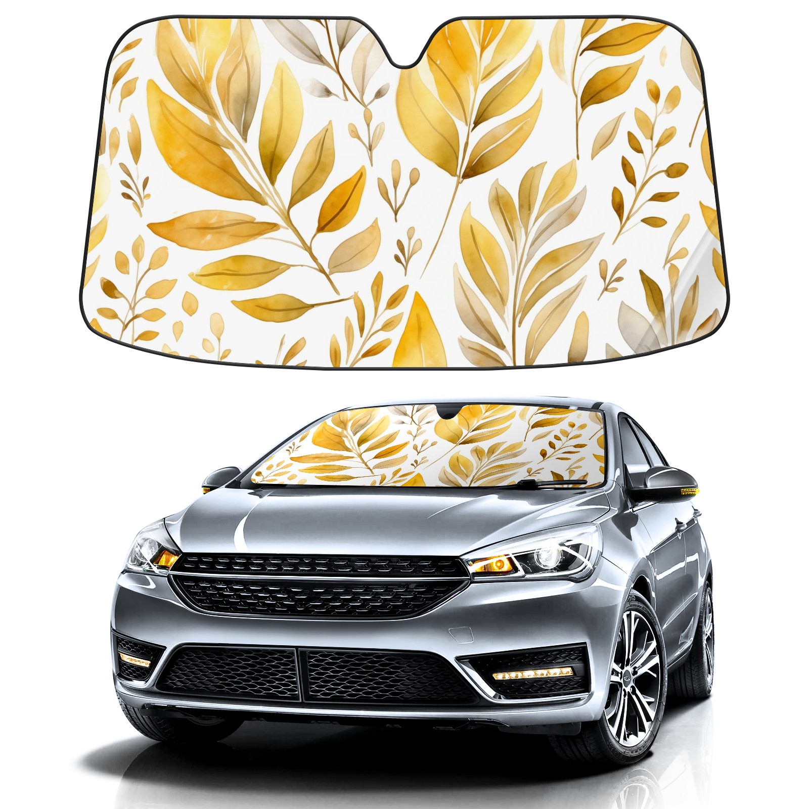 Car Windshield Sun Shade for Front Window Golden Leaf Plant Foldable Vehicle Windshield Car Sun Visor Covers Automotive Window Protector Car Privacy Sun Blocker