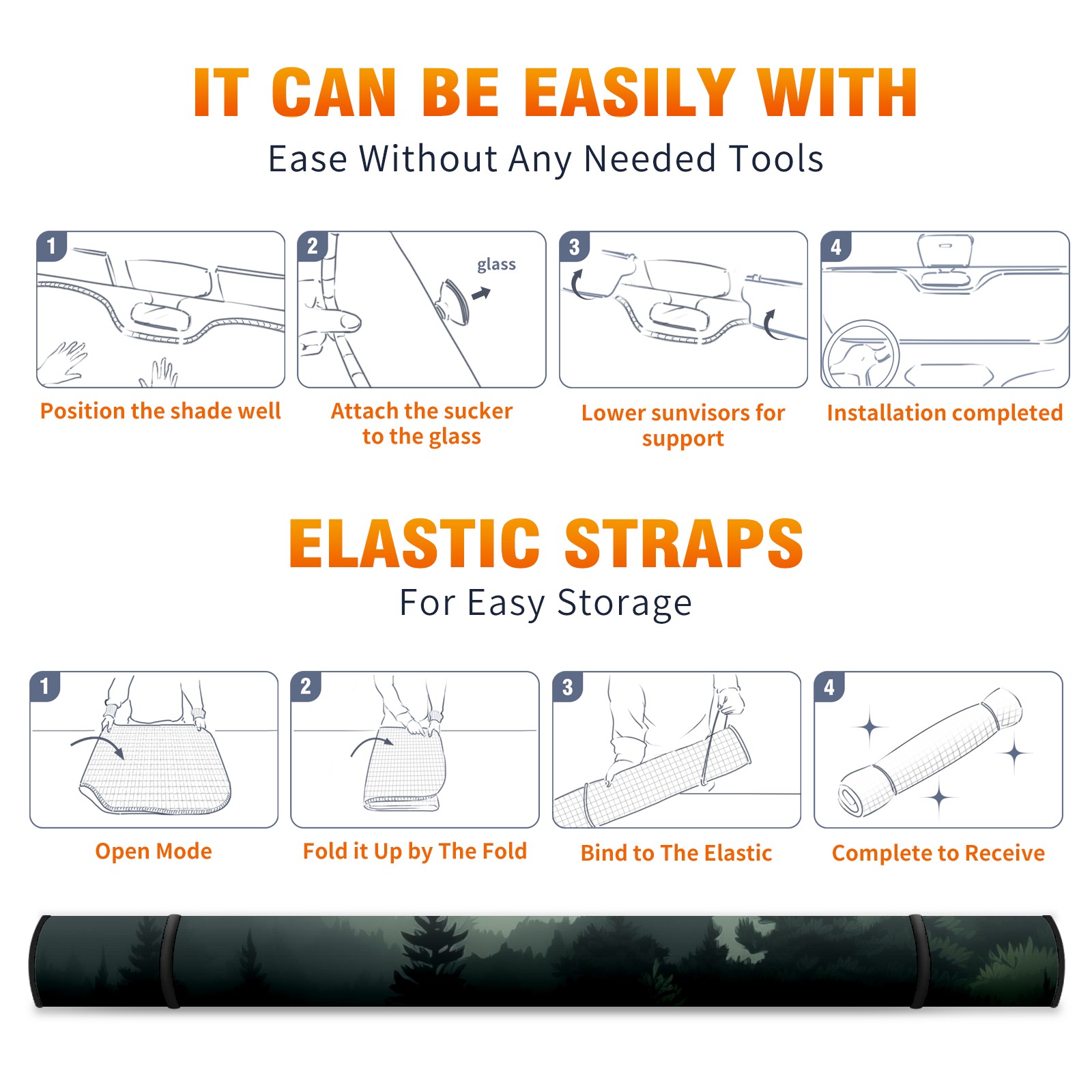 Diameter /Size 63"L x 33.5"W</b><br> Made from excellent materials which makes it sturdy and protects the car from the sun. Easy to use and pack. Makes the interior of the car cooler.You can easily stash the sunshade in the storage bag or store long term.It open and closes easy. Also the leather storage bag is durable and easy to put the umbrella back into.This windshield sunshade provides complete coverage and keeps your car interior cool under direct sun. It is easy to open and position under the windshield and around the rear-view mirror. Makes Your Car Easy To Identify, Perfect For Finding Your Car In Crowded Parking Lots And Garages.Great Choice: It Is A Great Gift For Dad, Boyfriend, Brother, Brother And Uncle, Friends, Classmates, Family And So On.<br> Notice:</b><br> Due To Difference Computer Monitors, The Color Maybe Slightly Different From Picture. As Different Measurement Methods, Measurement Data Will Float Within 2%.I Hope You Understand.<br> If You Have Any Question About The Item Please Do Not Hesitate To Contact Us Immediately And We Will Give You A Satisfactory Reply Within 24 Hours.