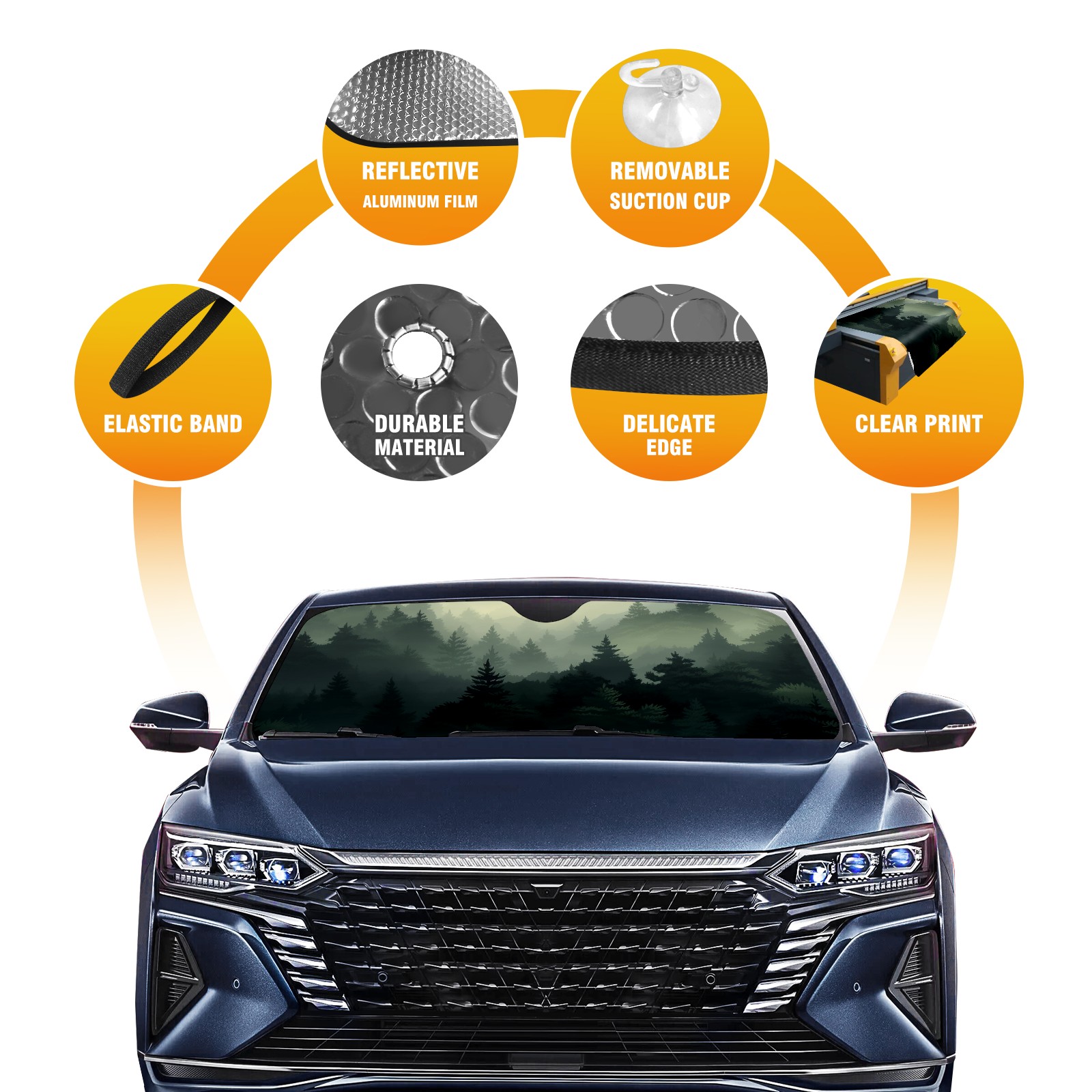 Car Windshield Sun Shade for Front Window Deep Mists Dark Forests Foldable Vehicle Windshield Car Sun Visor Covers Automotive Window Protector Car Privacy Sun Blocker