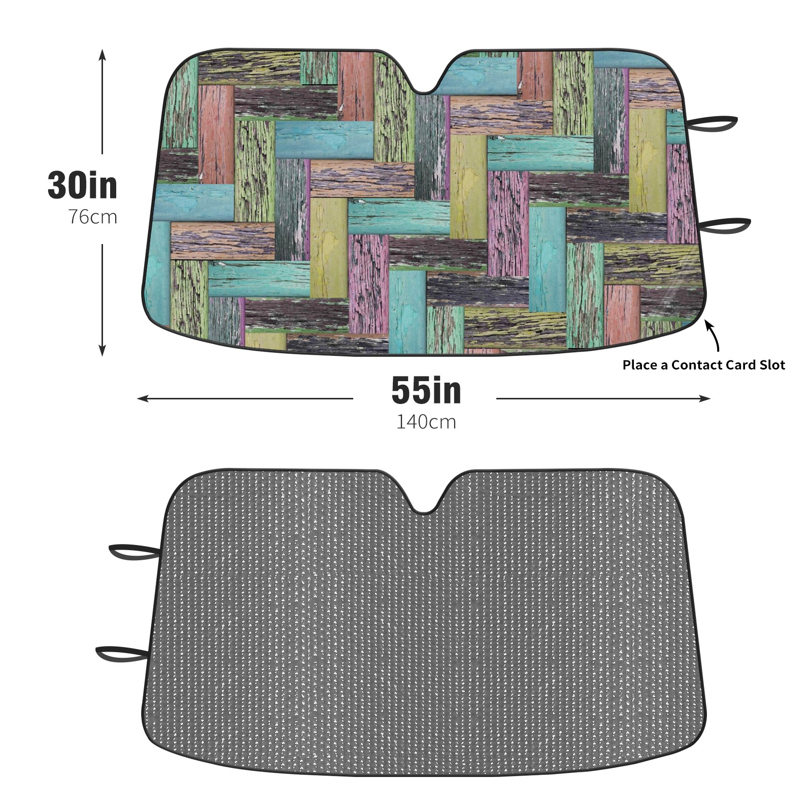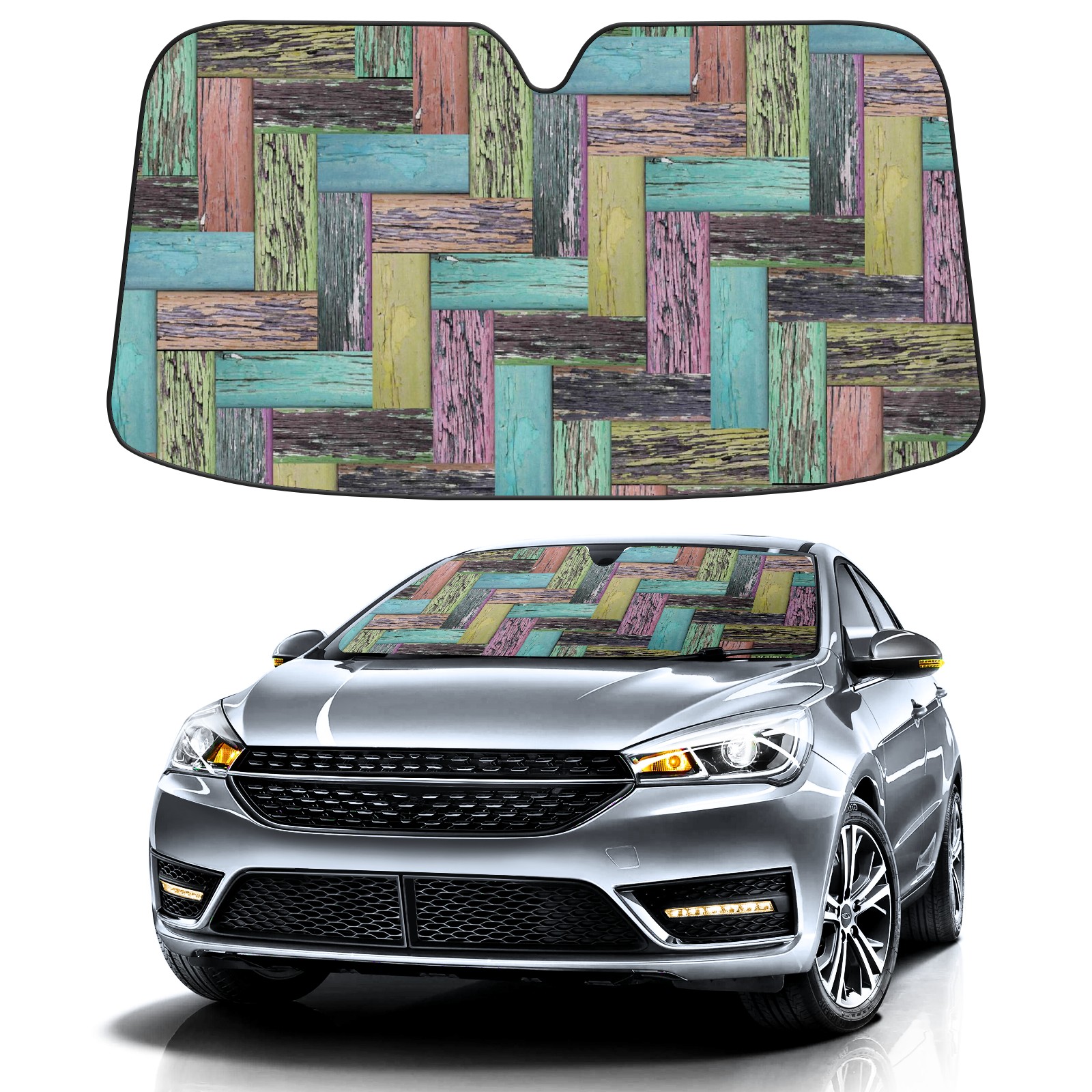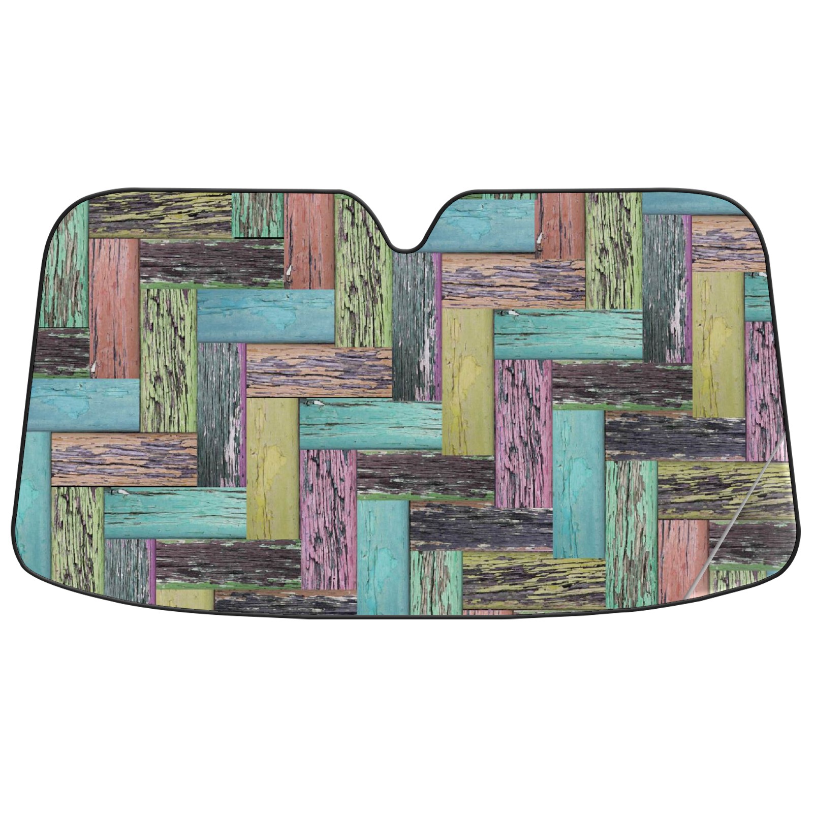 Car Windshield Sun Shade for Front Window Rustic Vintage Wood Blue Foldable Vehicle Windshield Car Sun Visor Covers Automotive Window Protector Car Privacy Sun Blocker