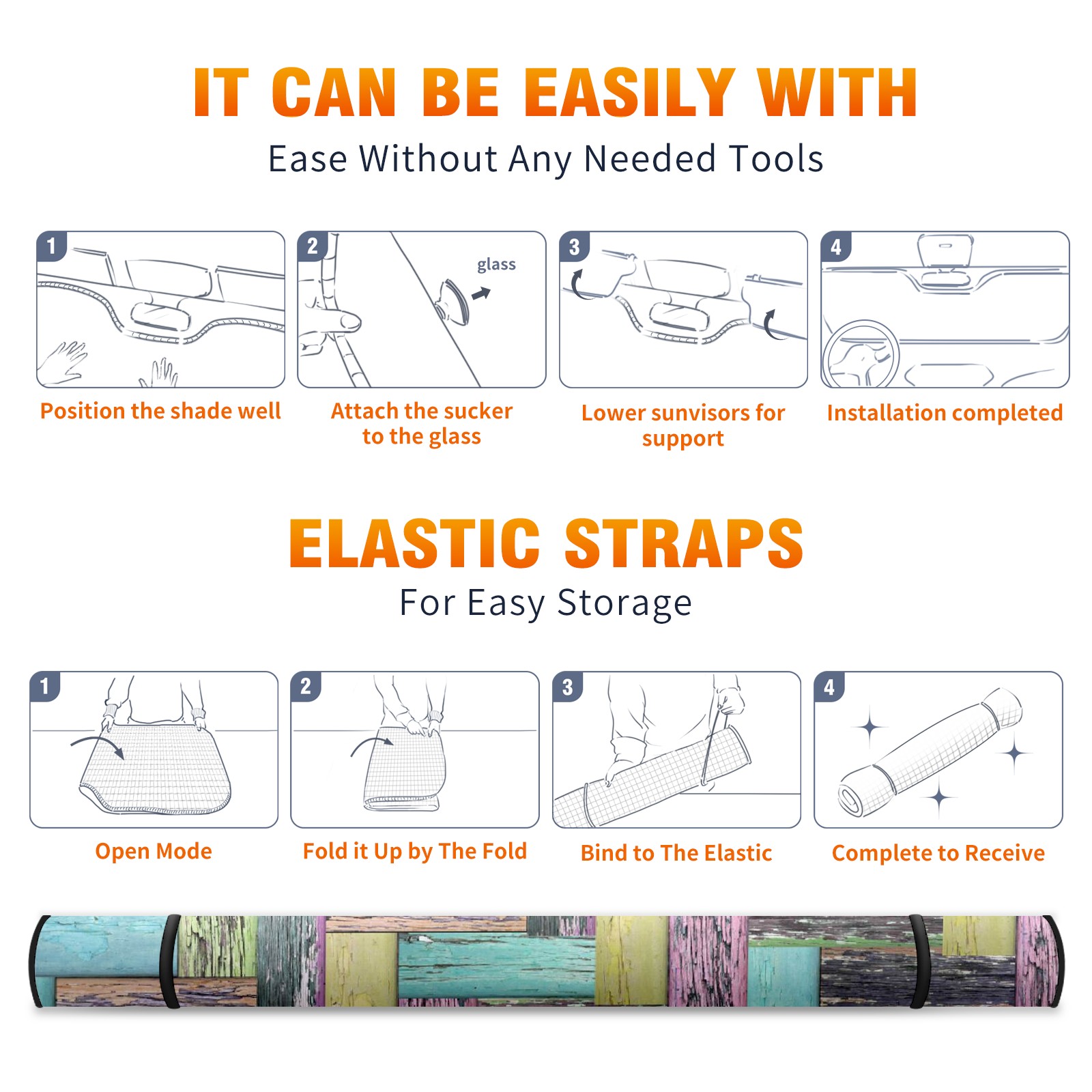 Diameter /Size 63"L x 33.5"W</b><br> Made from excellent materials which makes it sturdy and protects the car from the sun. Easy to use and pack. Makes the interior of the car cooler.You can easily stash the sunshade in the storage bag or store long term.It open and closes easy. Also the leather storage bag is durable and easy to put the umbrella back into.This windshield sunshade provides complete coverage and keeps your car interior cool under direct sun. It is easy to open and position under the windshield and around the rear-view mirror. Makes Your Car Easy To Identify, Perfect For Finding Your Car In Crowded Parking Lots And Garages.Great Choice: It Is A Great Gift For Dad, Boyfriend, Brother, Brother And Uncle, Friends, Classmates, Family And So On.<br> Notice:</b><br> Due To Difference Computer Monitors, The Color Maybe Slightly Different From Picture. As Different Measurement Methods, Measurement Data Will Float Within 2%.I Hope You Understand.<br> If You Have Any Question About The Item Please Do Not Hesitate To Contact Us Immediately And We Will Give You A Satisfactory Reply Within 24 Hours.