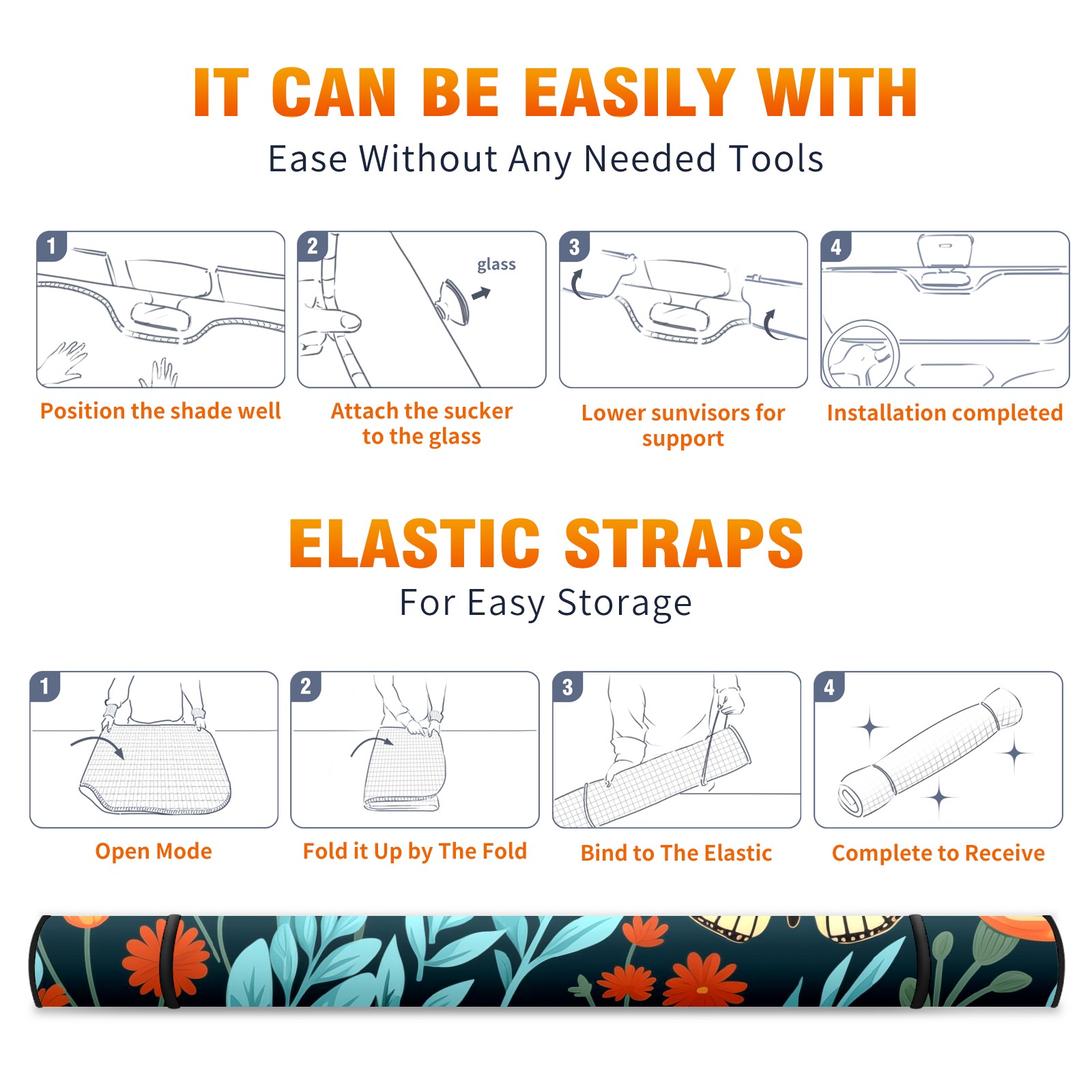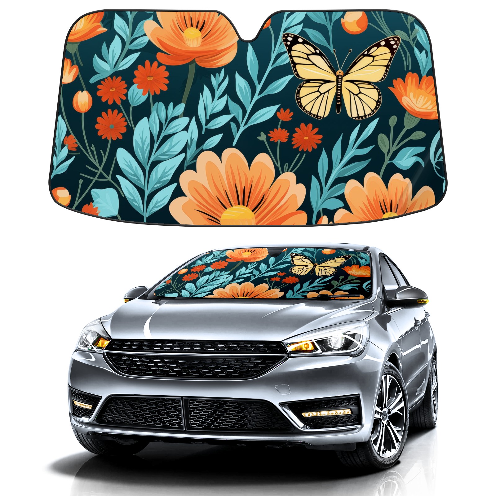 Car Windshield Sun Shade for Front Window Flower Butterfly Foldable Vehicle Windshield Car Sun Visor Covers Automotive Window Protector Car Privacy Sun Blocker