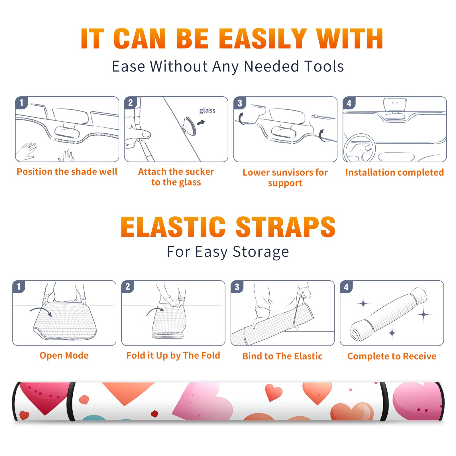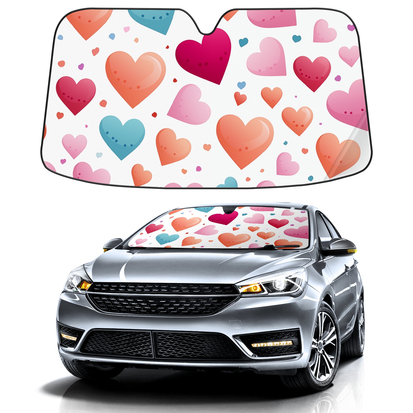 Car Windshield Sun Shade for Front Window Valentines Day Cute Heart Foldable Vehicle Windshield Car Sun Visor Covers Automotive Window Protector Car Privacy Sun Blocker